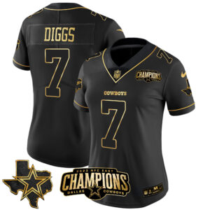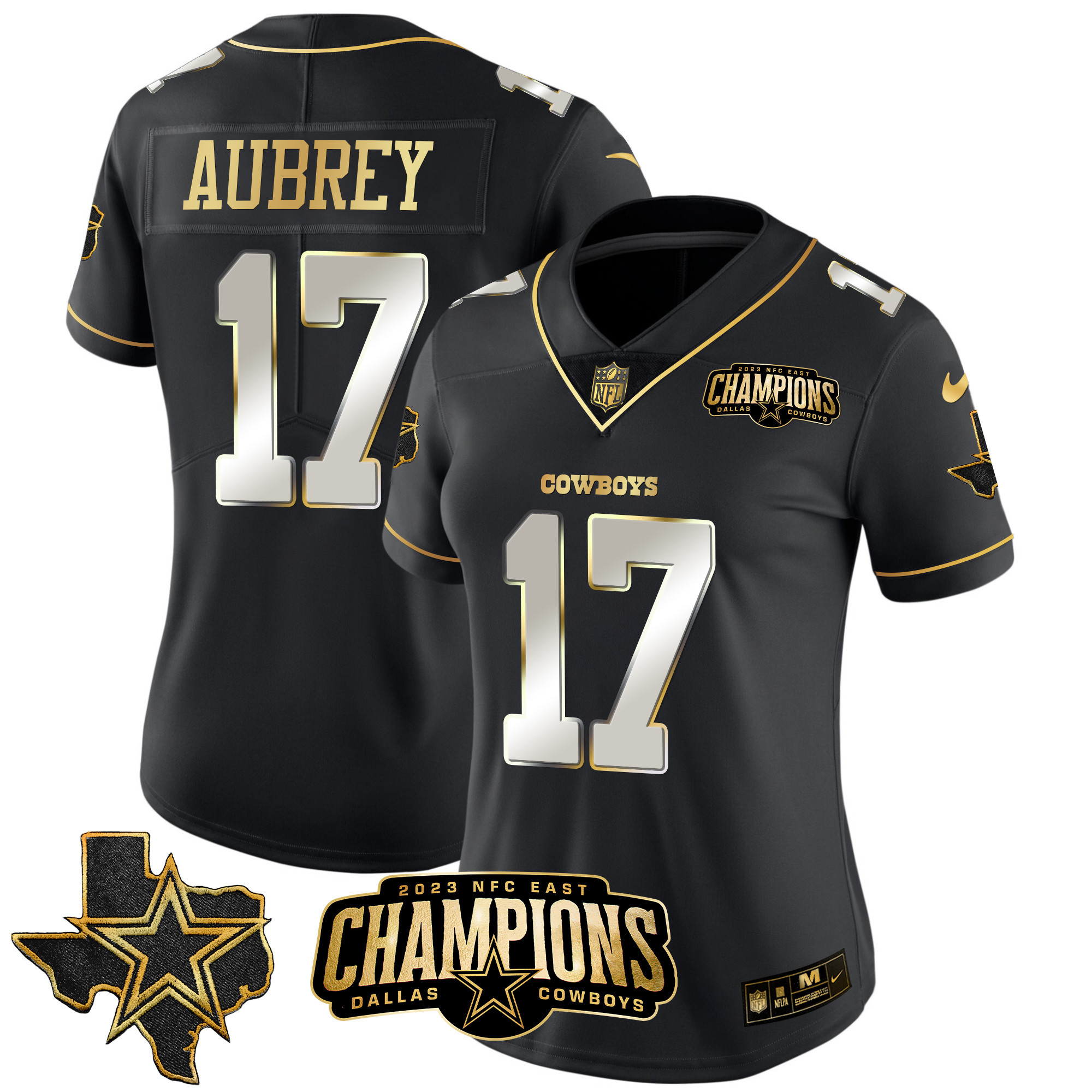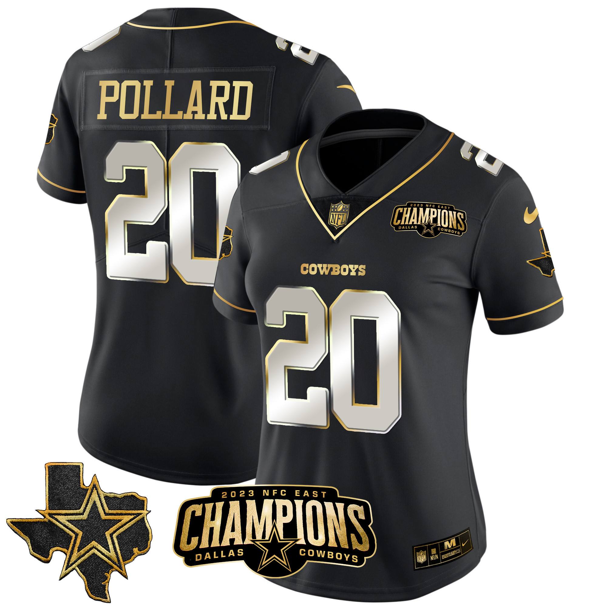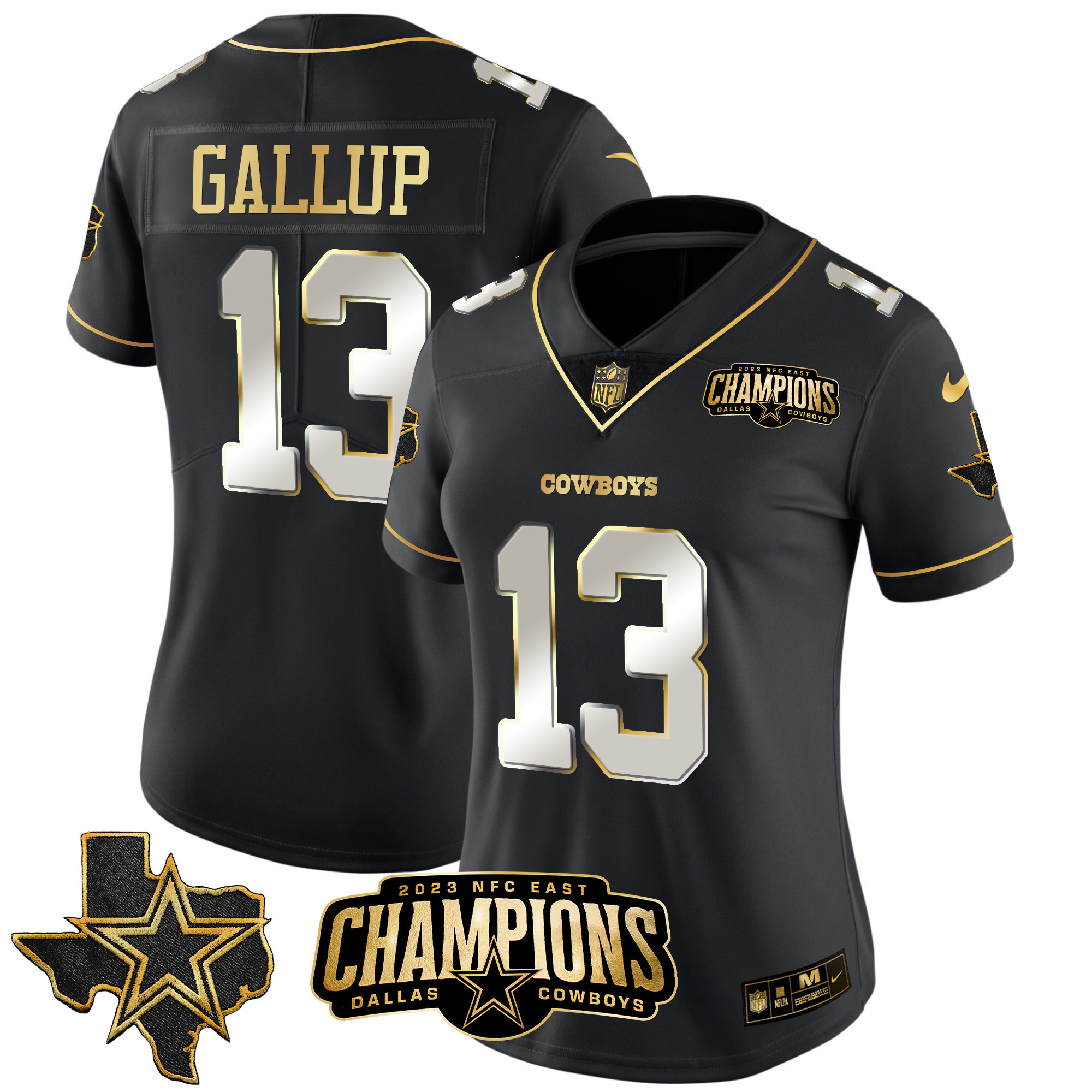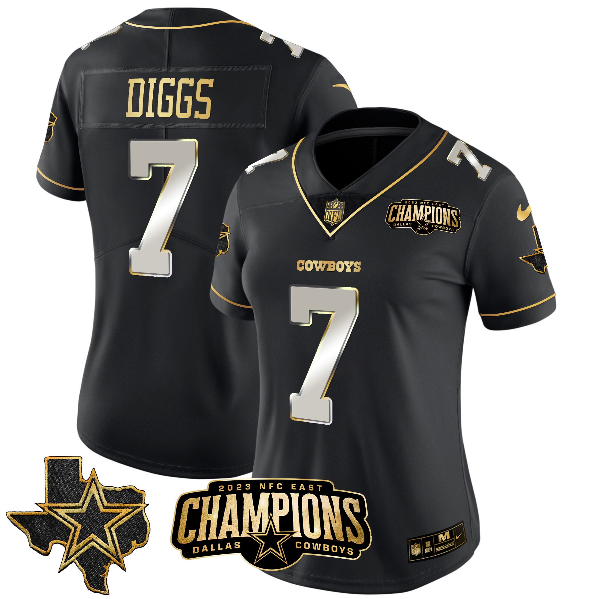 Women’s Cowboys 2023 NFC East Champions Patch Gold Vapor Jersey – All Stitched