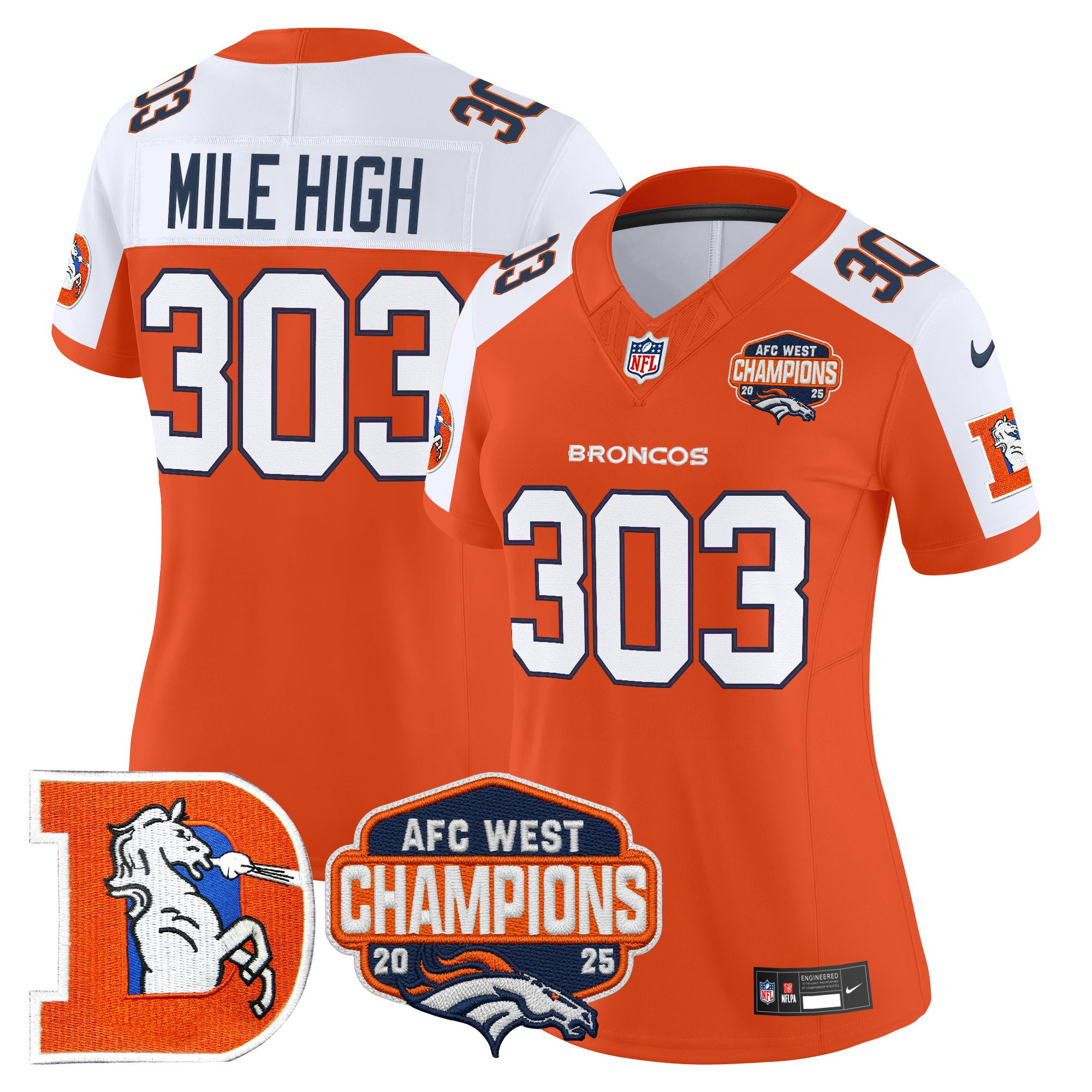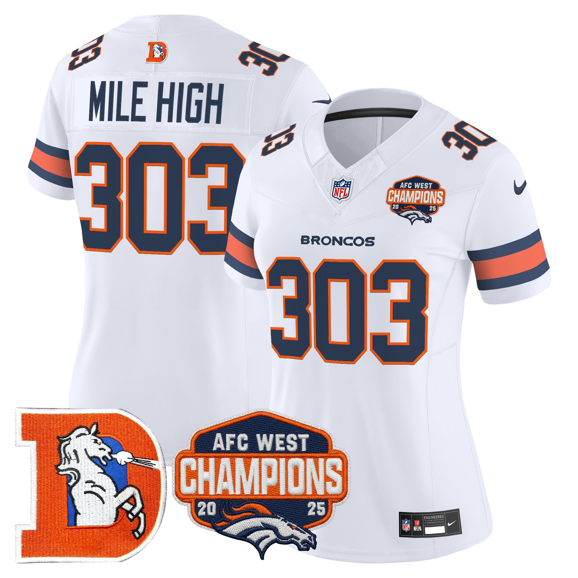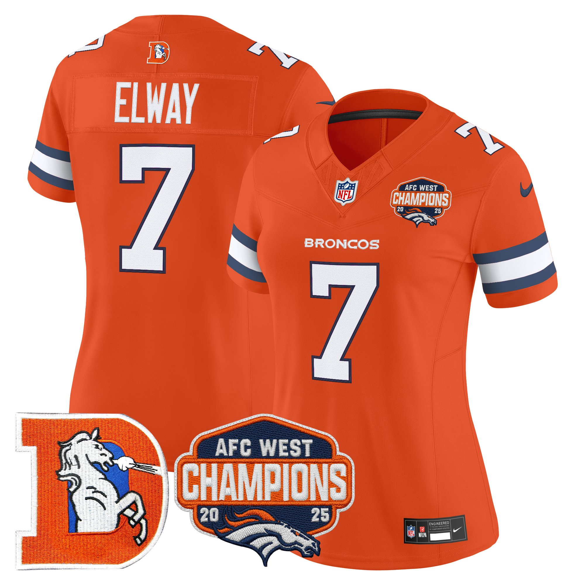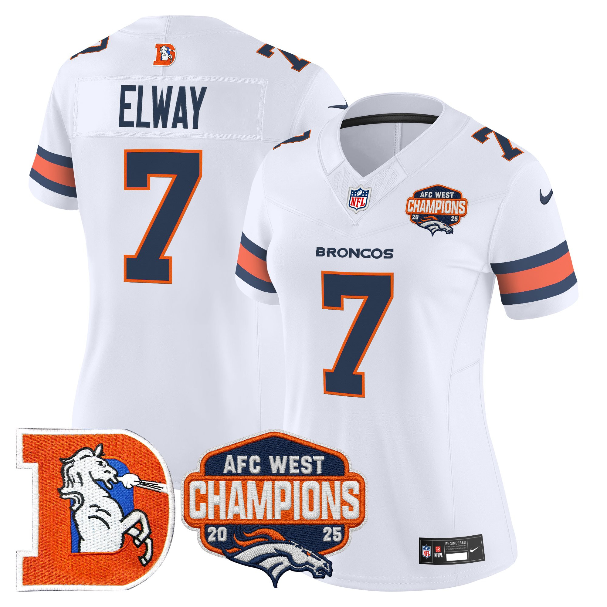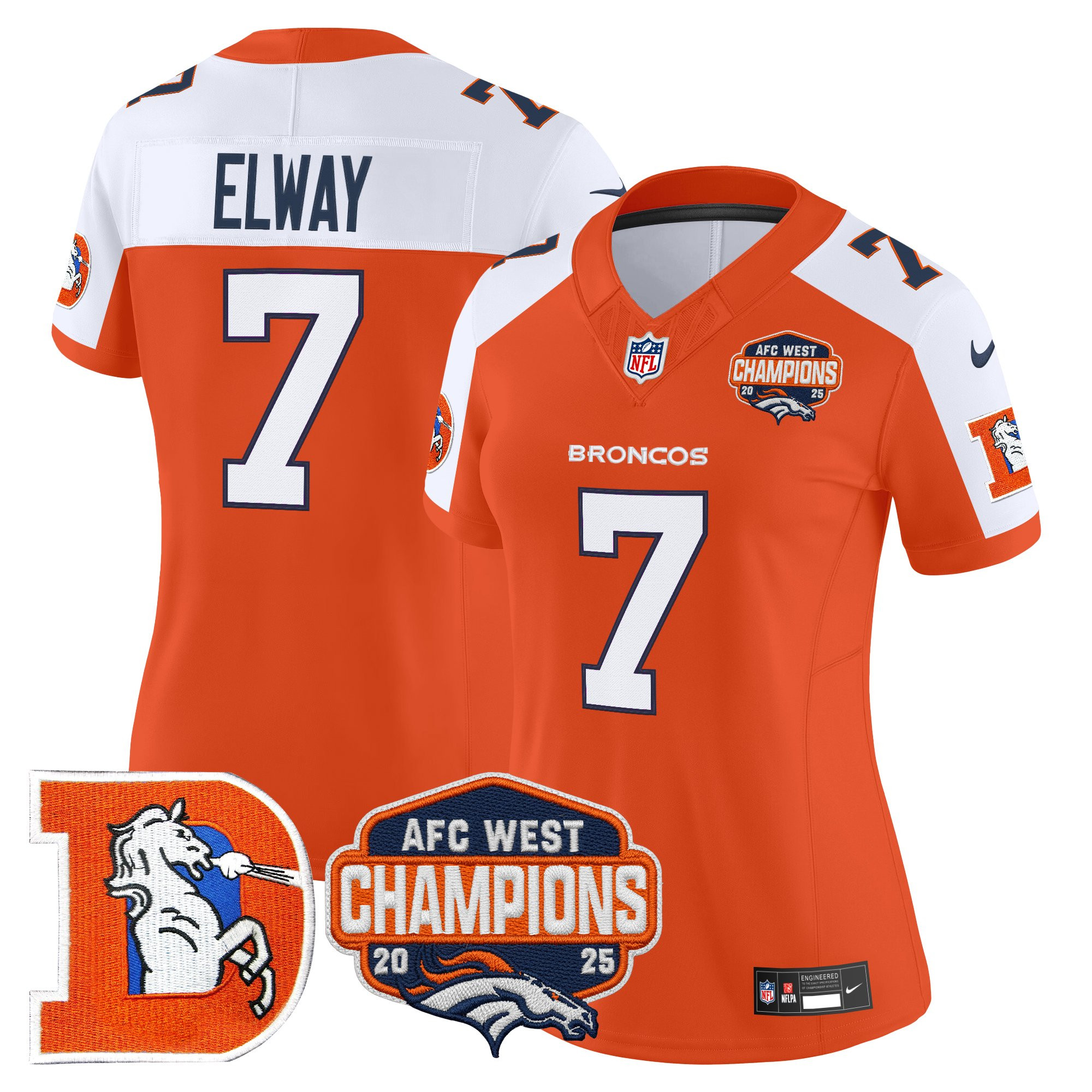 Women’s Denver Broncos Throwback Vapor Limited Jersey – 2025 AFC West Division Champions Patch – All Stitched