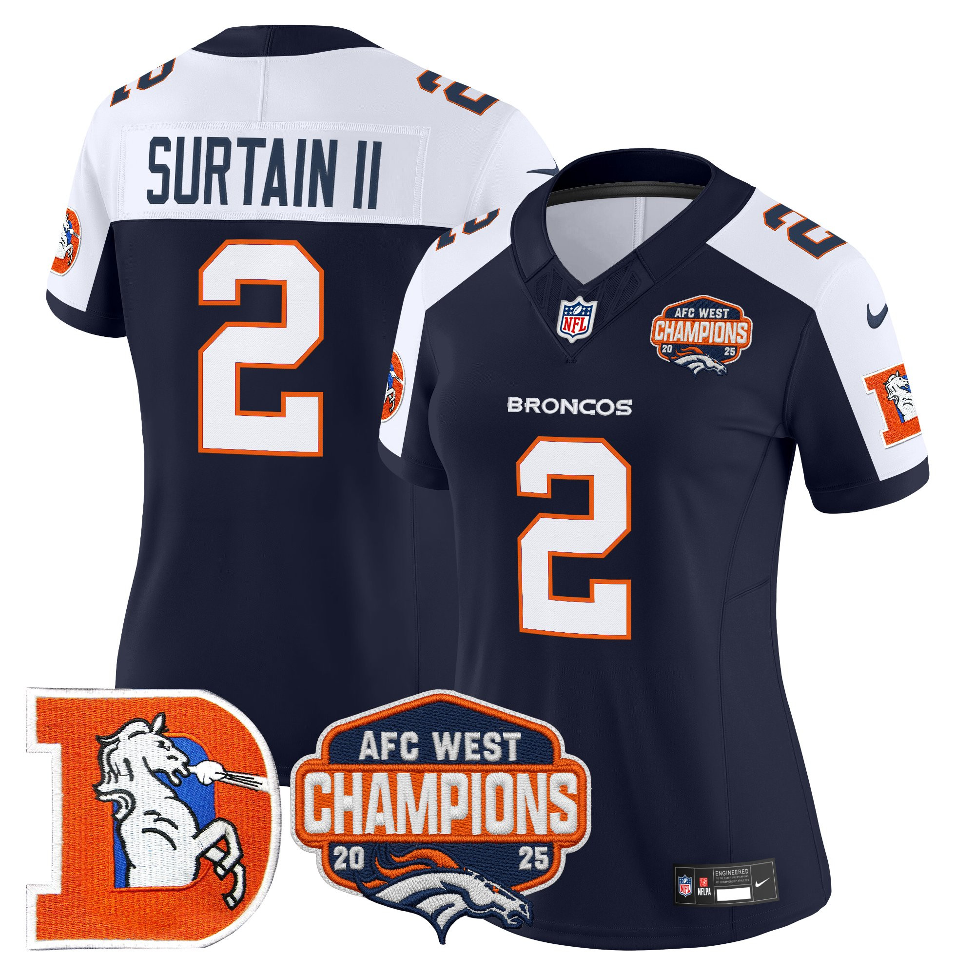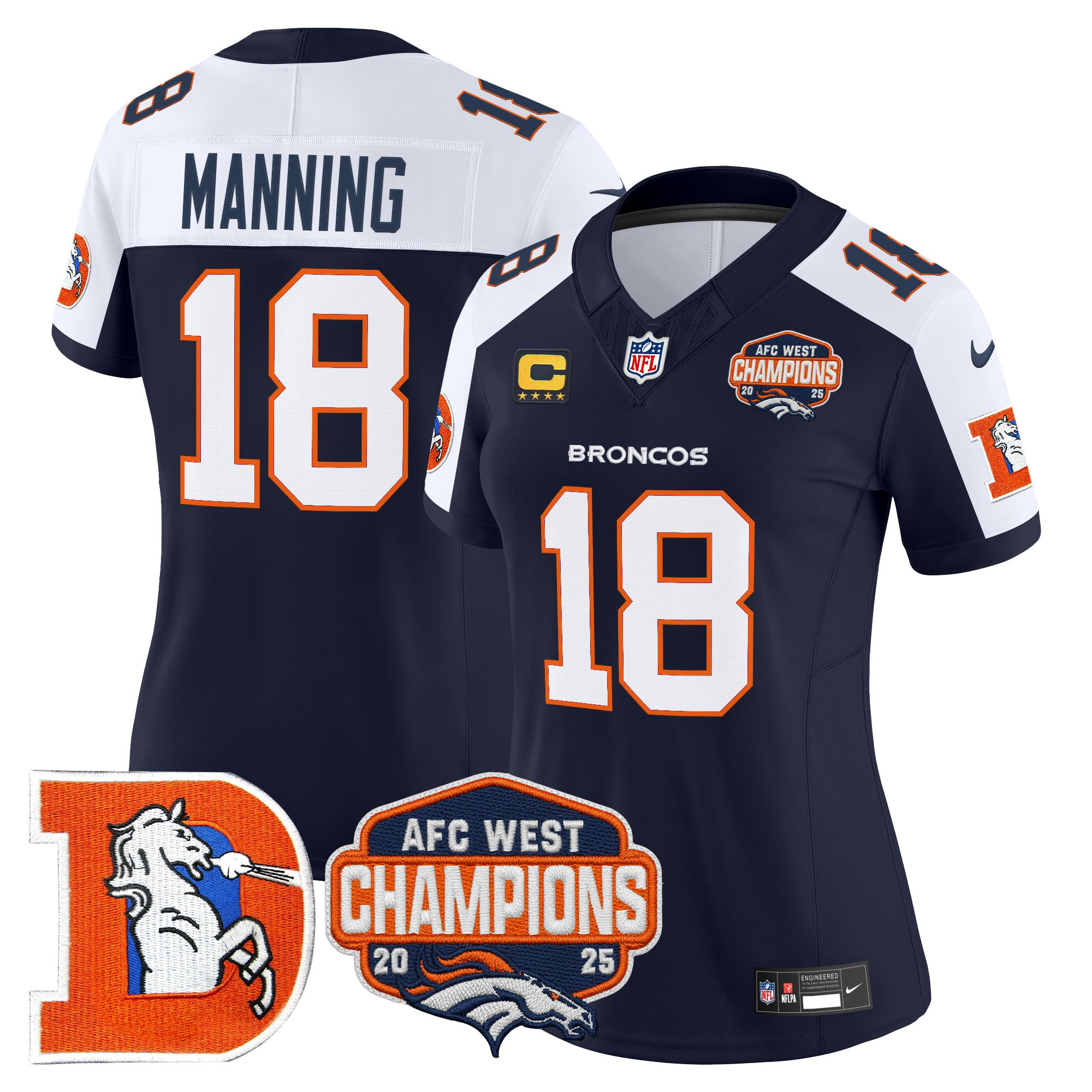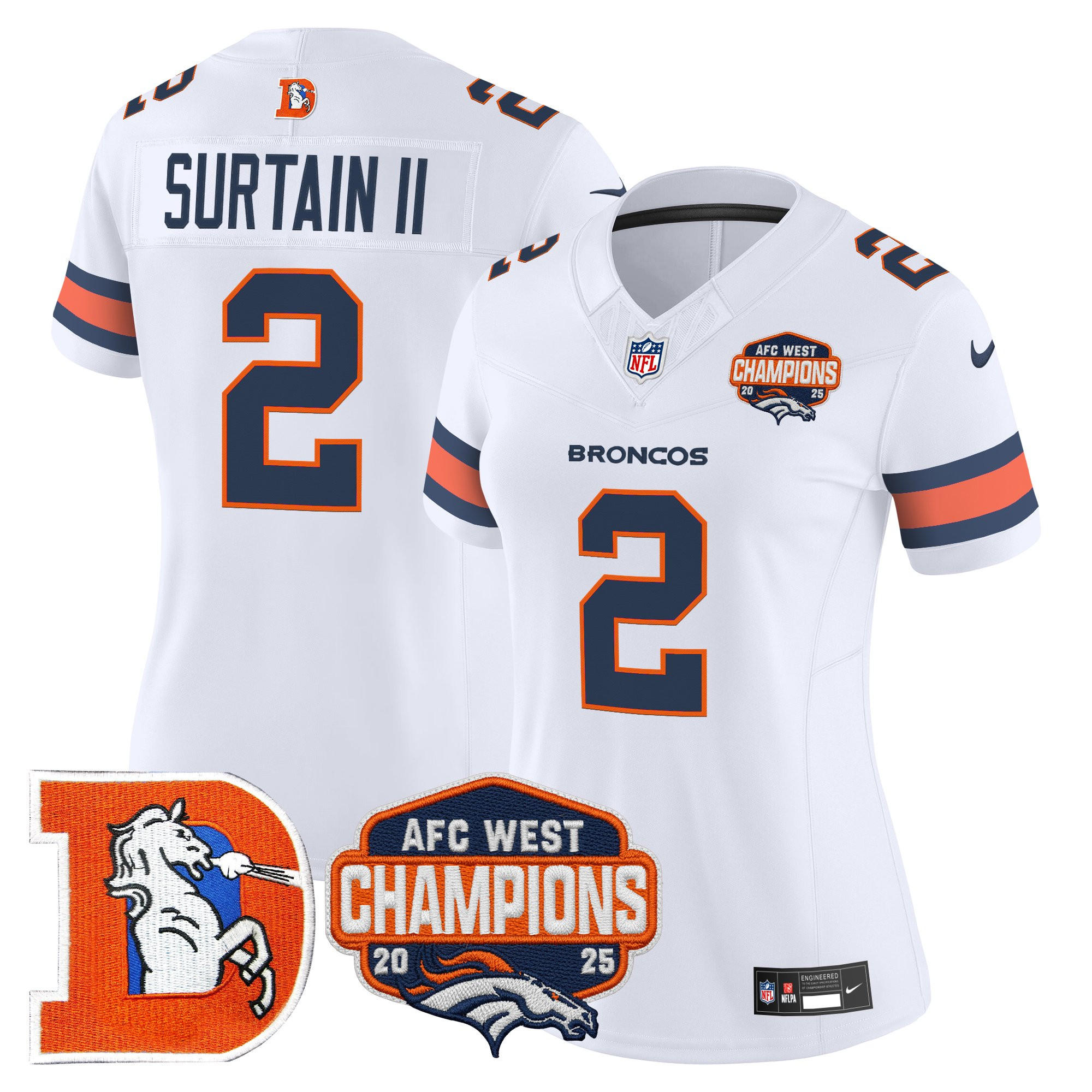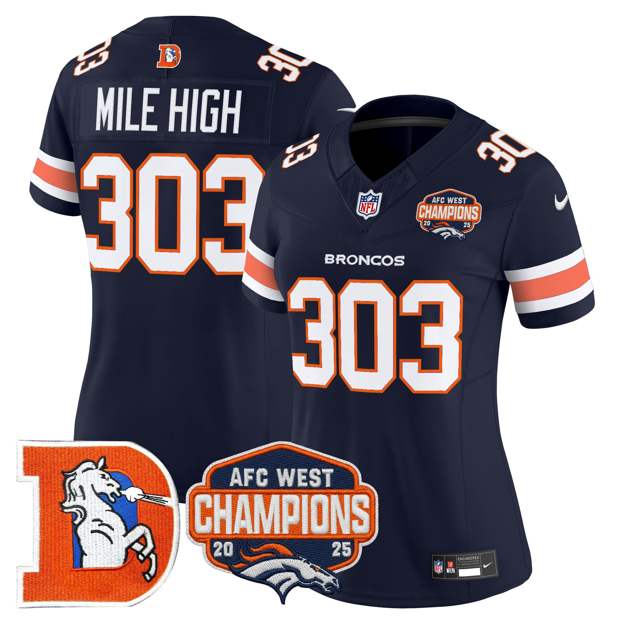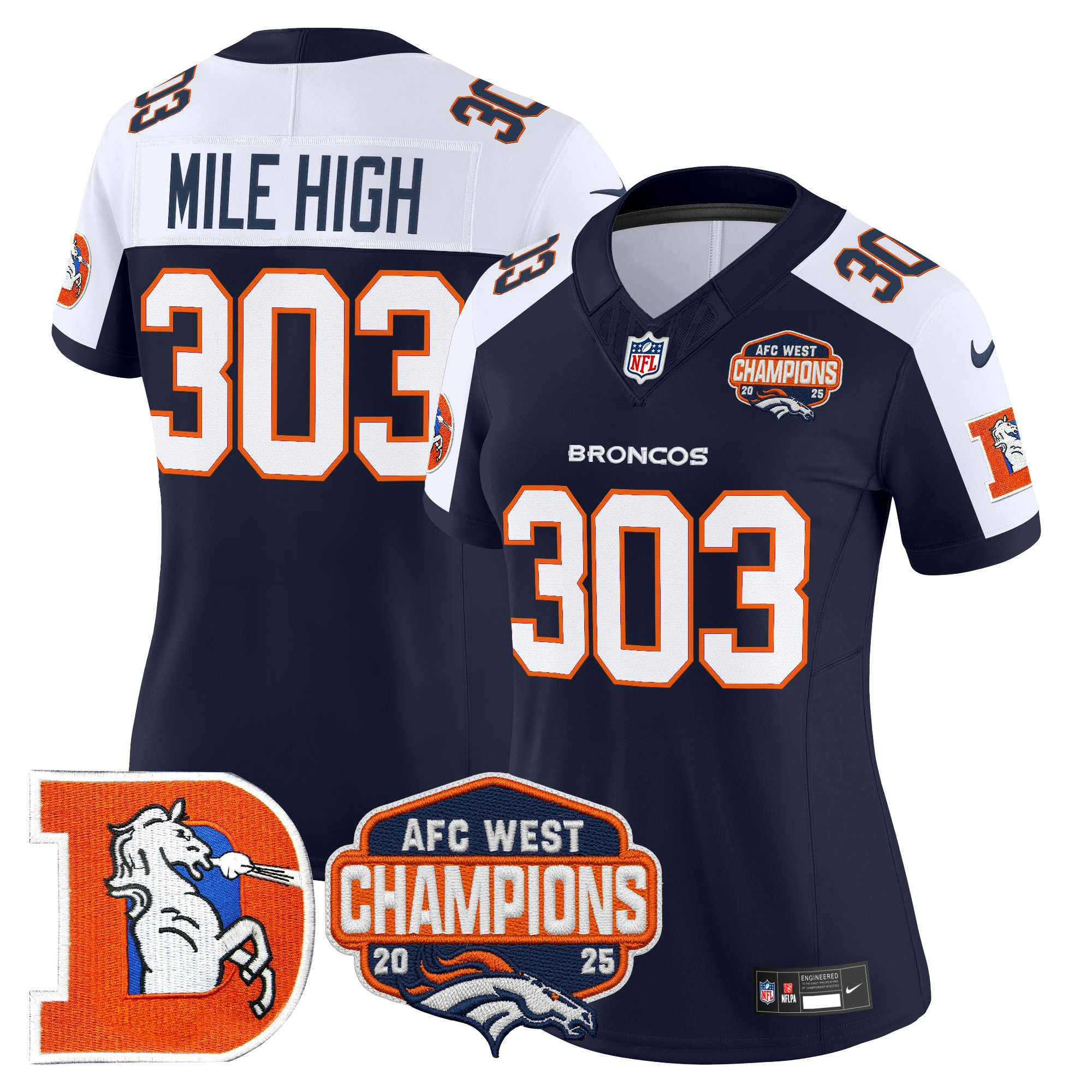 Women’s Denver Broncos Throwback Vapor Limited Jersey – 2025 AFC West Division Champions Patch – All Stitched