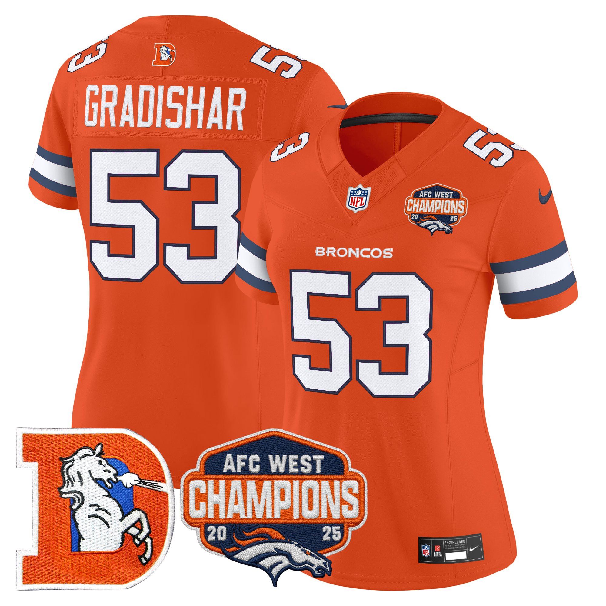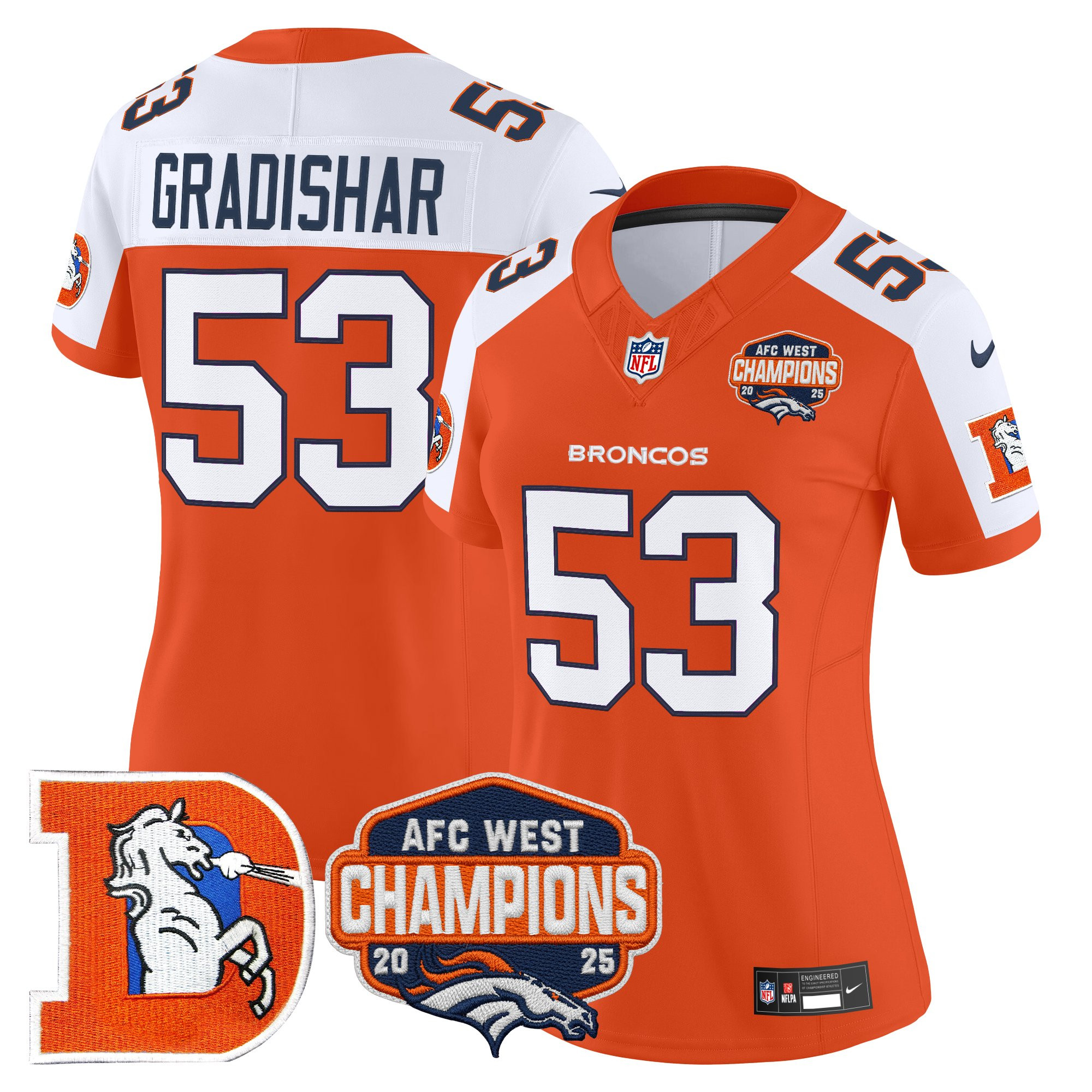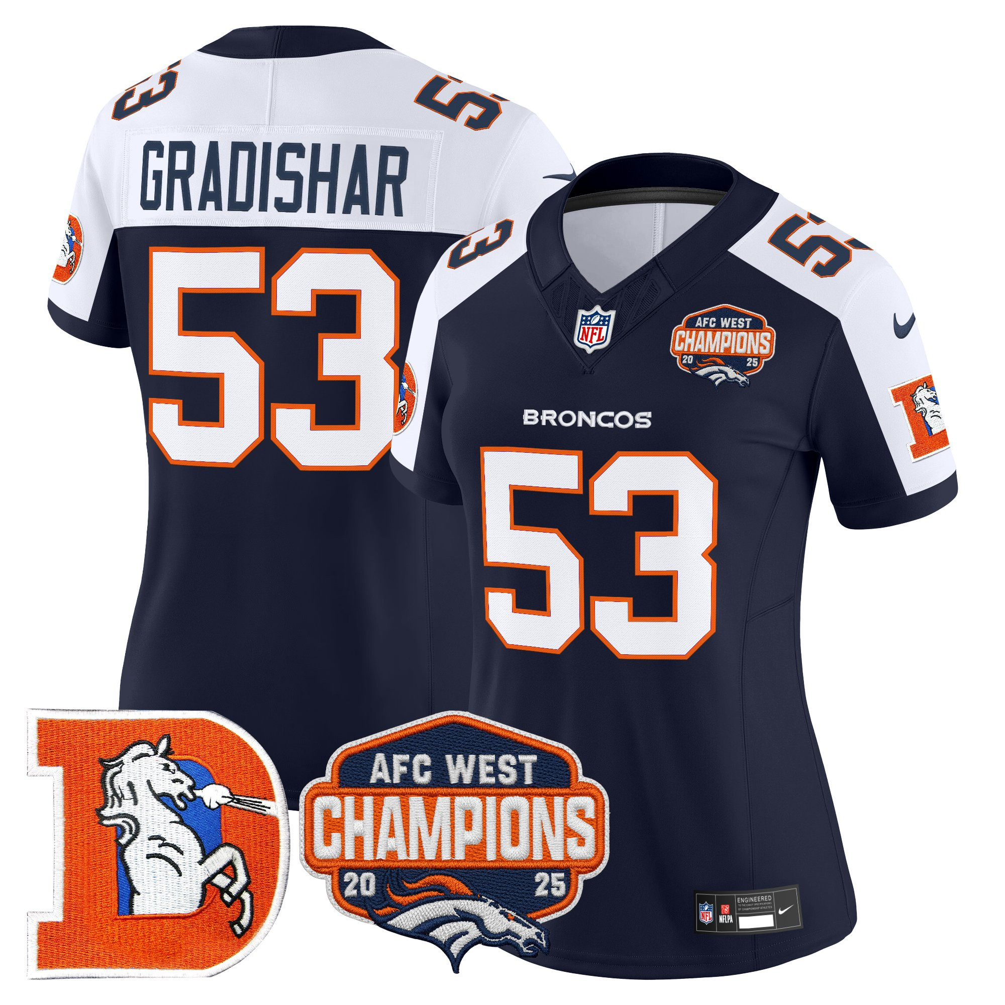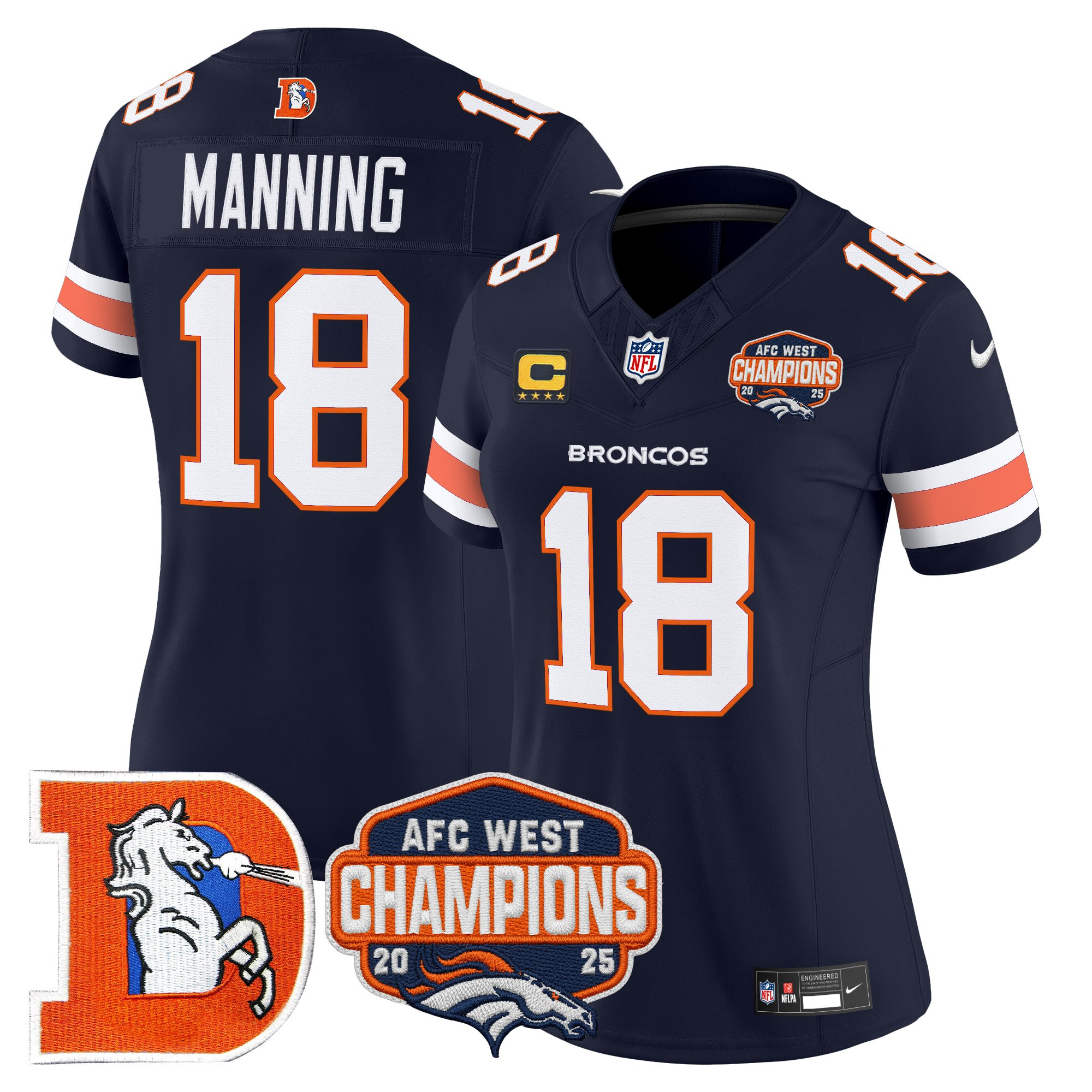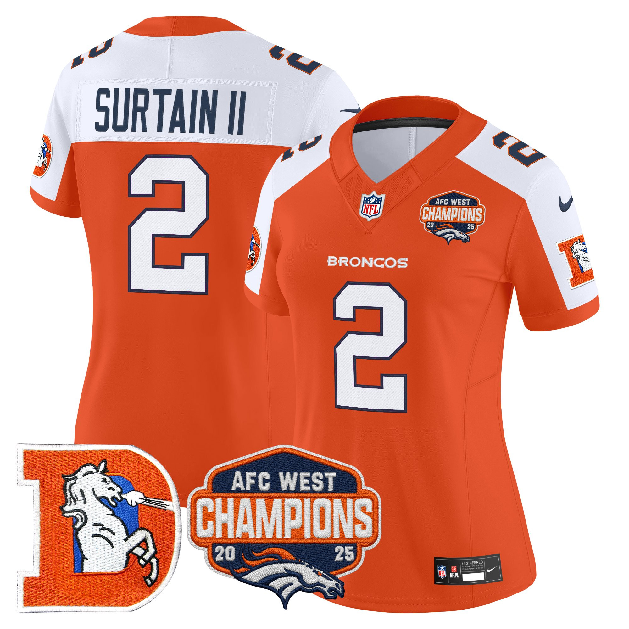 Women’s Denver Broncos Throwback Vapor Limited Jersey – 2025 AFC West Division Champions Patch – All Stitched