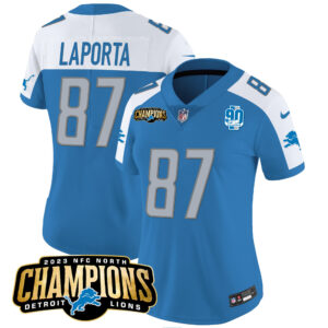 Women’s Detroit Lions 2023 NFC North Champions Patch Vapor Jersey V2 – All Stitched