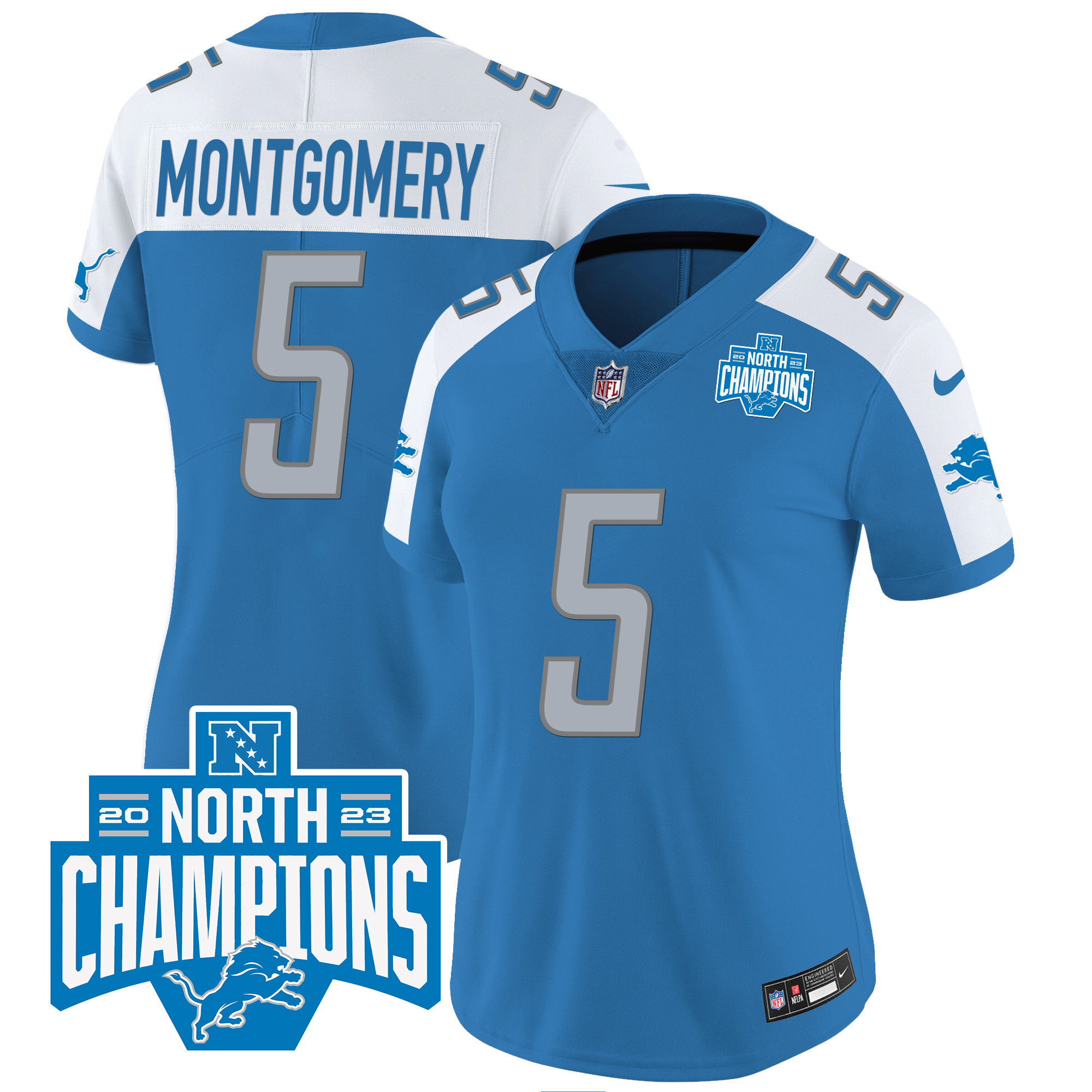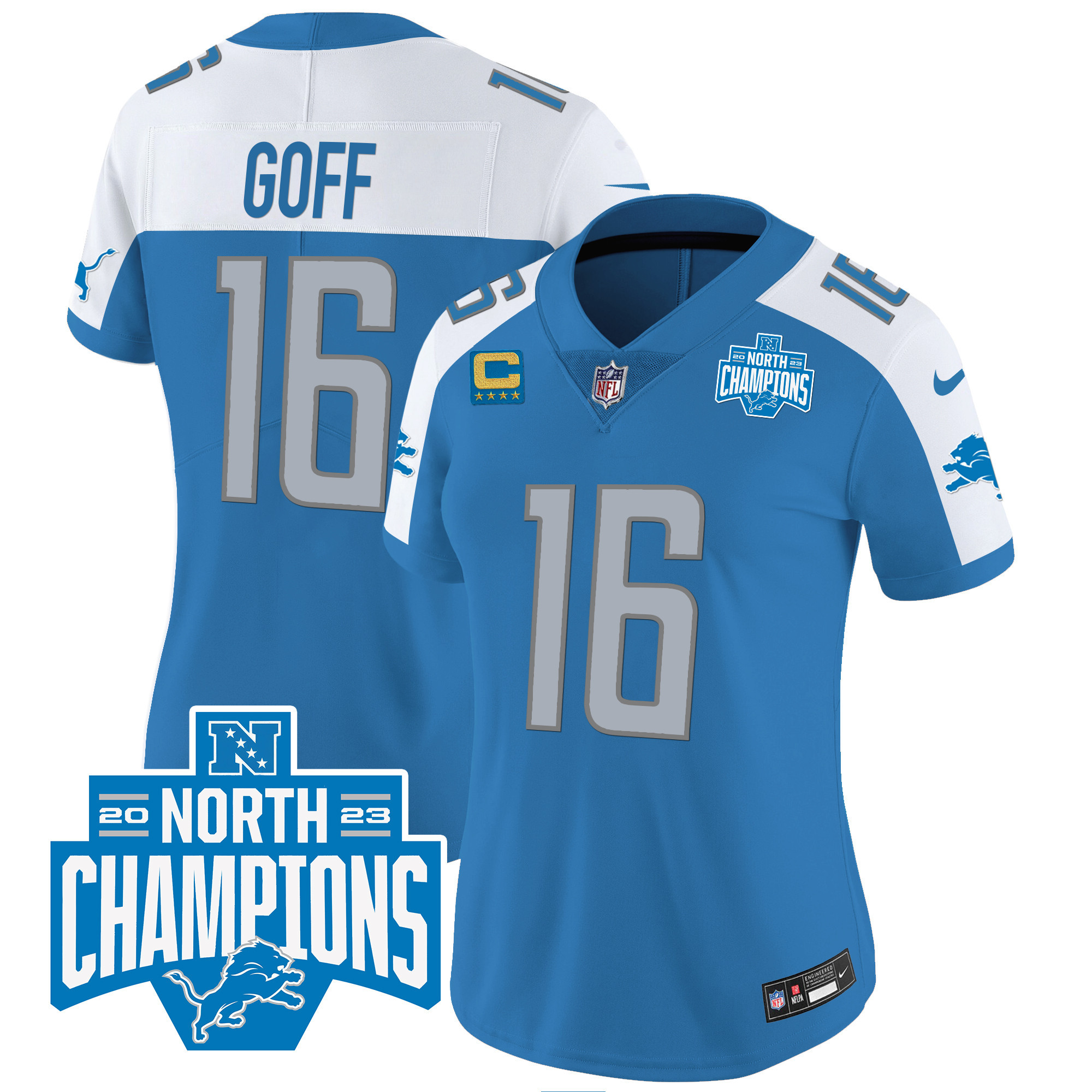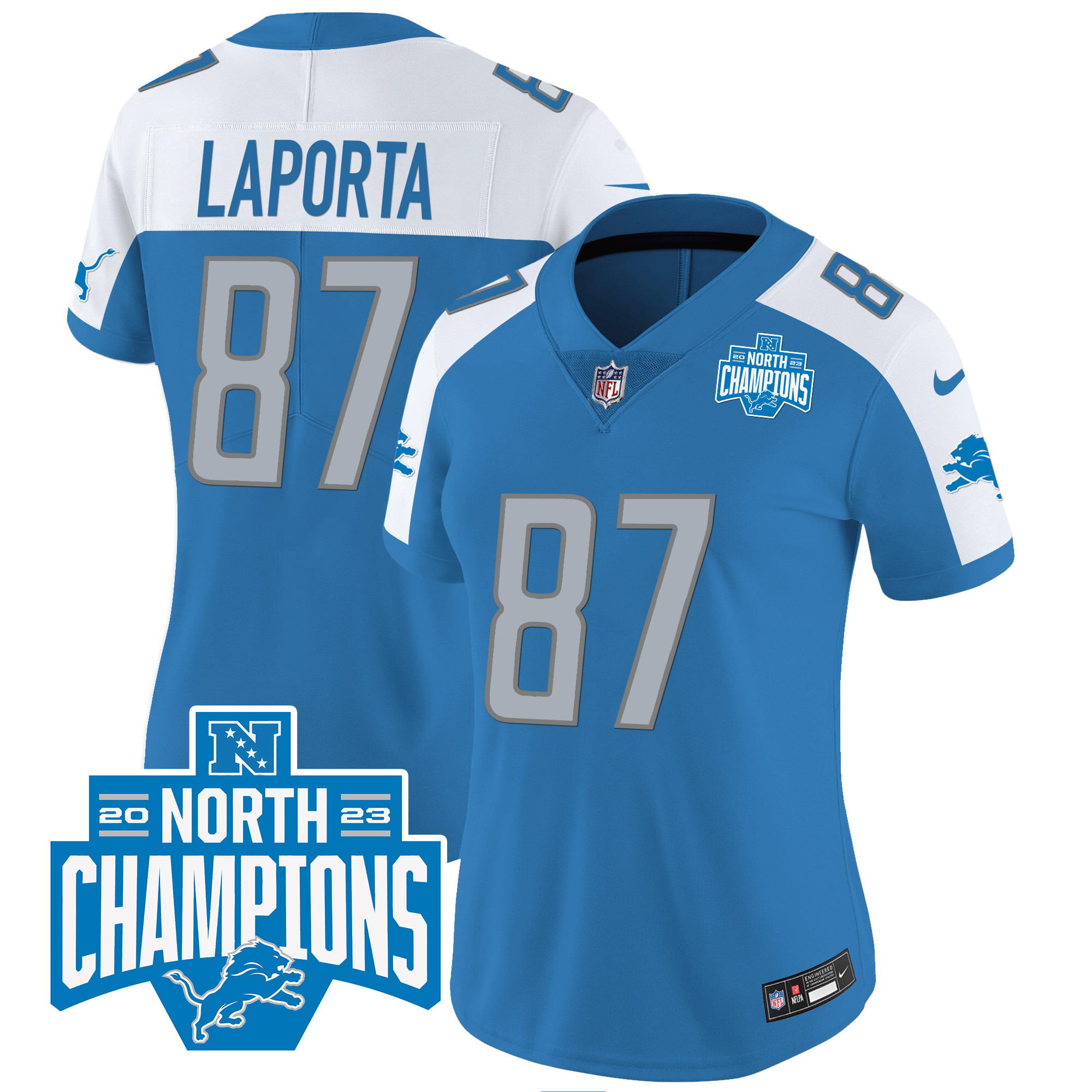 Women’s Detroit Lions 2023 NFC North Division Champions Patch Vapor Jersey – All Stitched