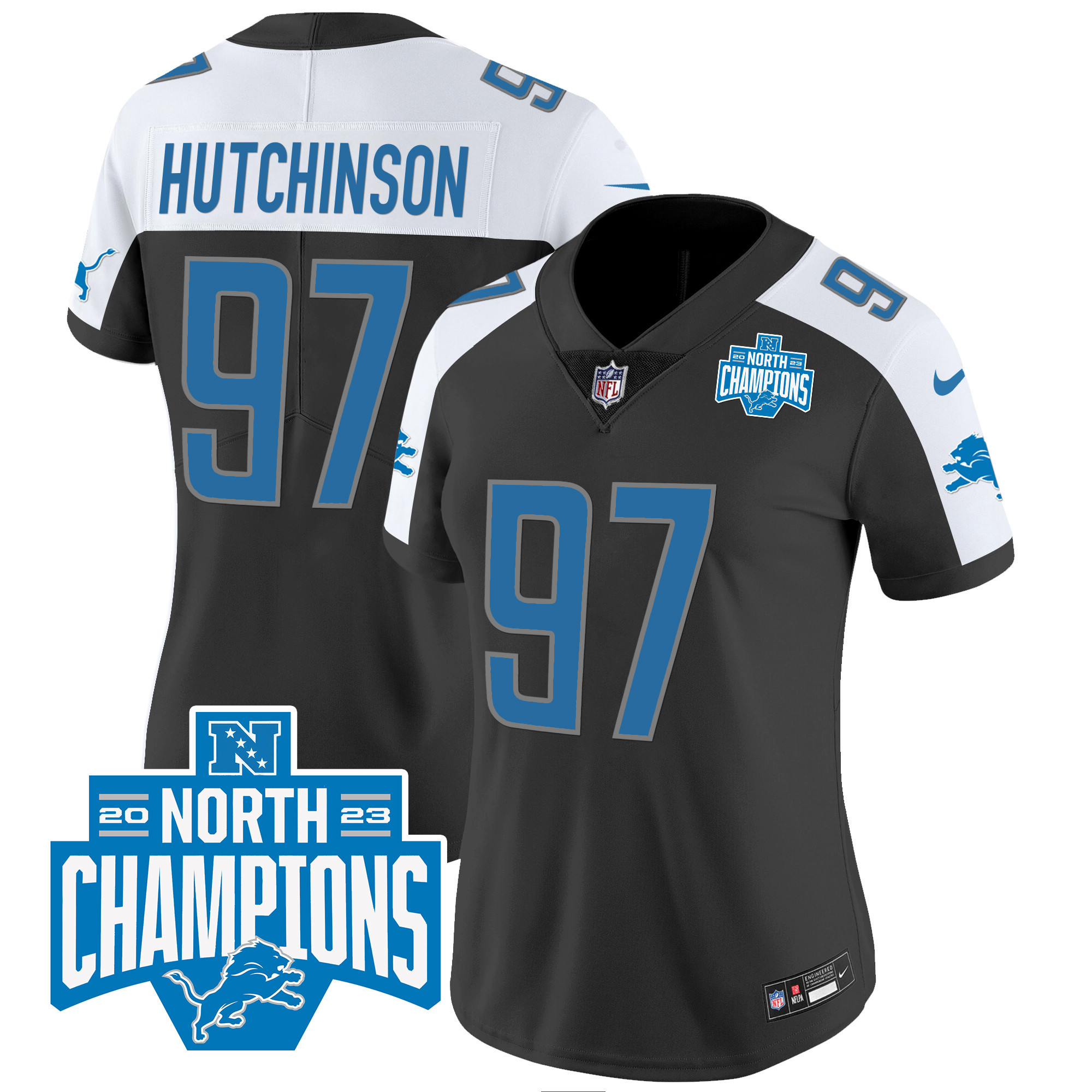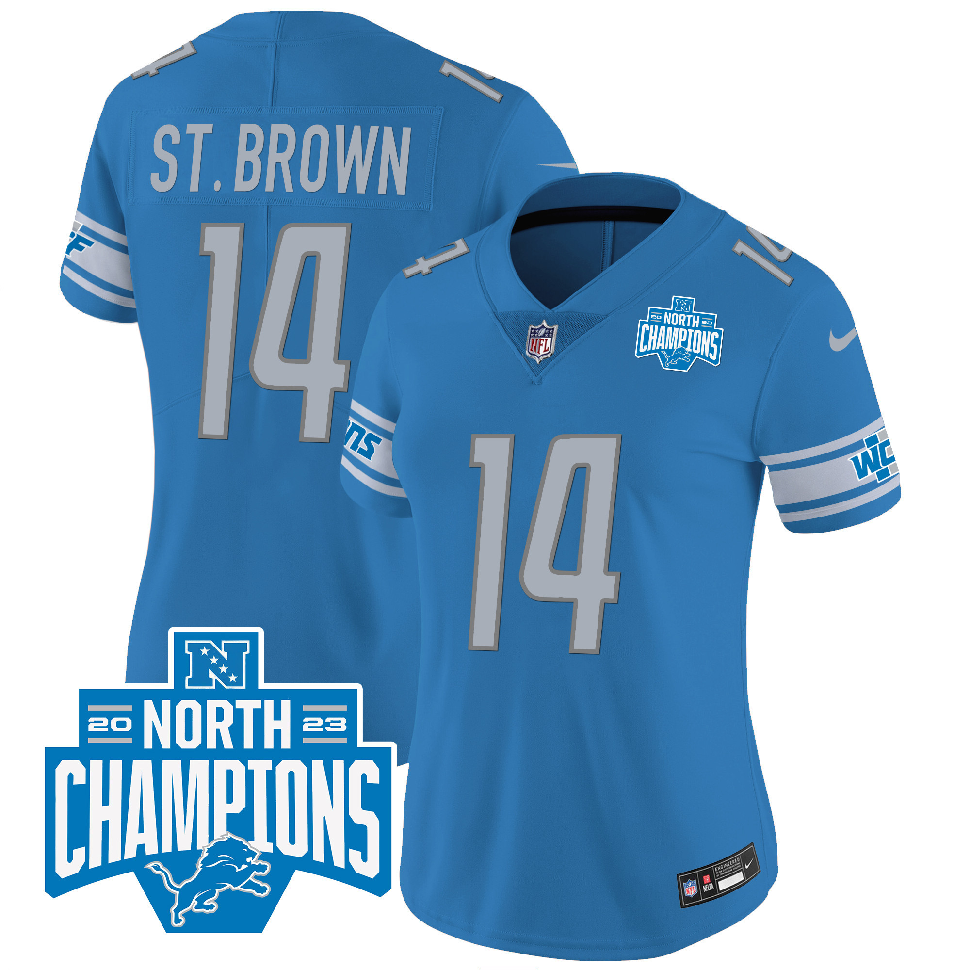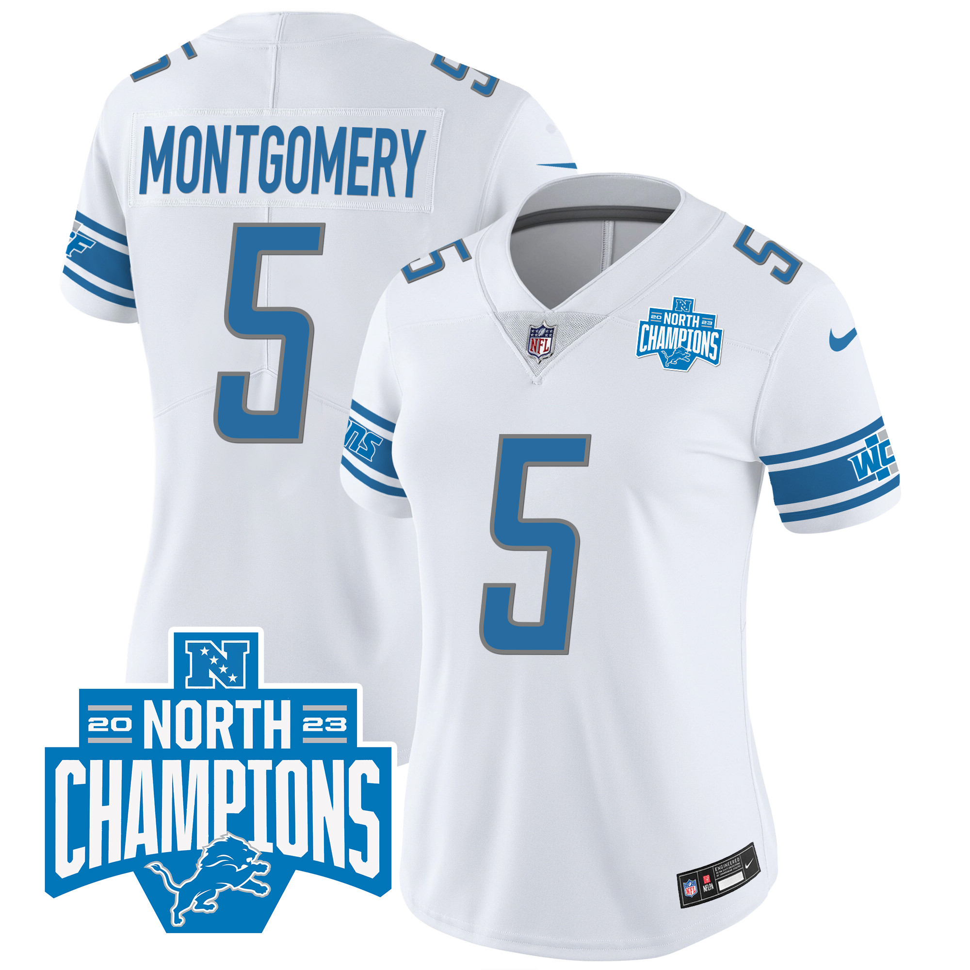 Women’s Detroit Lions 2023 NFC North Division Champions Patch Vapor Jersey – All Stitched