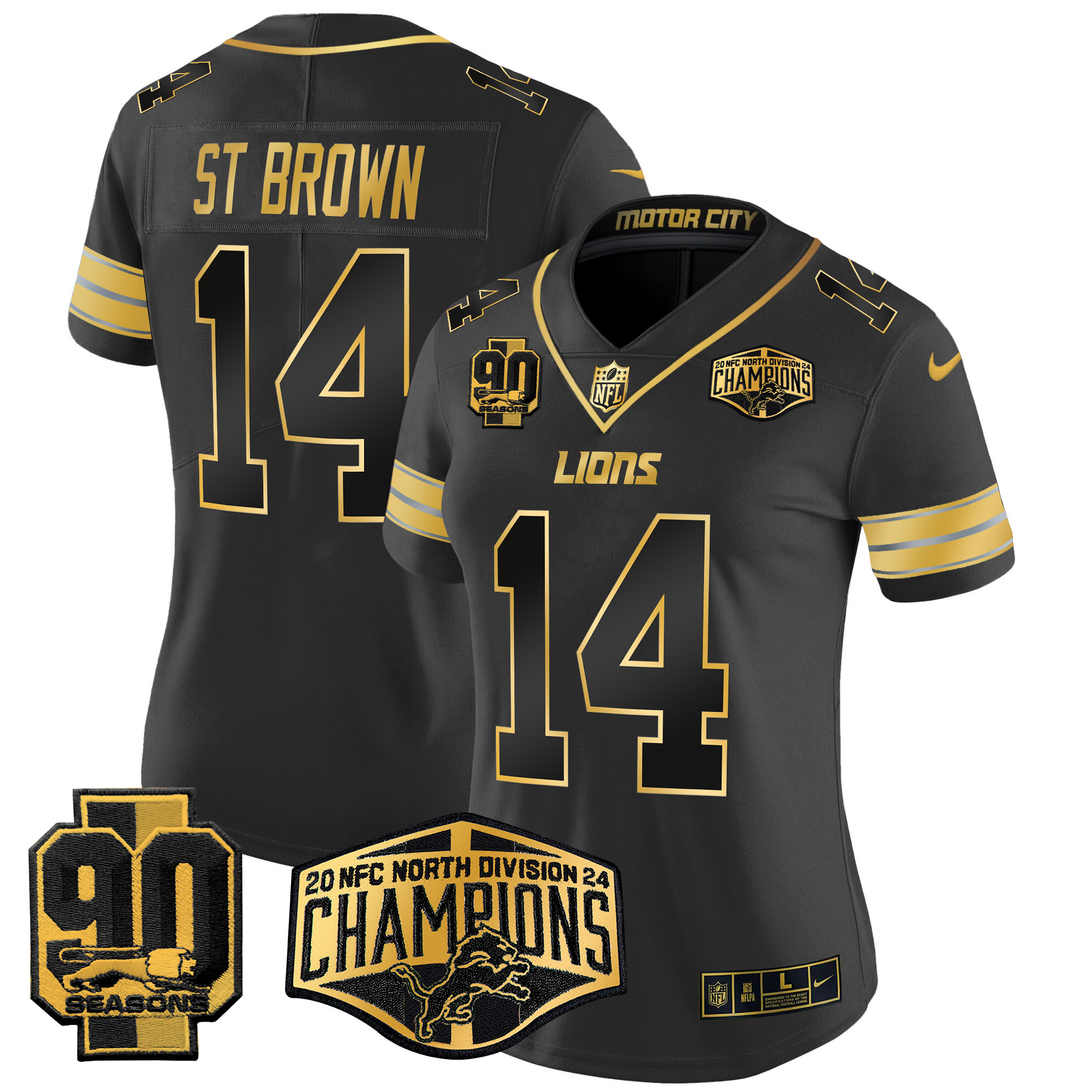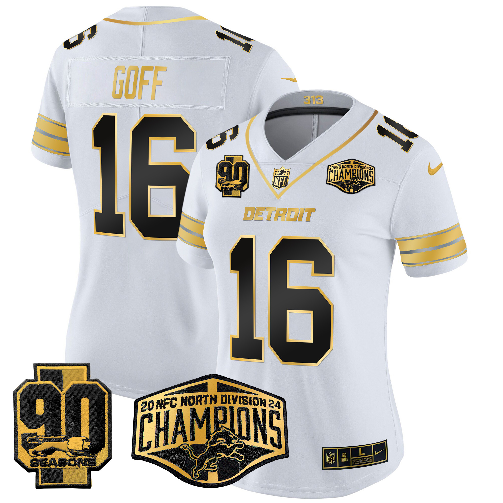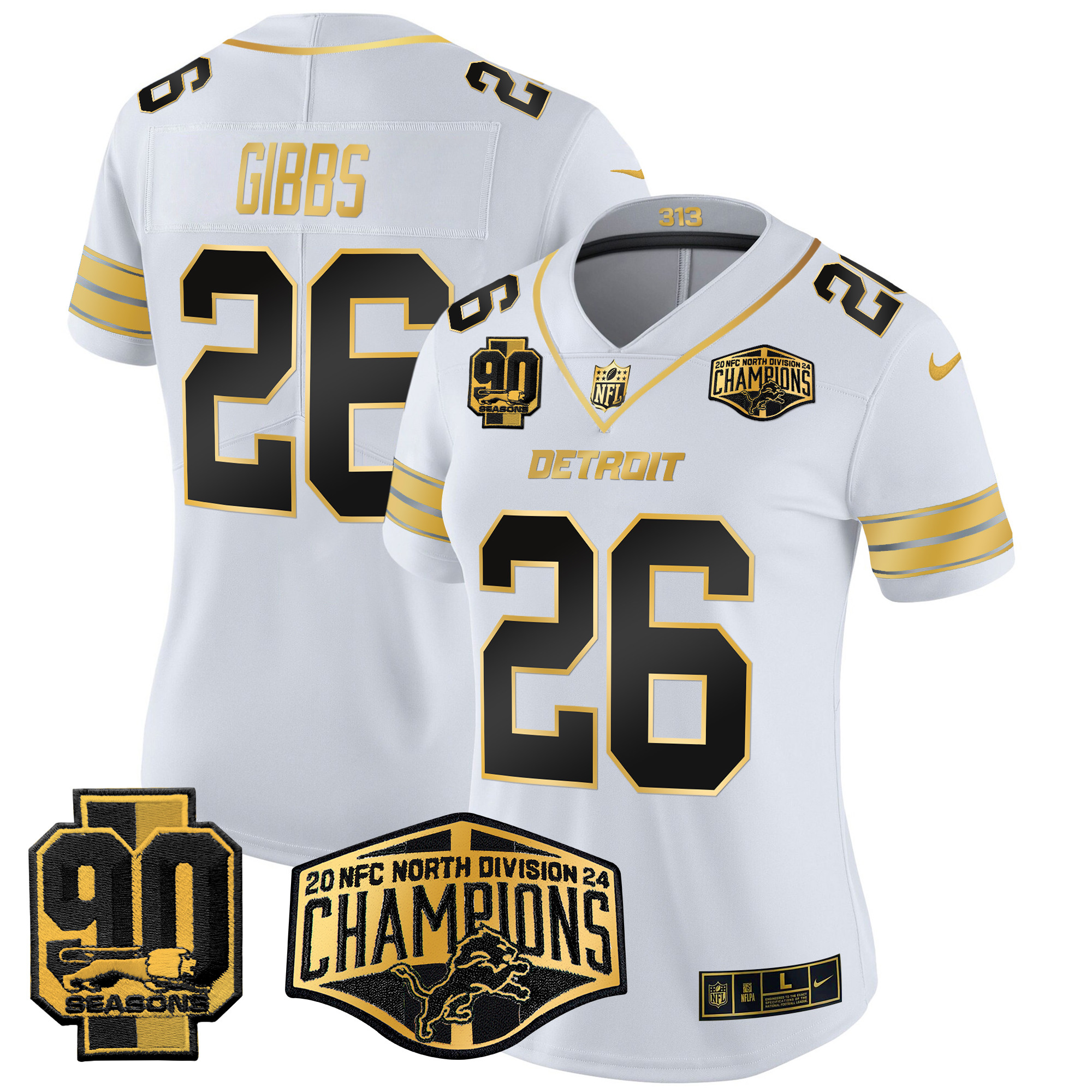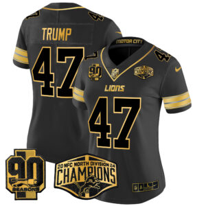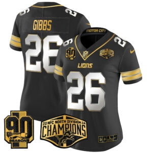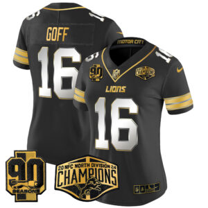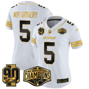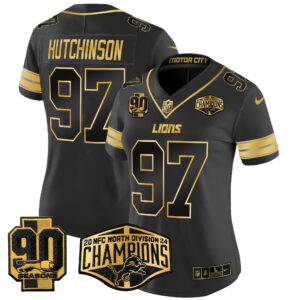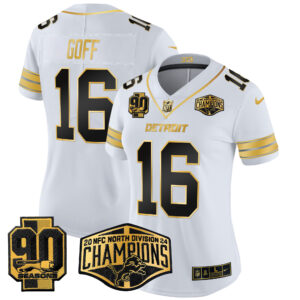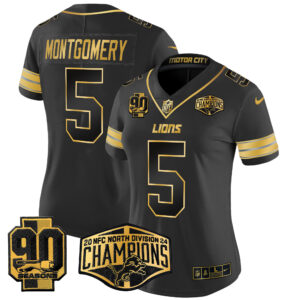 Women’s Detroit Lions 2024 NFC North Division Champions Patch Gold Vapor Limited Jersey – All Stitched