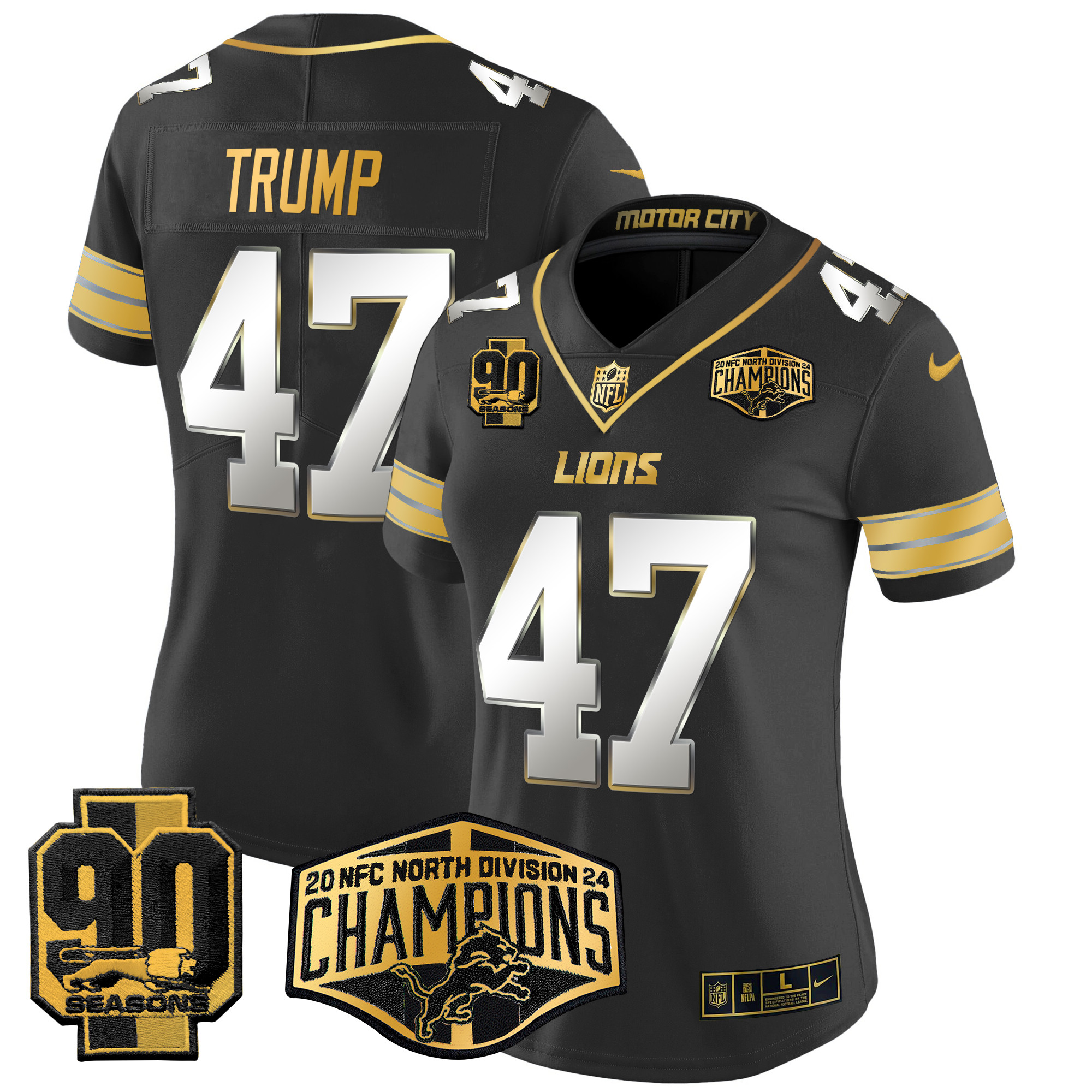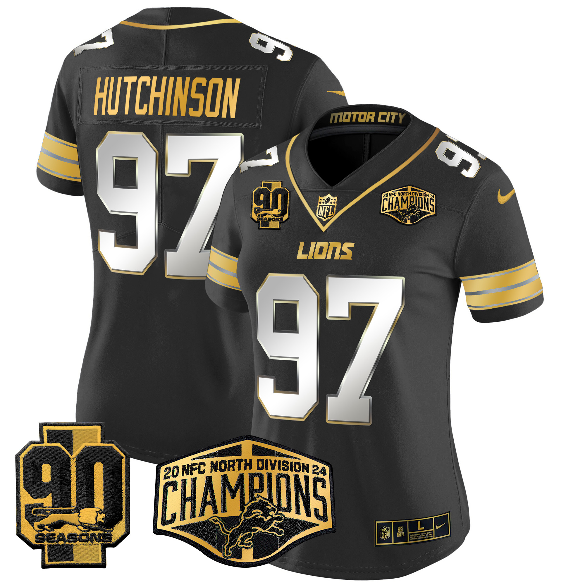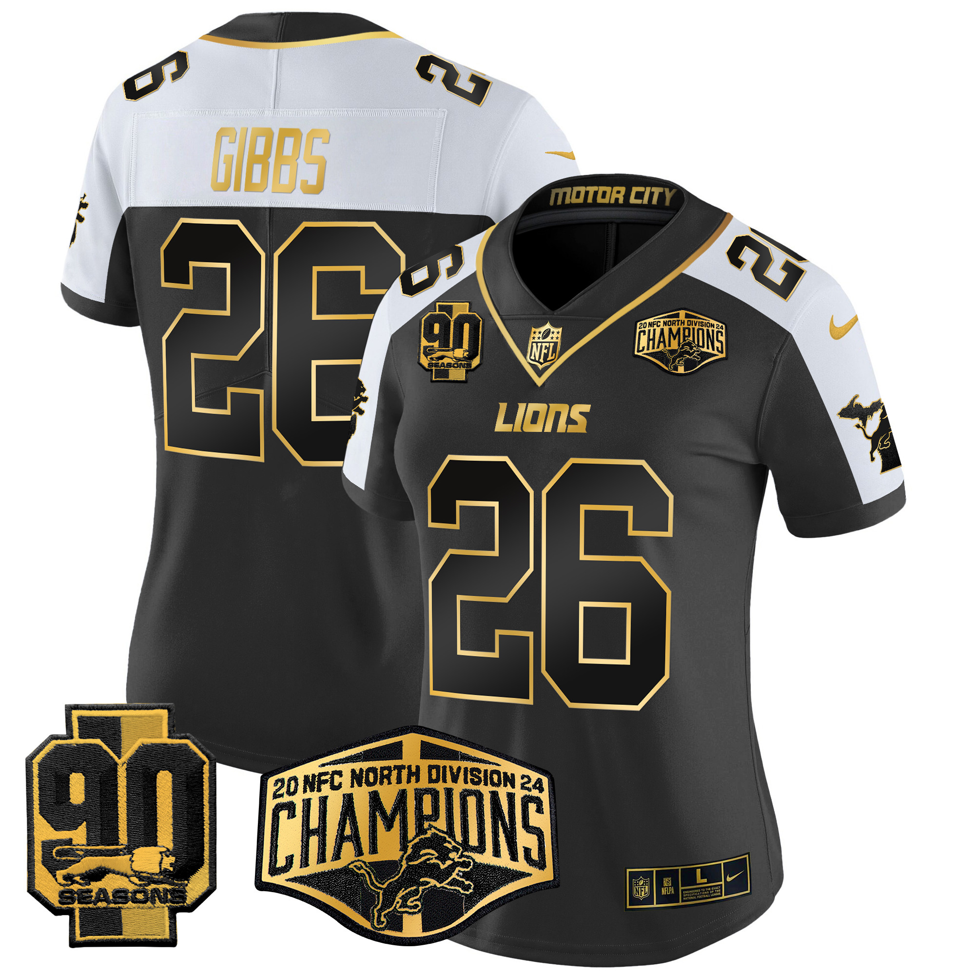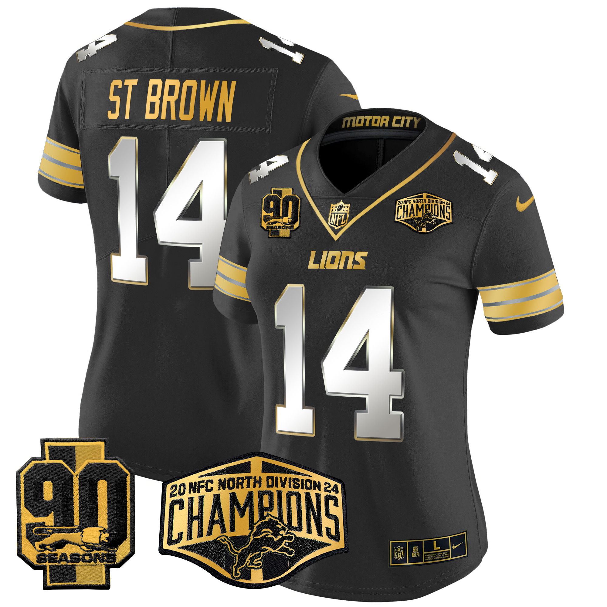 Women’s Detroit Lions 2024 NFC North Division Champions Patch Gold Vapor Limited Jersey – All Stitched