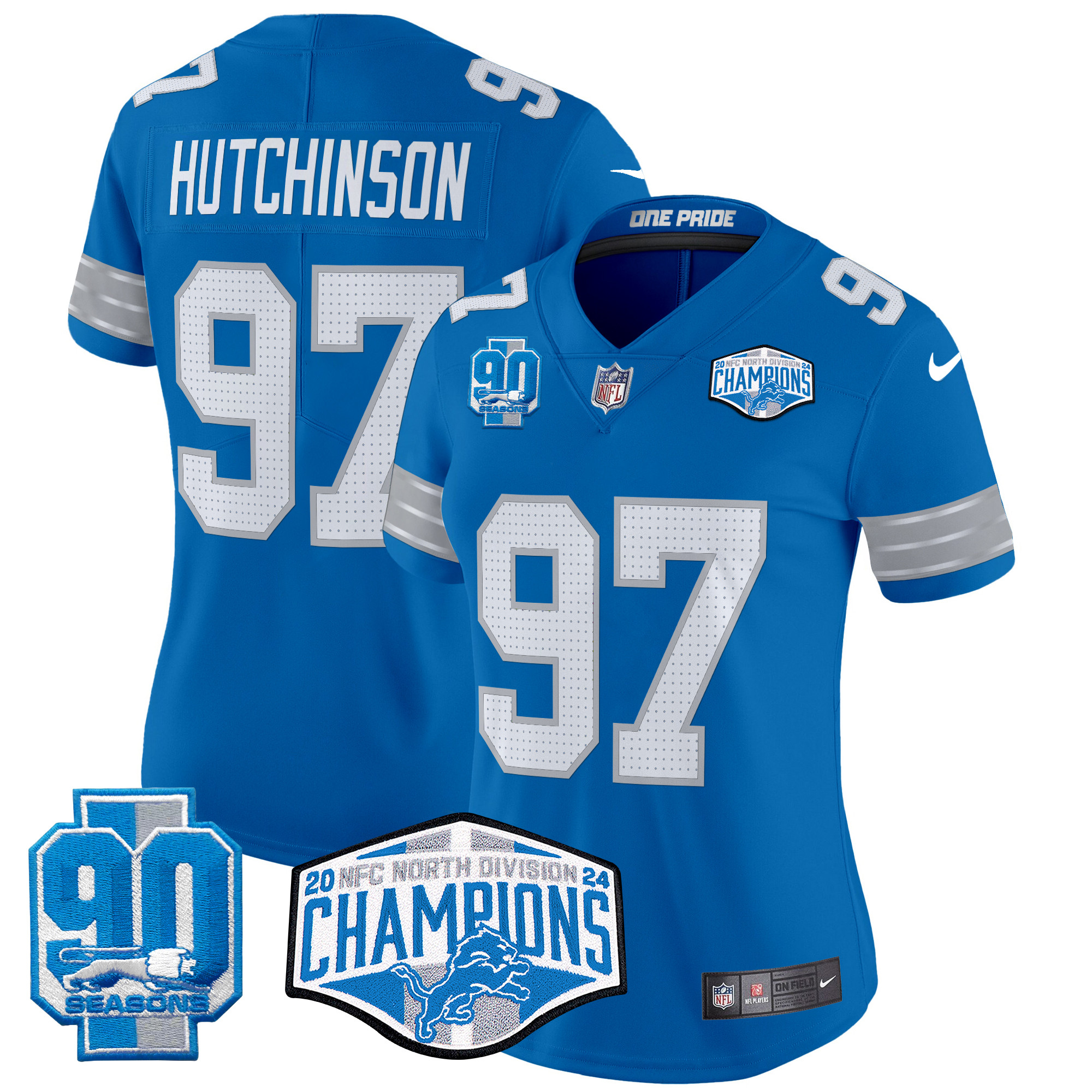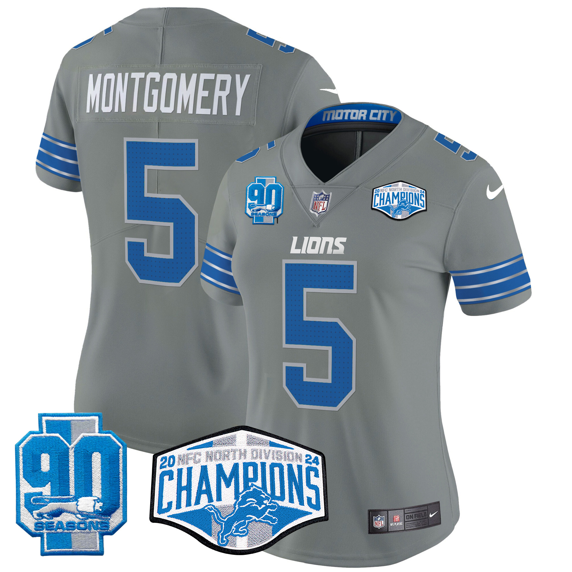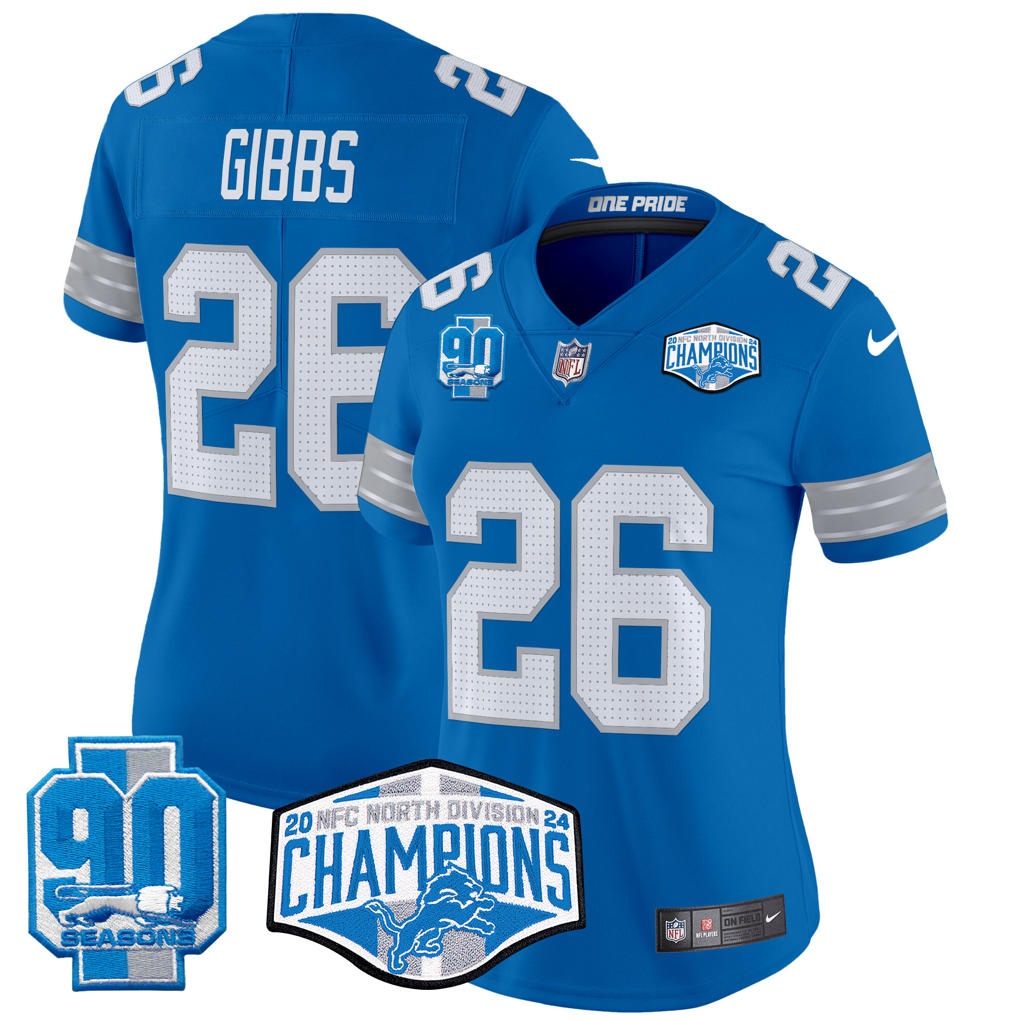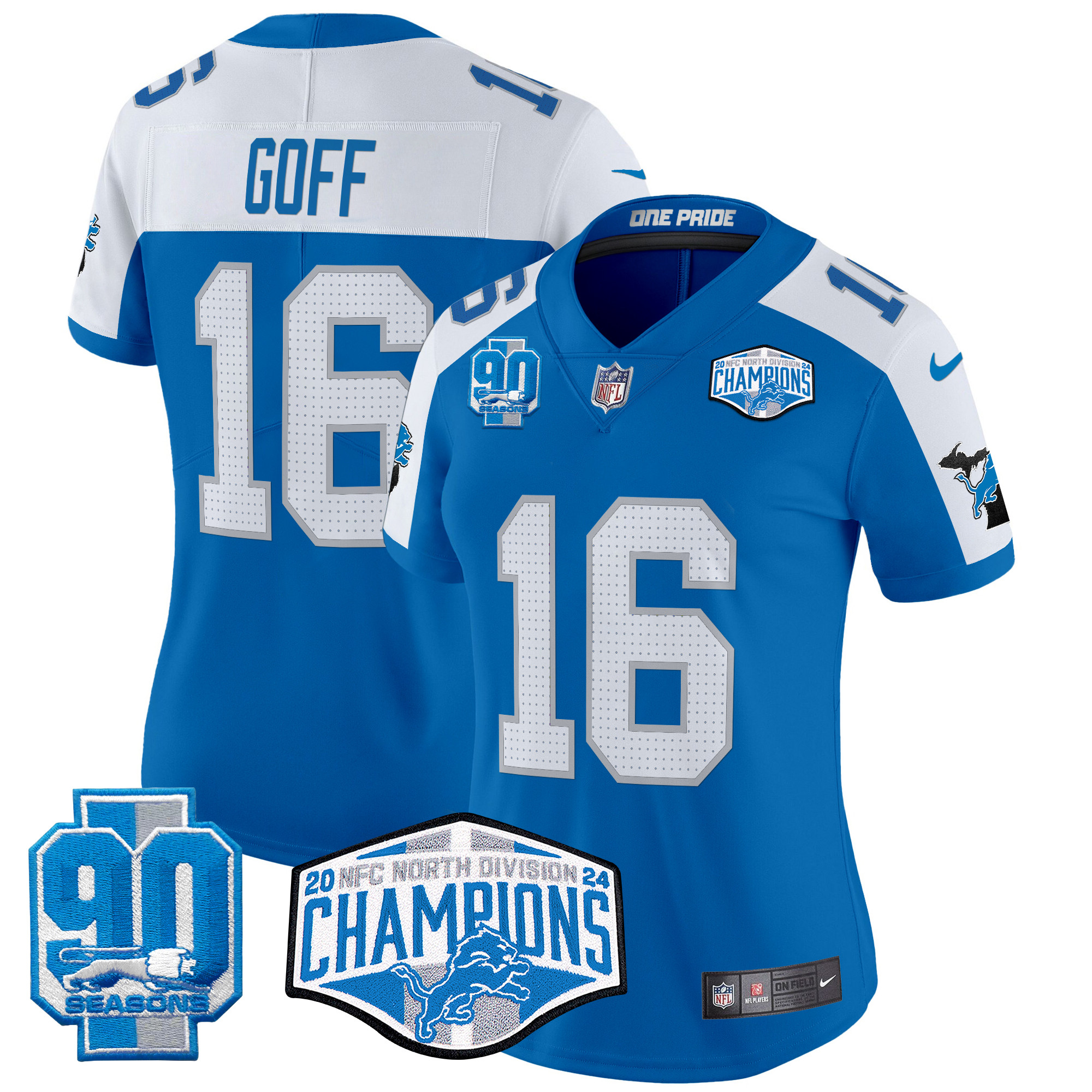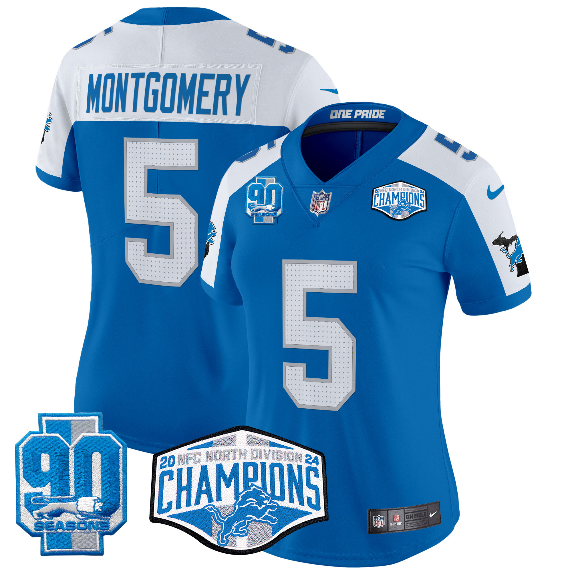Women’s Detroit Lions 2024 NFC North Division Champions Patch Vapor Limited Jersey – All Stitched