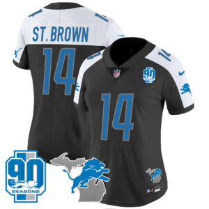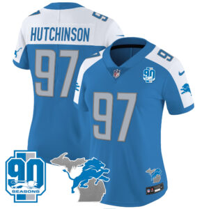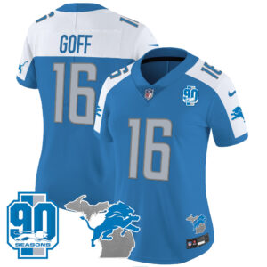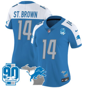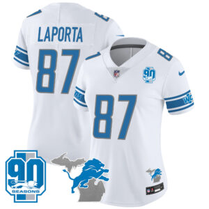 Women’s Detroit Lions 90th Year & Michigan Patch Vapor Jersey – All Stitched
