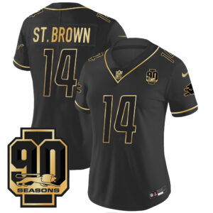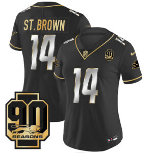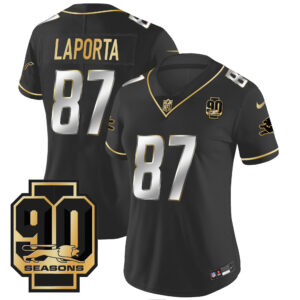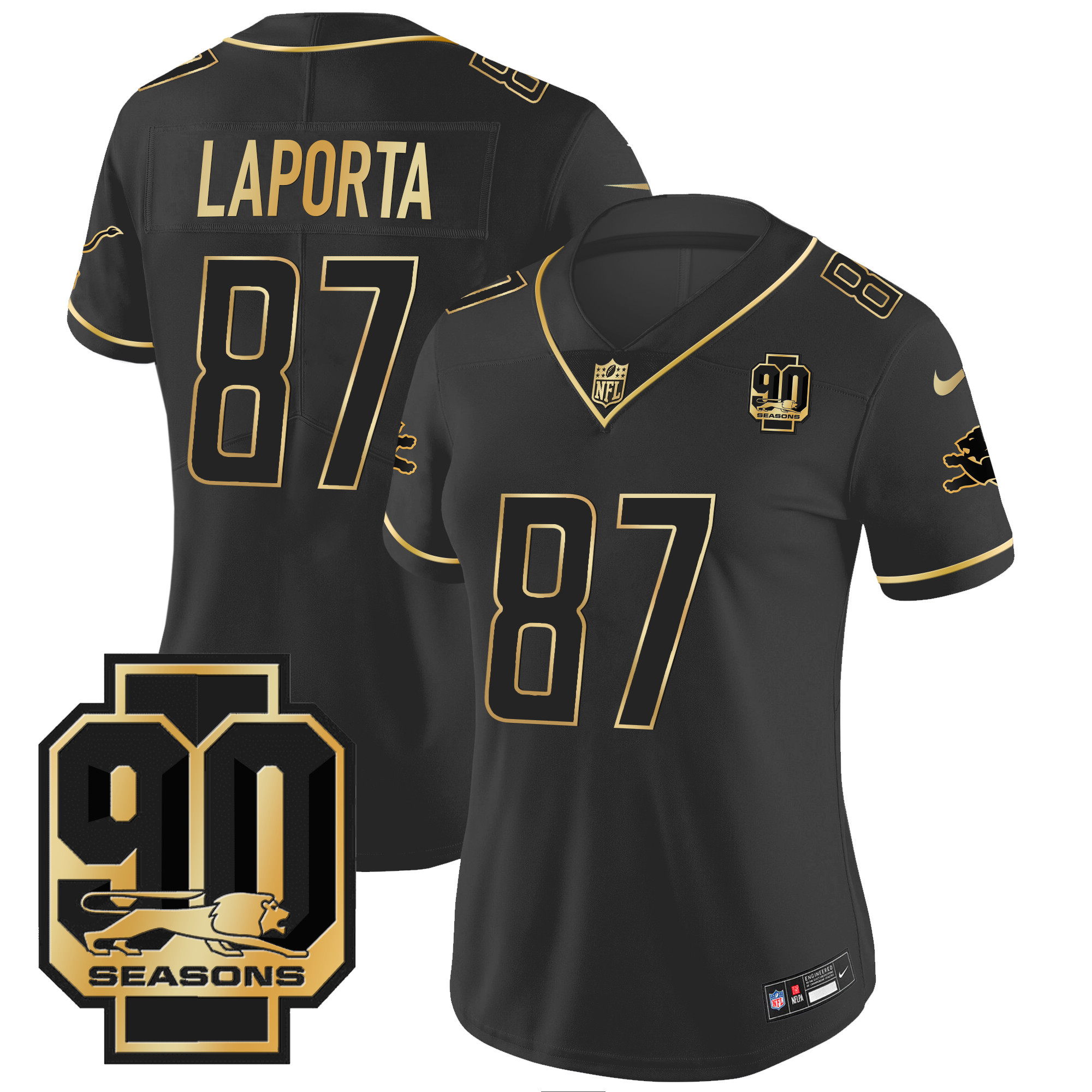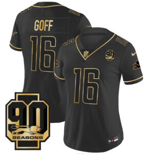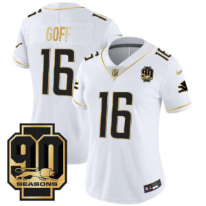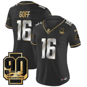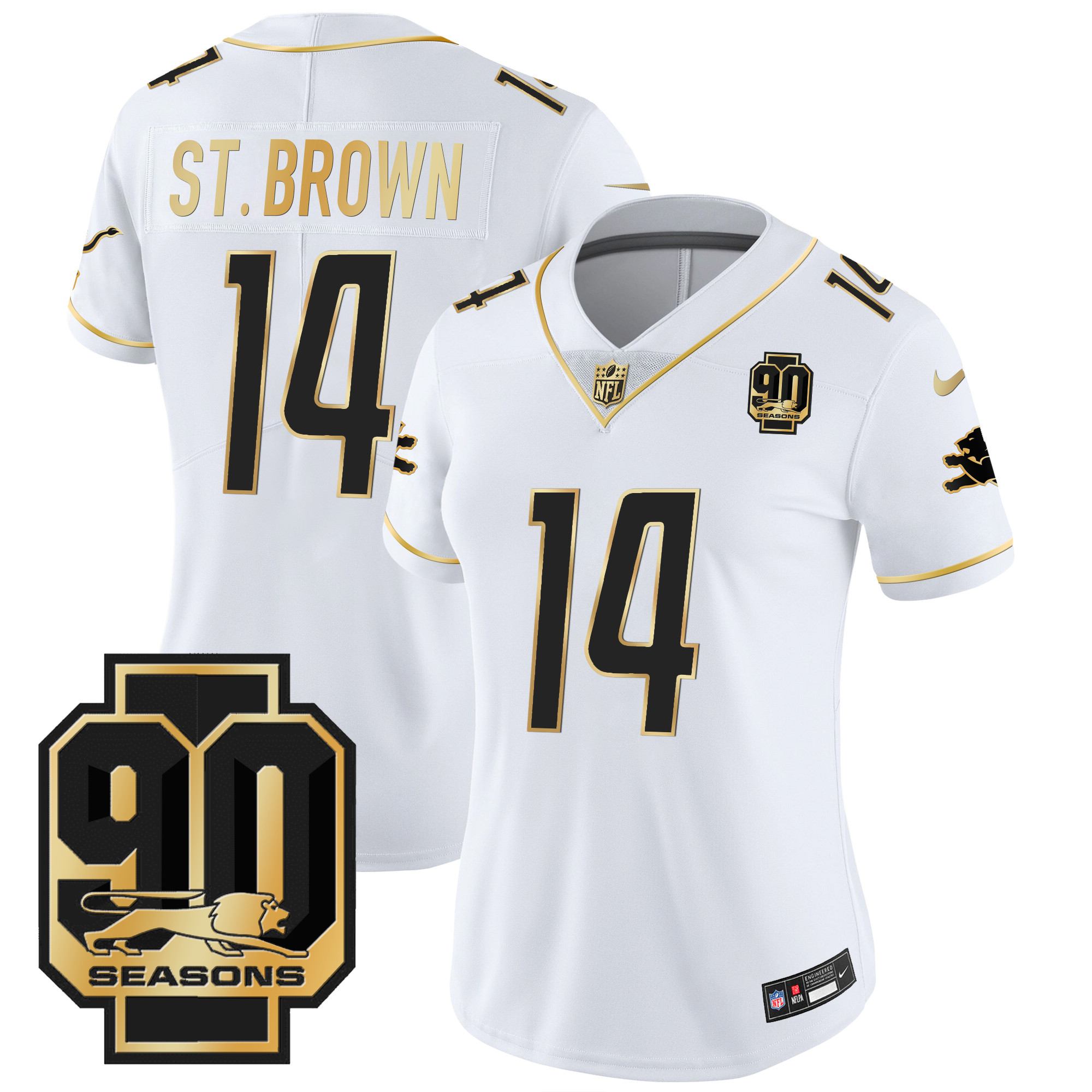 Women’s Detroit Lions 90th Year Patch Gold Jersey – All Stitched