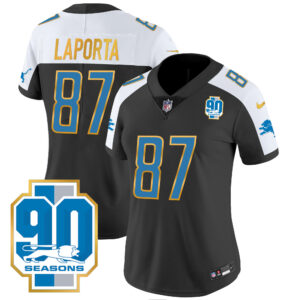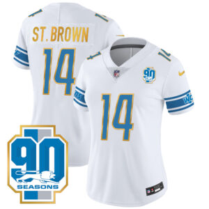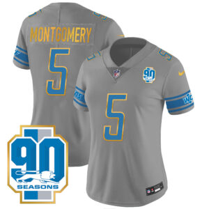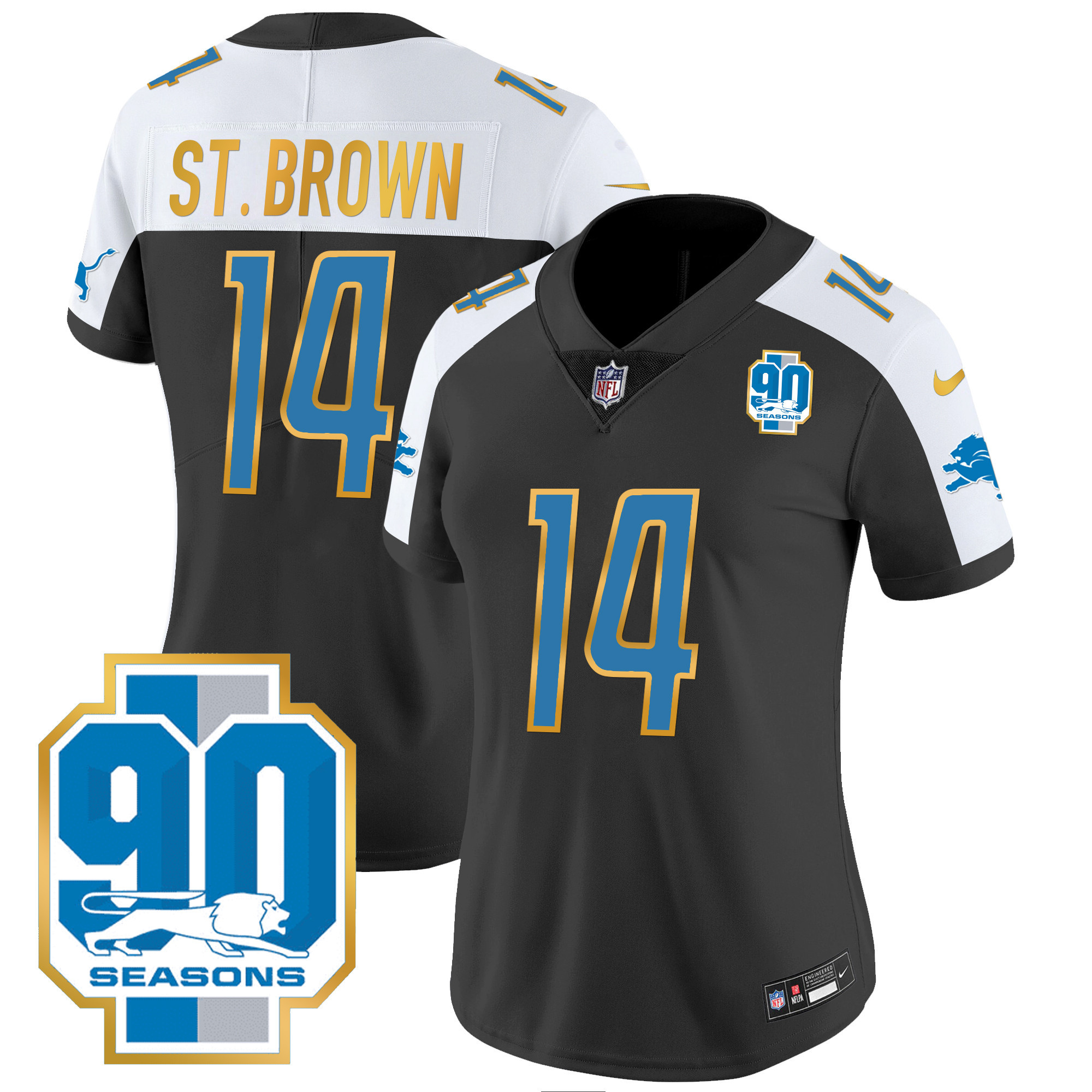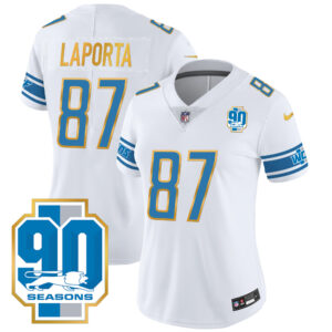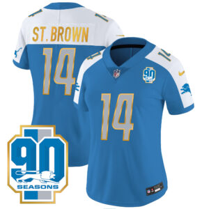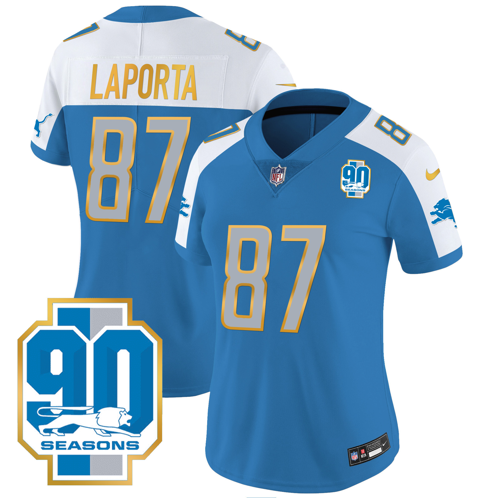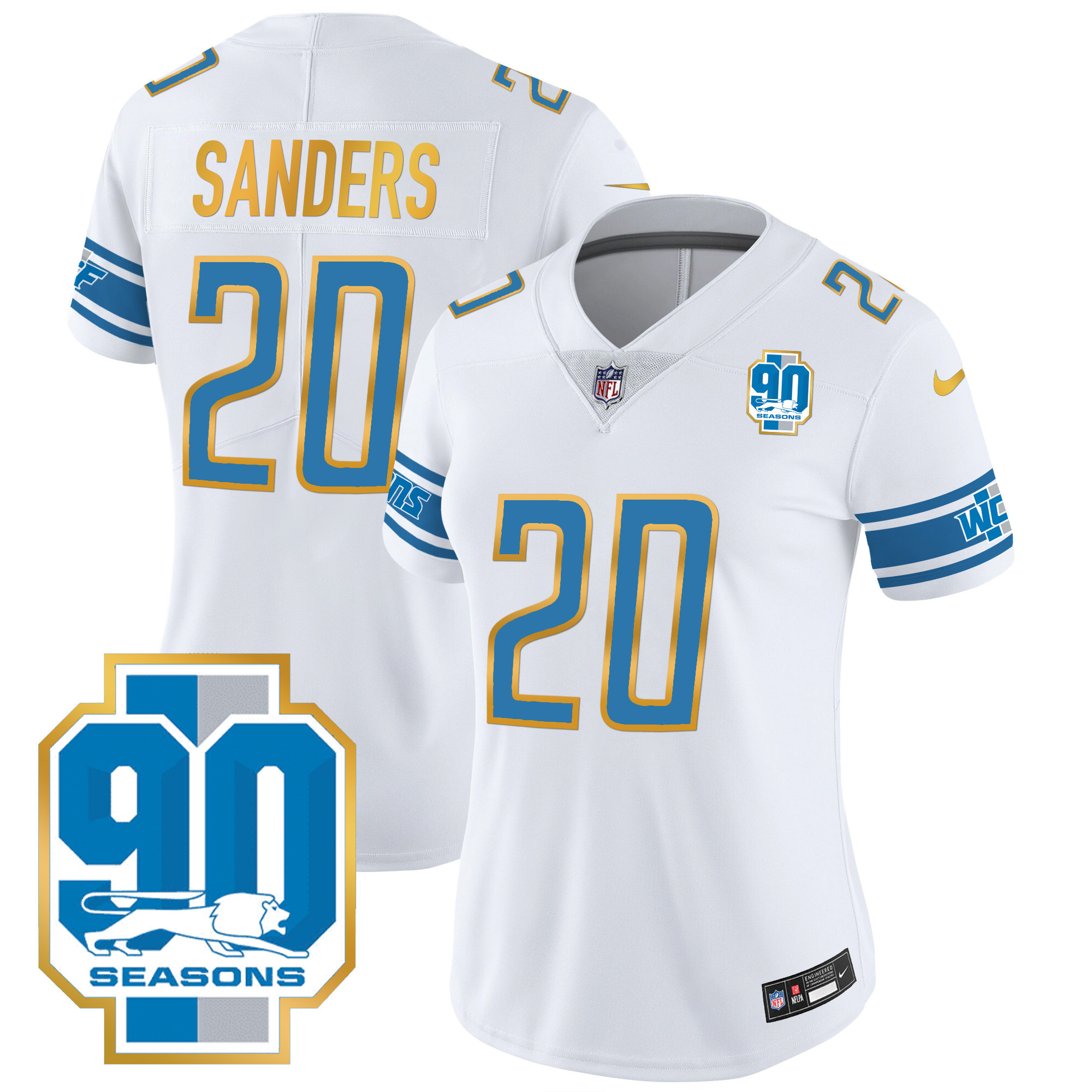 Women’s Detroit Lions 90th Year Patch Gold Trim Jersey – All Stitched