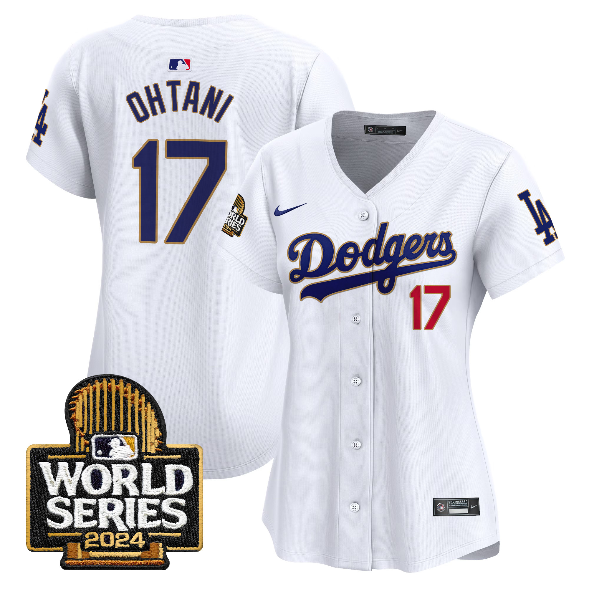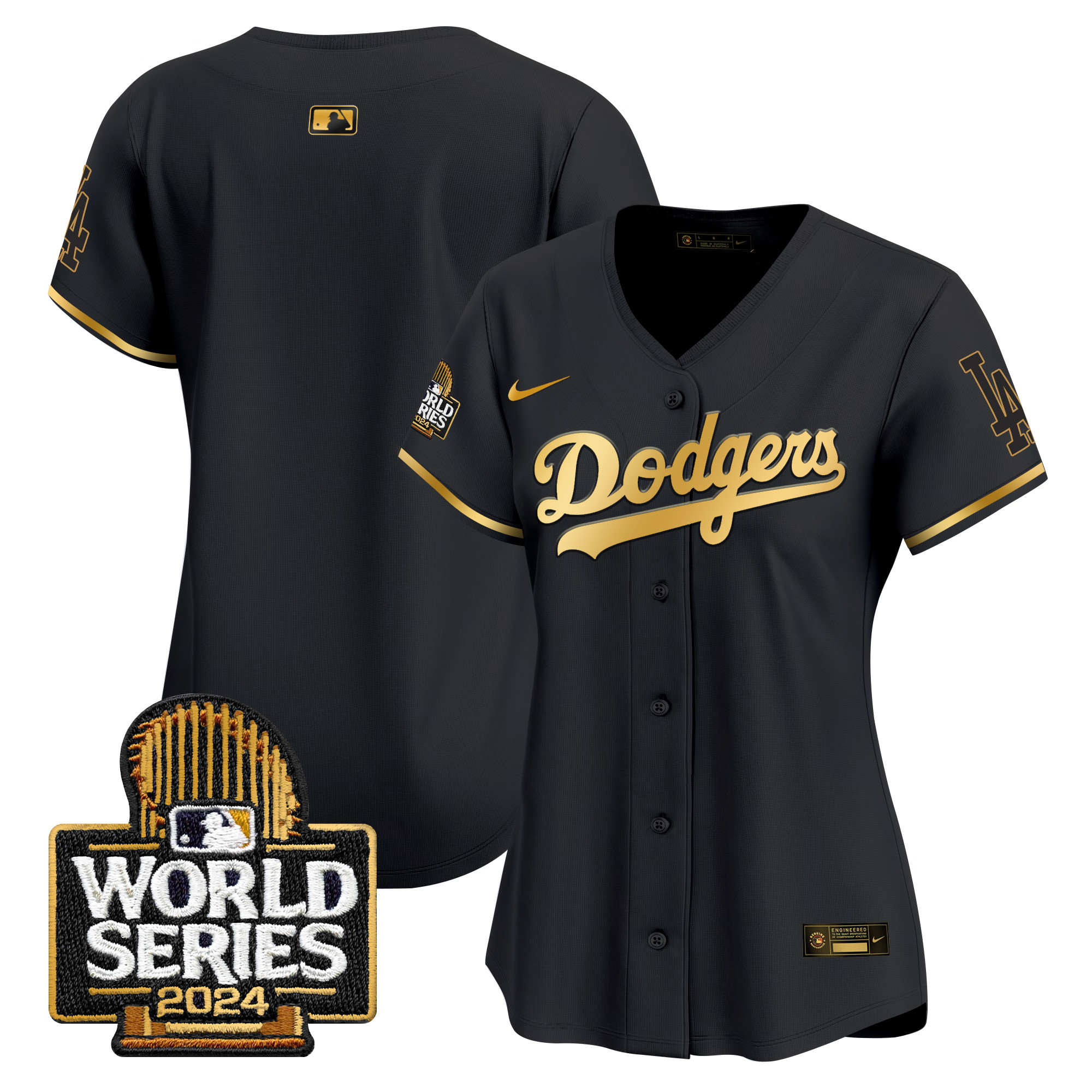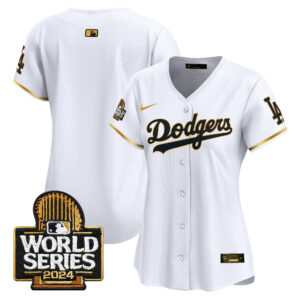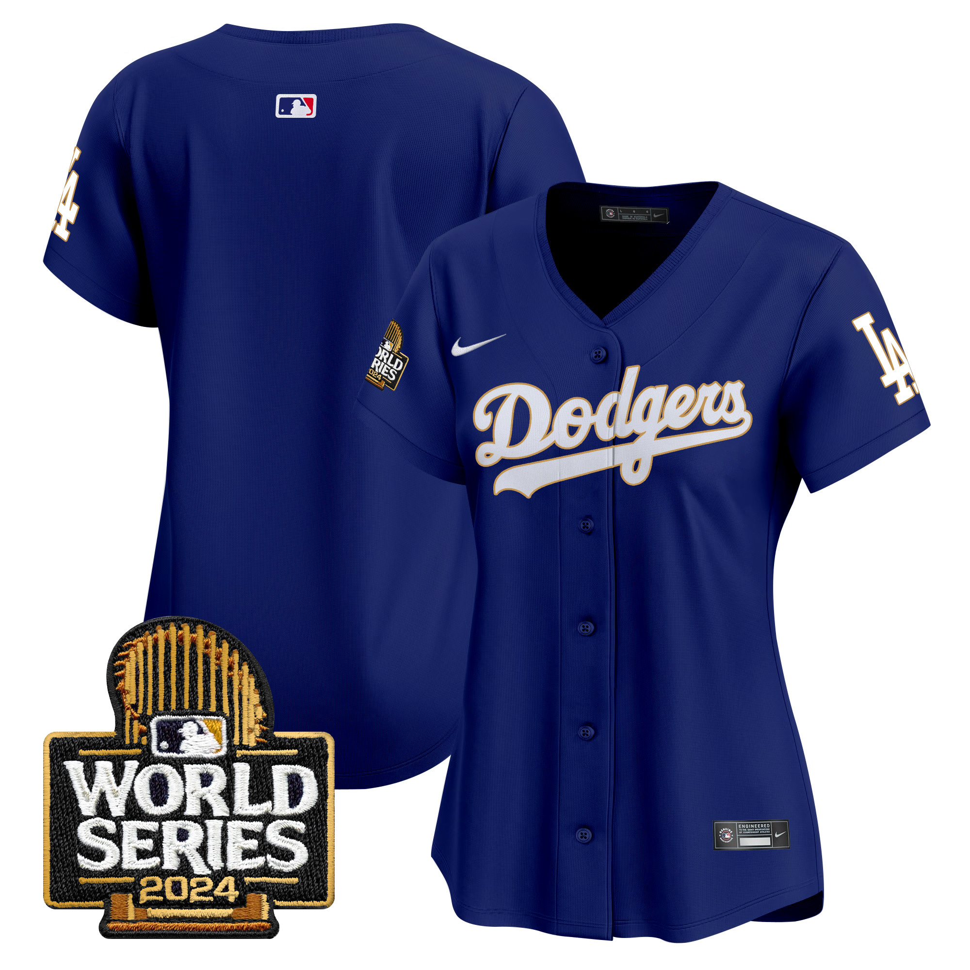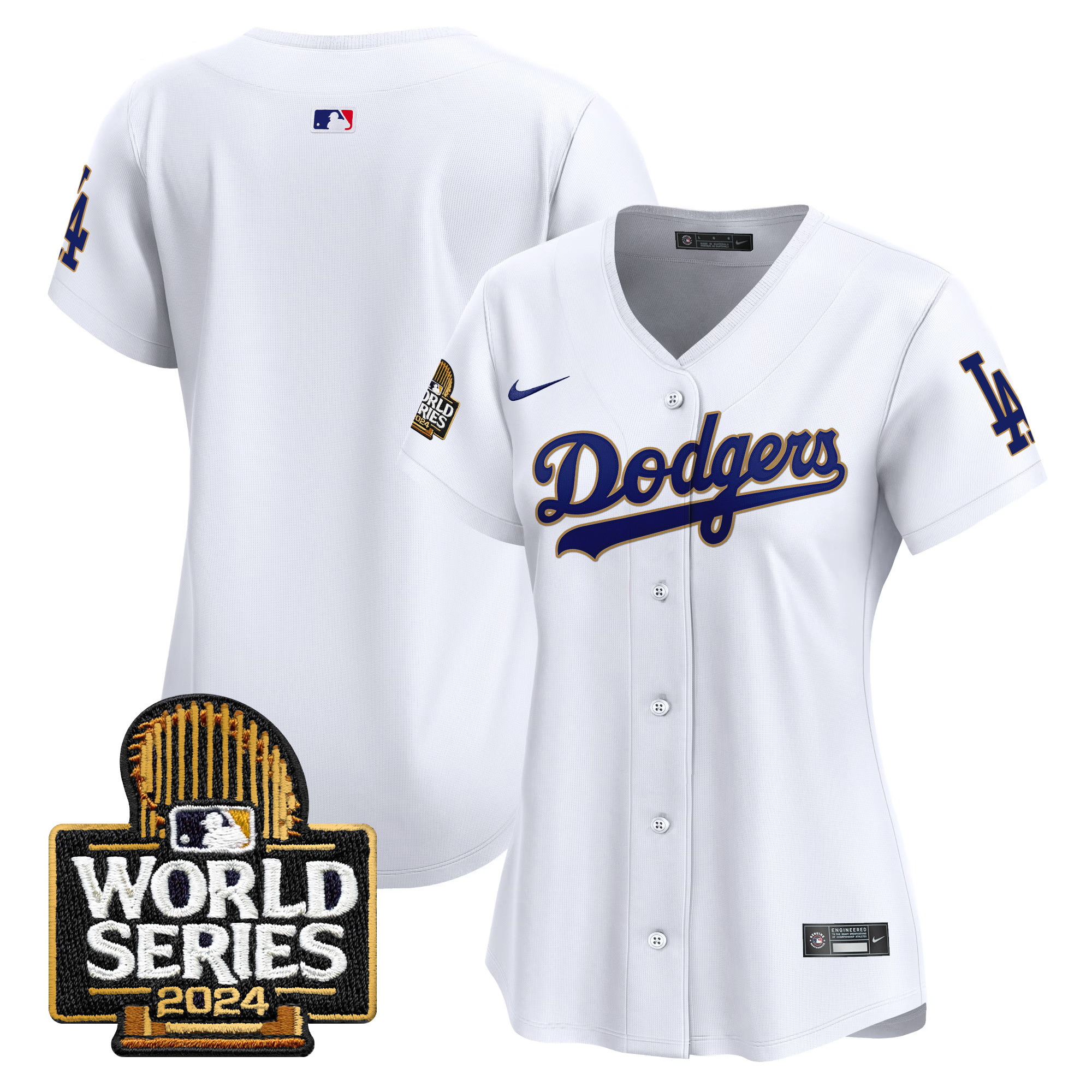 Women’s Dodgers 2024 World Series Gold Trim Vapor Premier Limited Jersey – All Stitched
