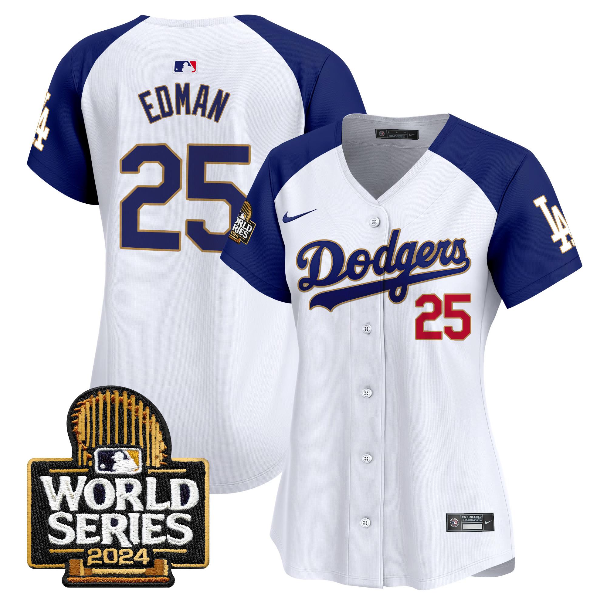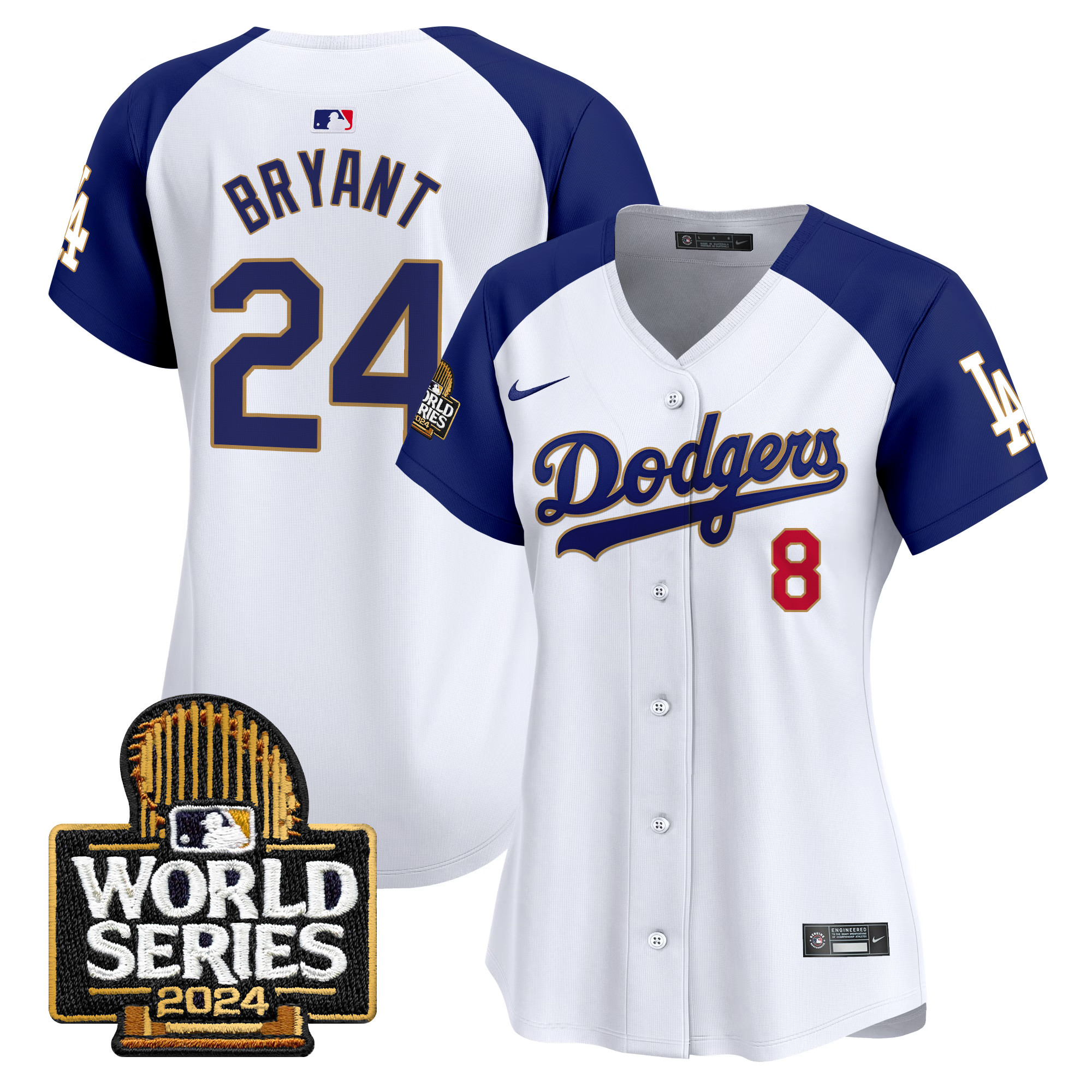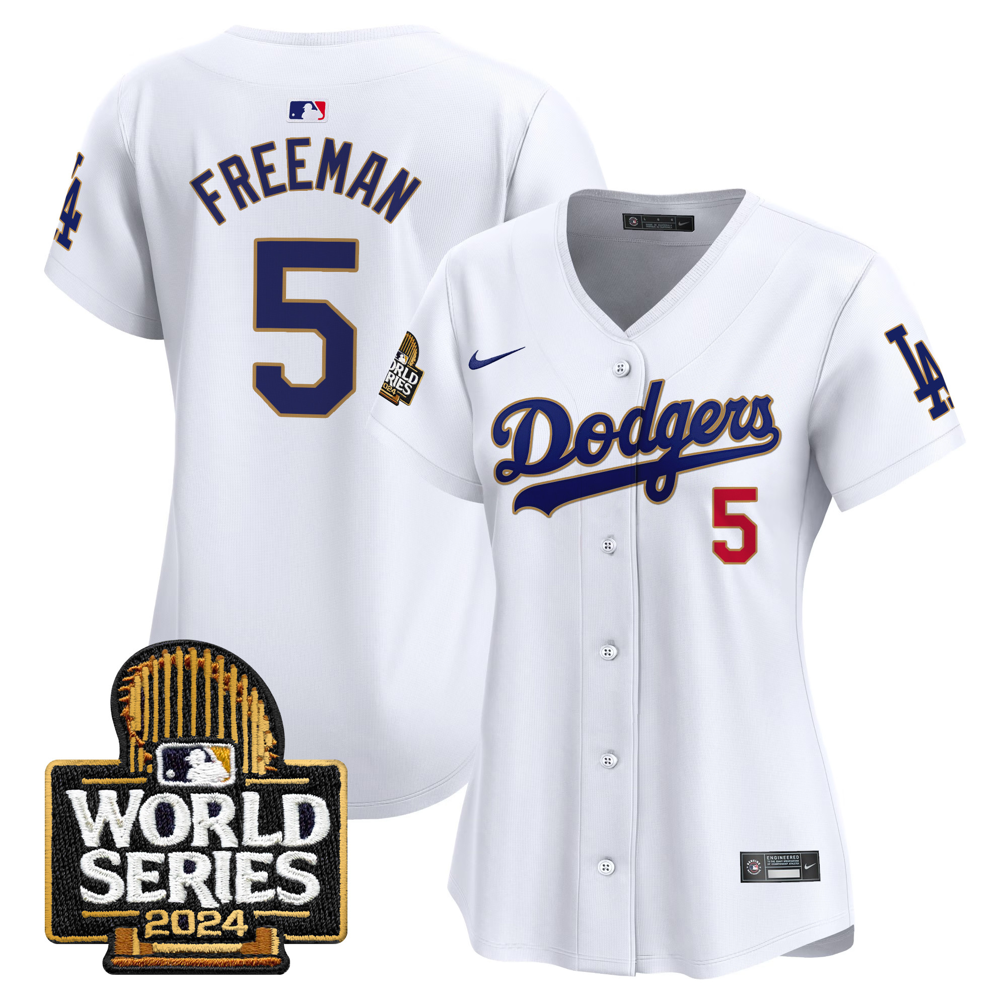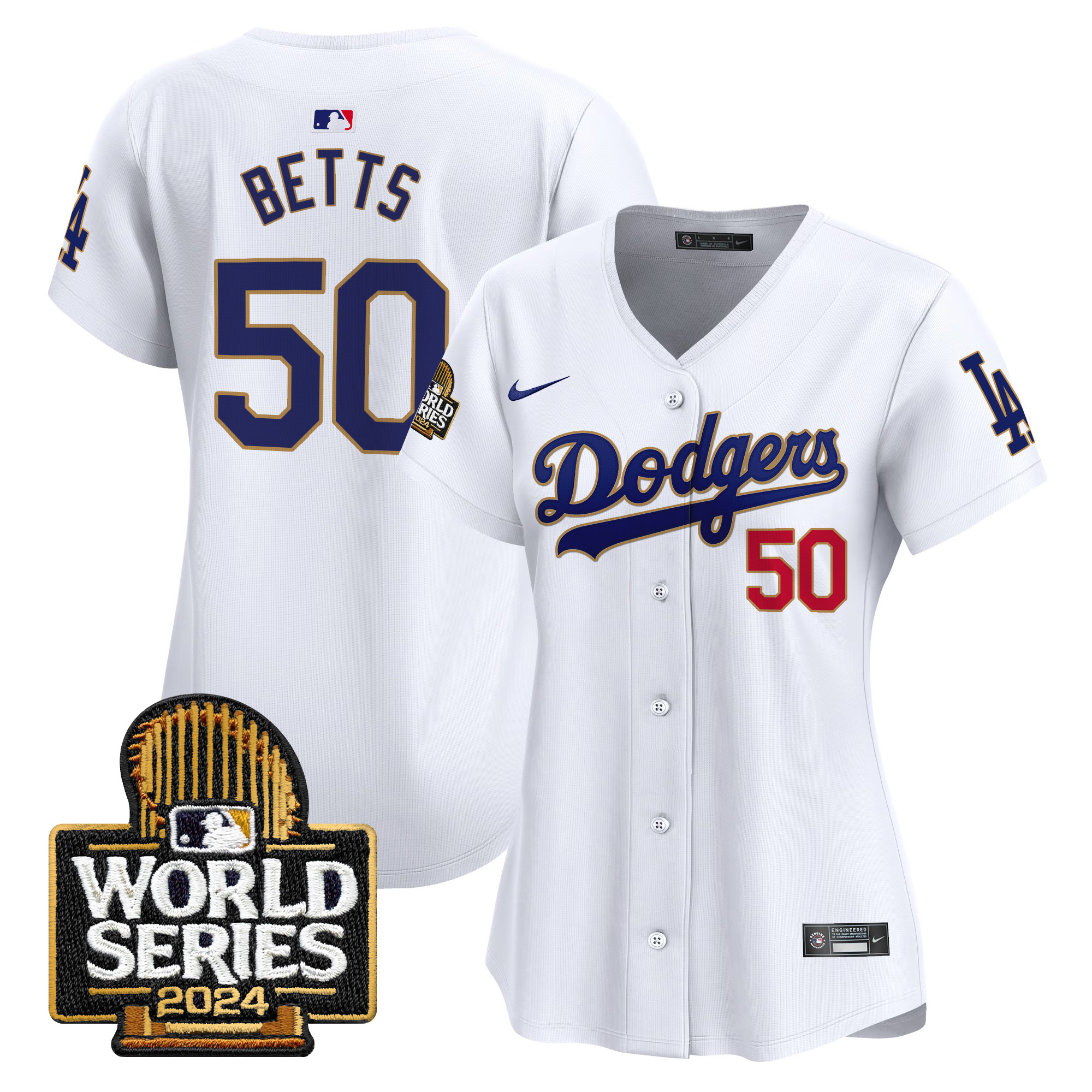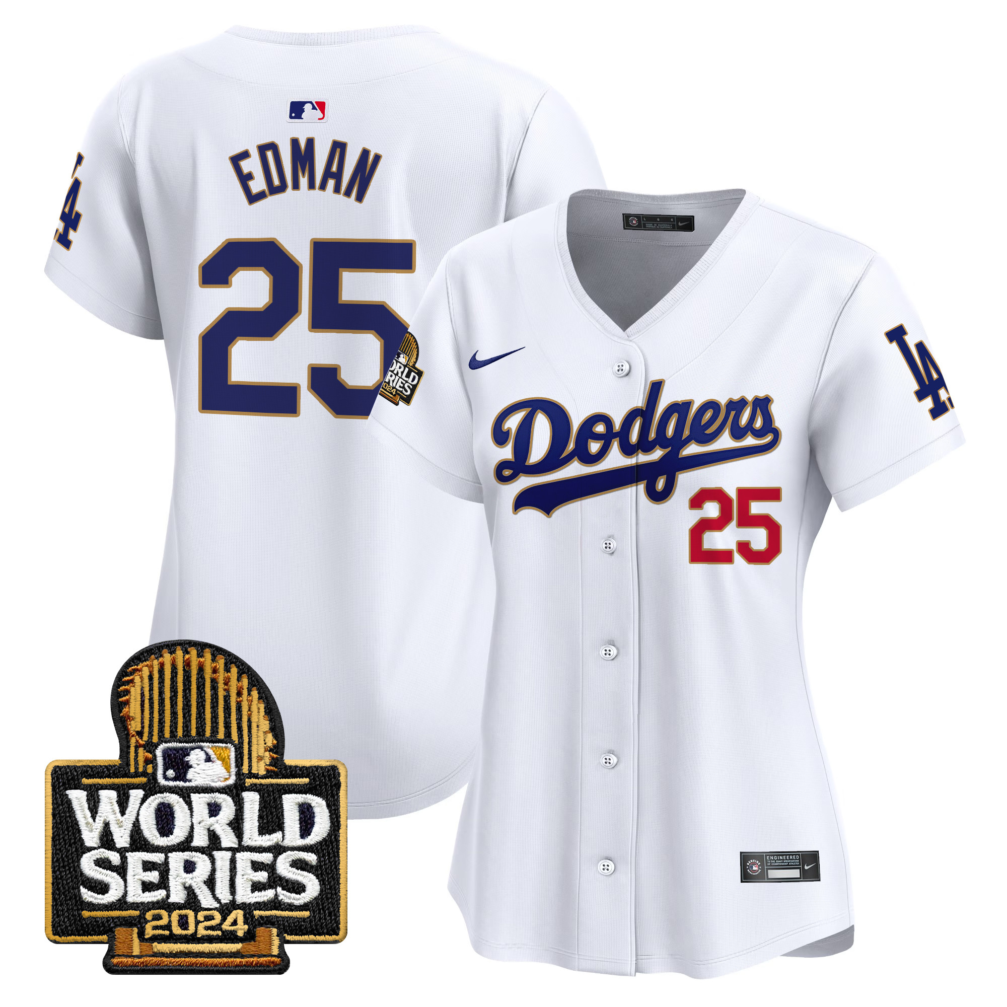 Women’s Dodgers 2024 World Series Gold Trim Vapor Premier Limited Jersey – All Stitched