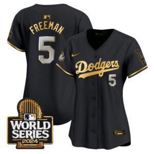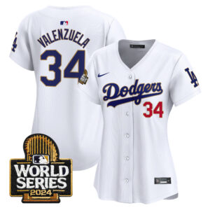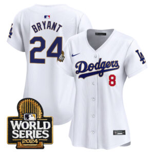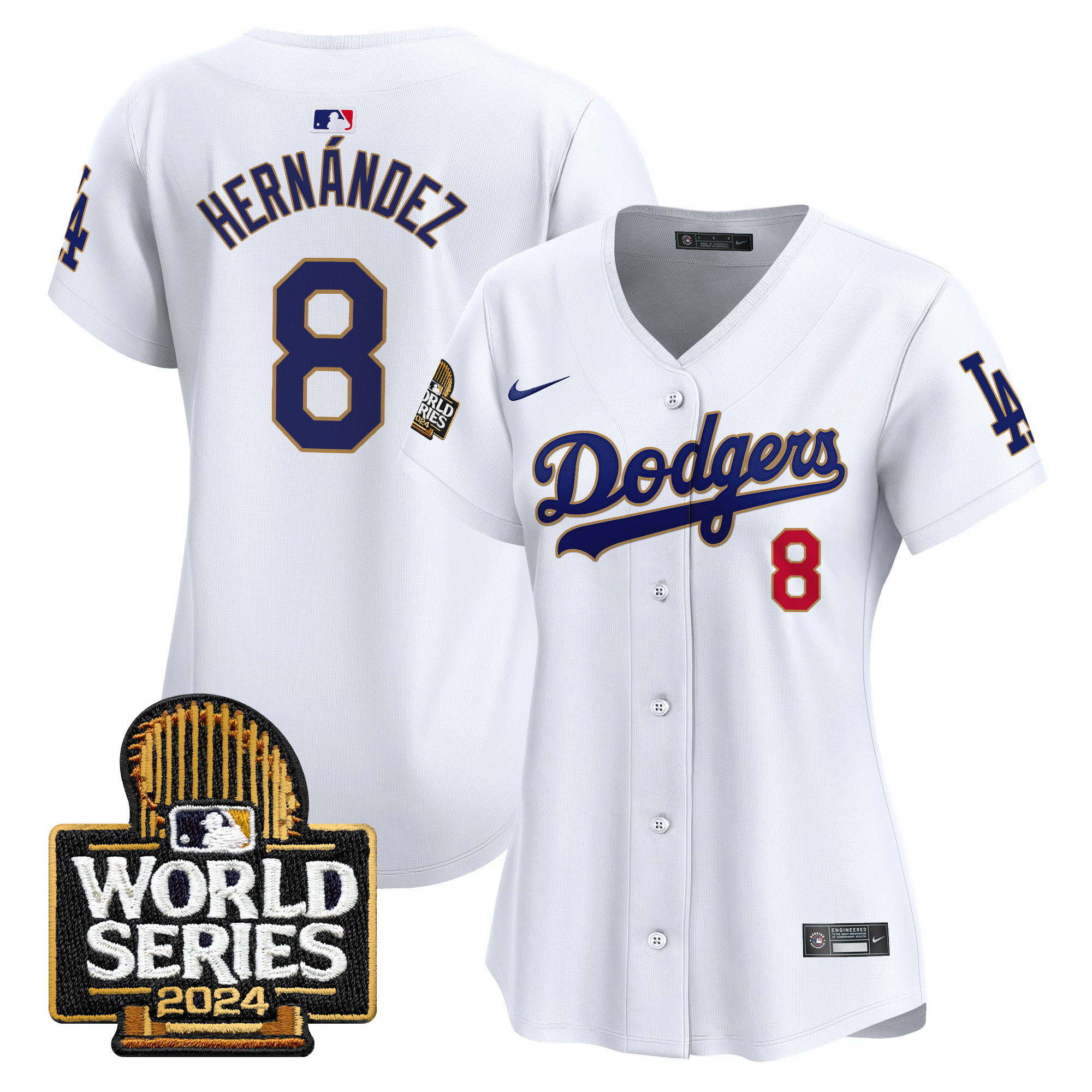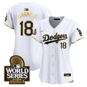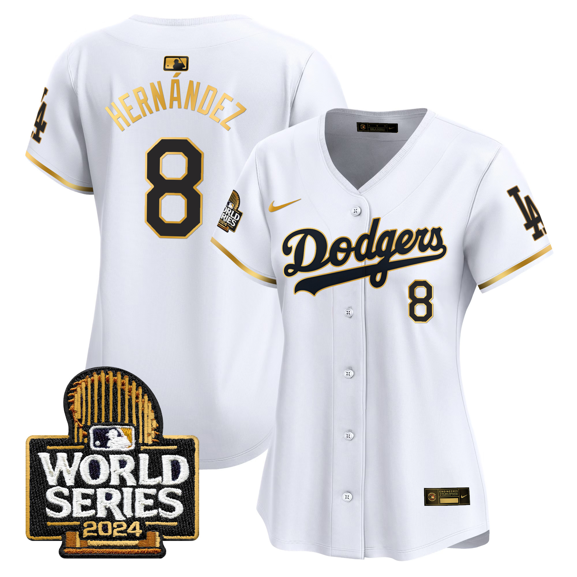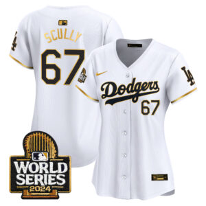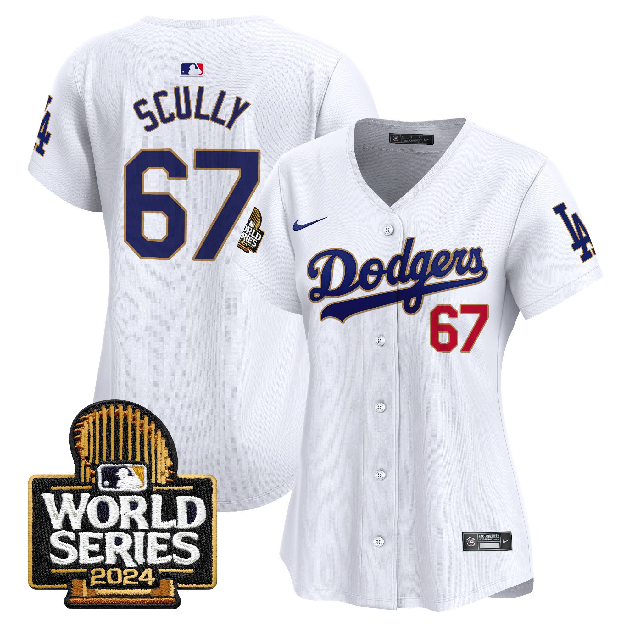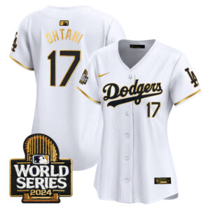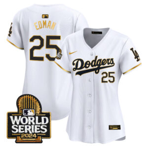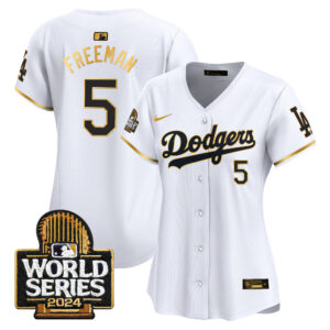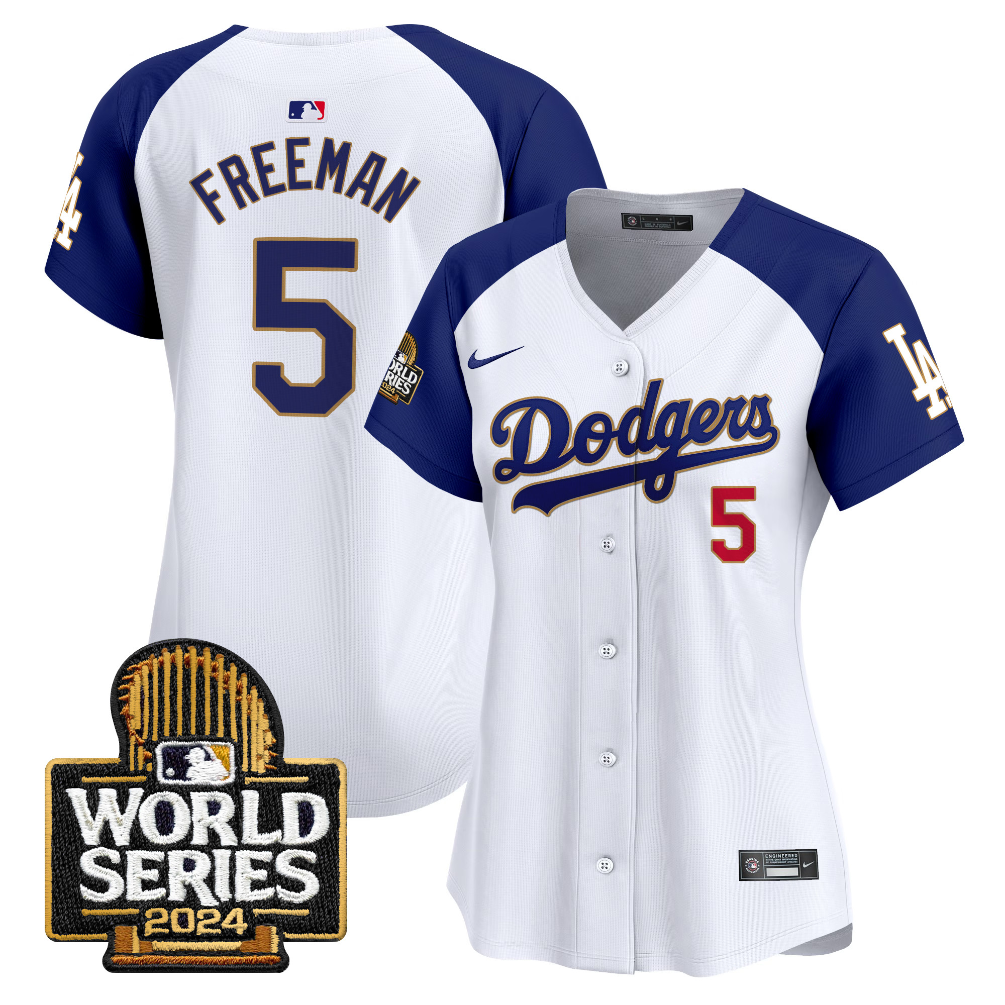 Women’s Dodgers 2024 World Series Gold Trim Vapor Premier Limited Jersey – All Stitched