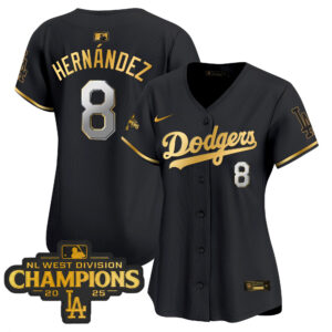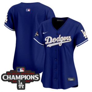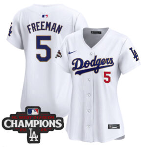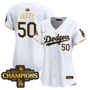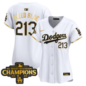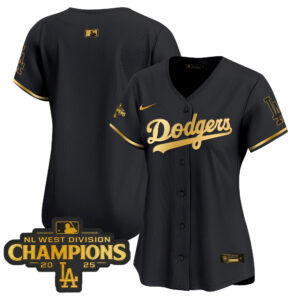 Women’s Dodgers 2025 NL West Division Champions Patch Gold Trim Vapor Premier Limited Jersey – All Stitched