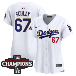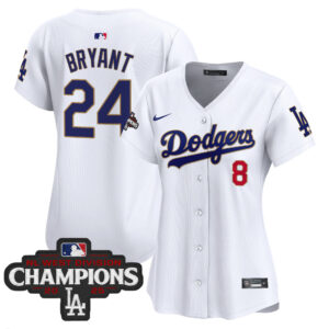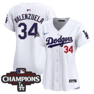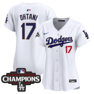 Women’s Dodgers 2025 World Series Gold Trim Vapor Premier Limited Jersey – All Stitched