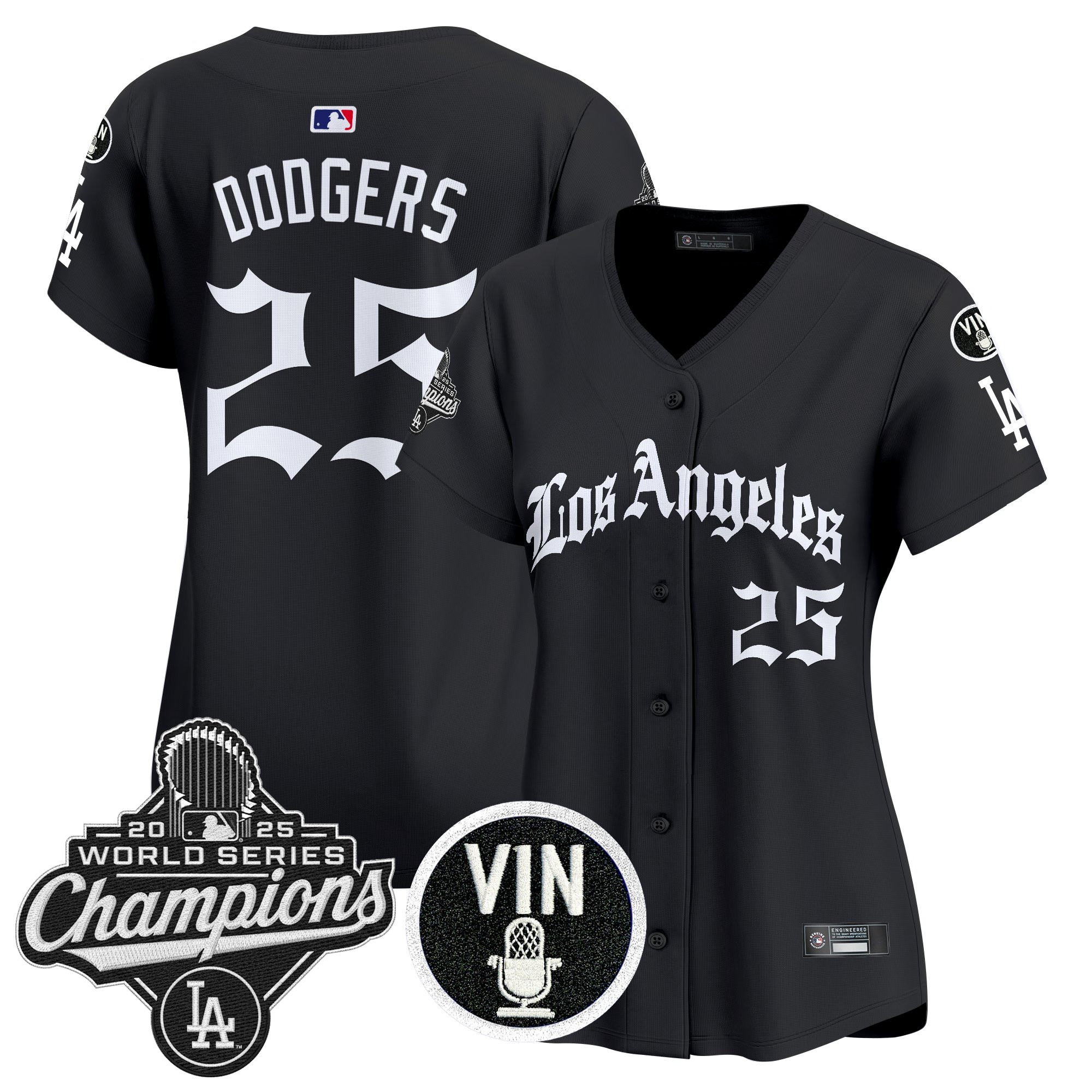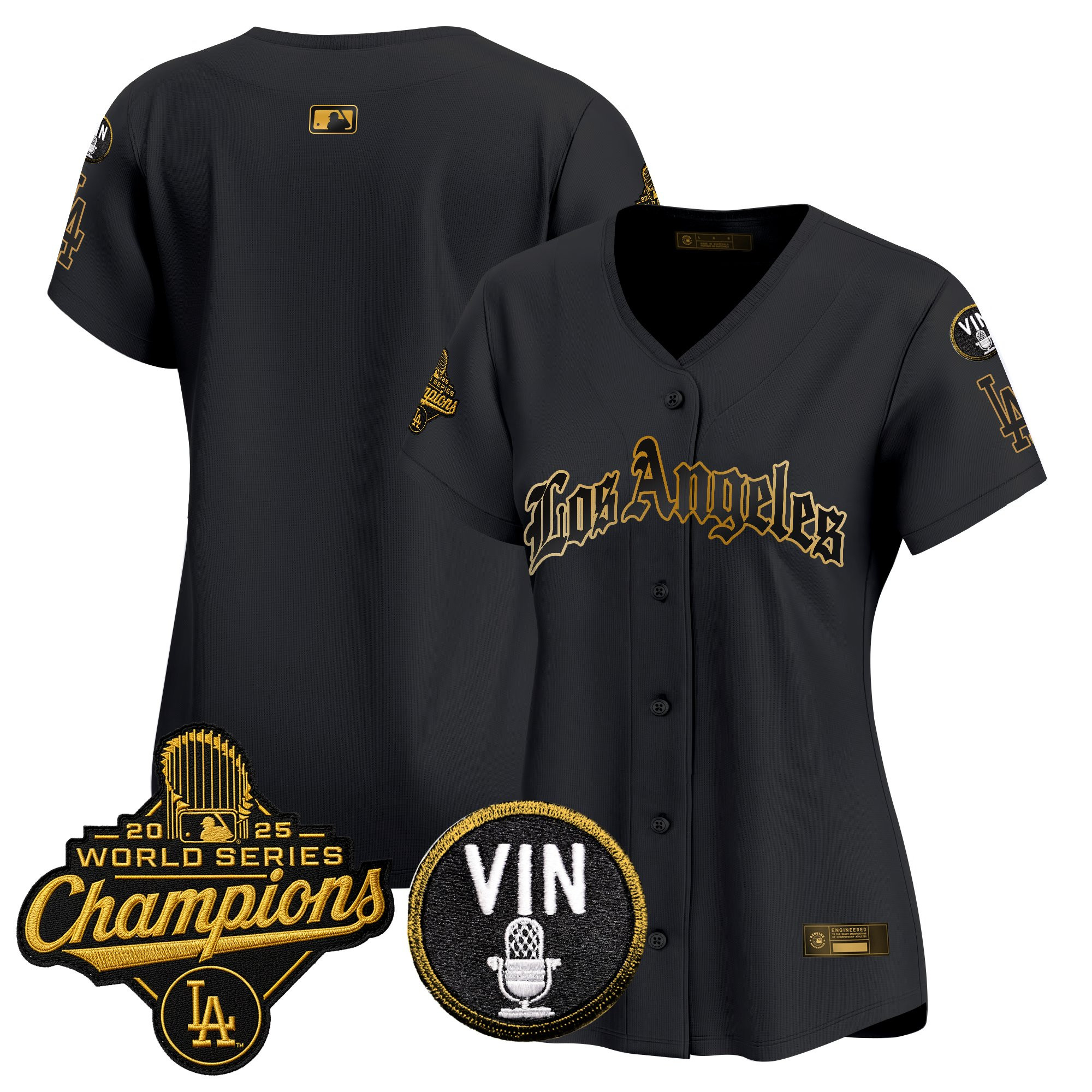 Women’s Dodgers 2025 World Series Champions Vapor Premier Limited Jersey – LA Gothic Edition – All Stitched