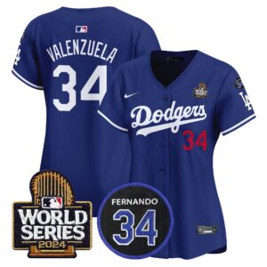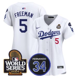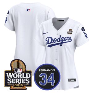 Women’s Dodgers Fernando Memorial & 2024 World Series Patch Vapor Premier Limited Jersey V2 – All Stitched