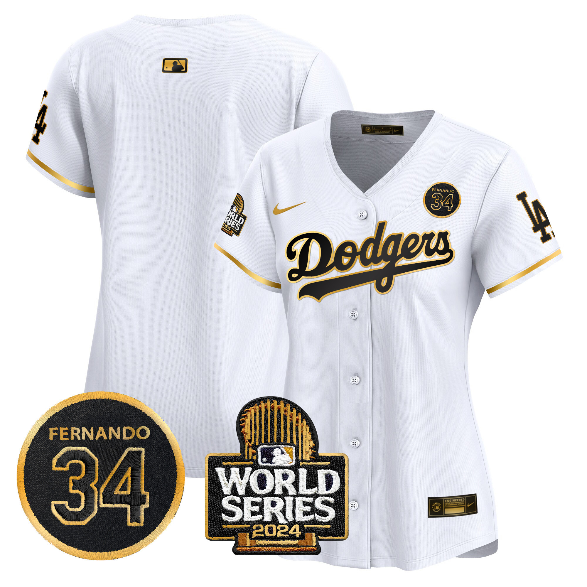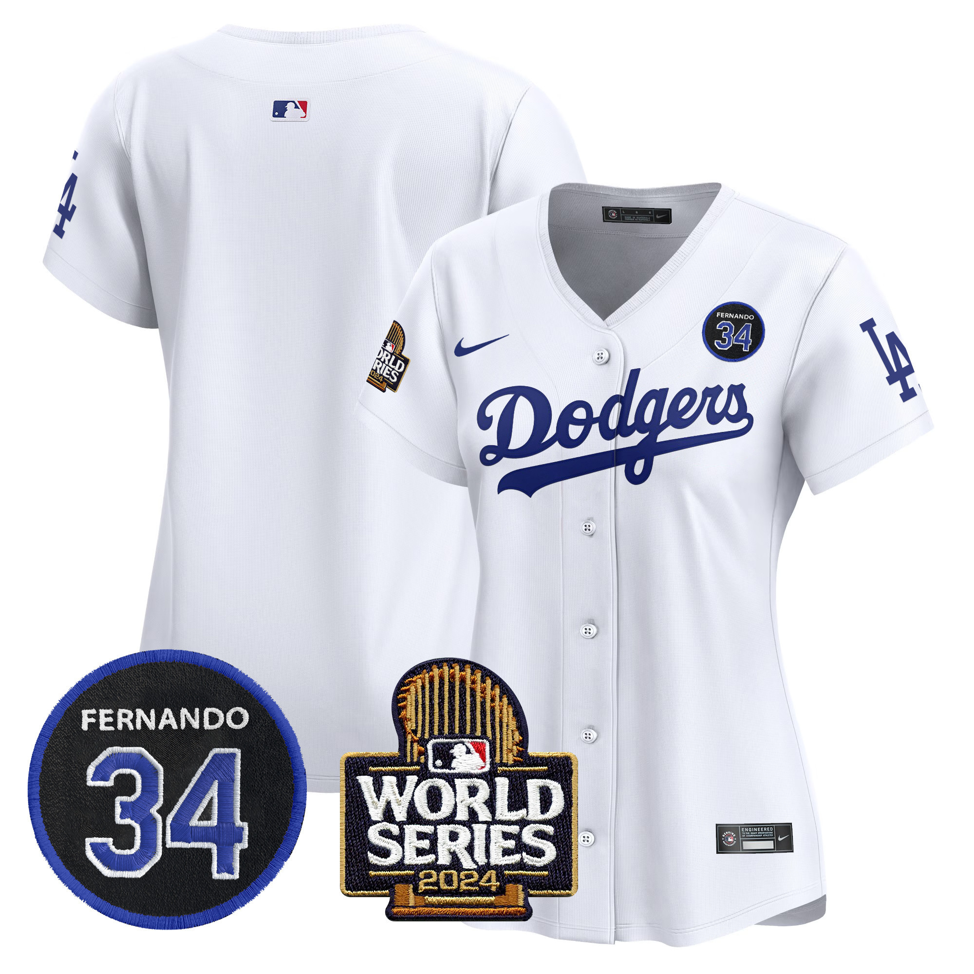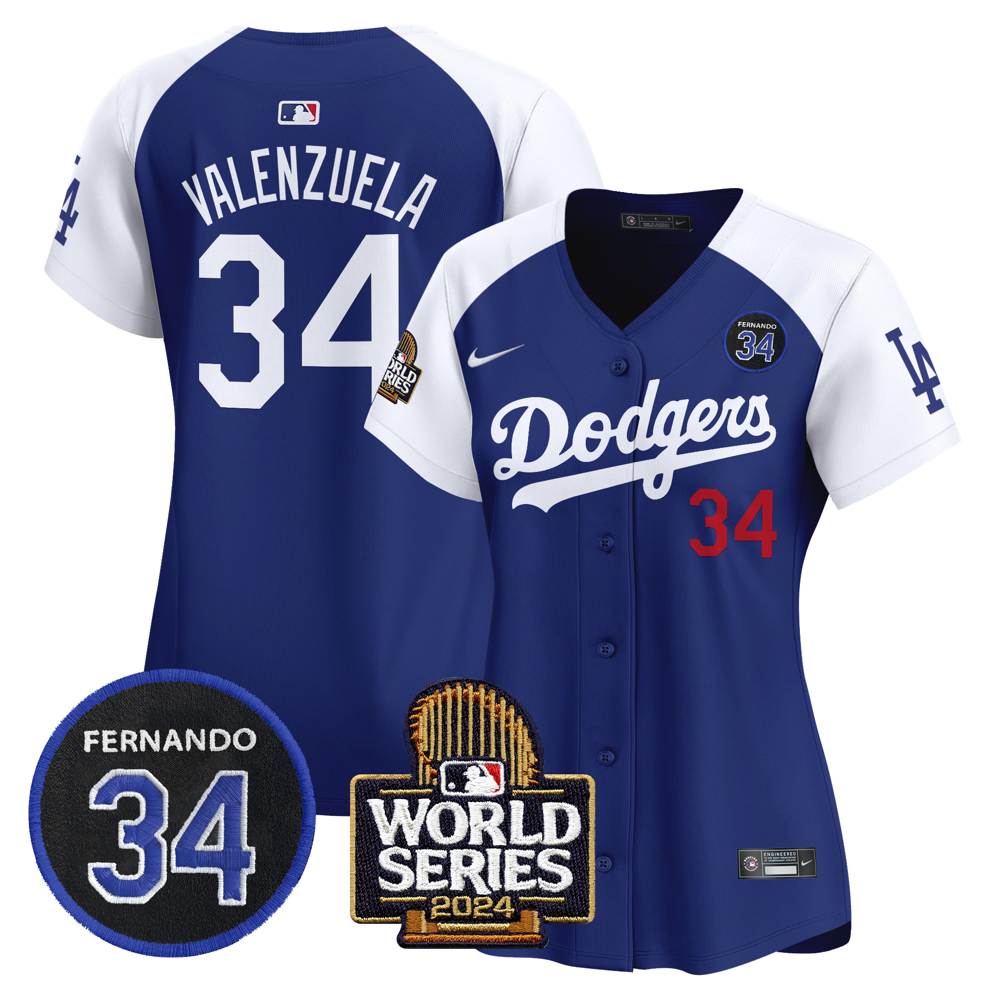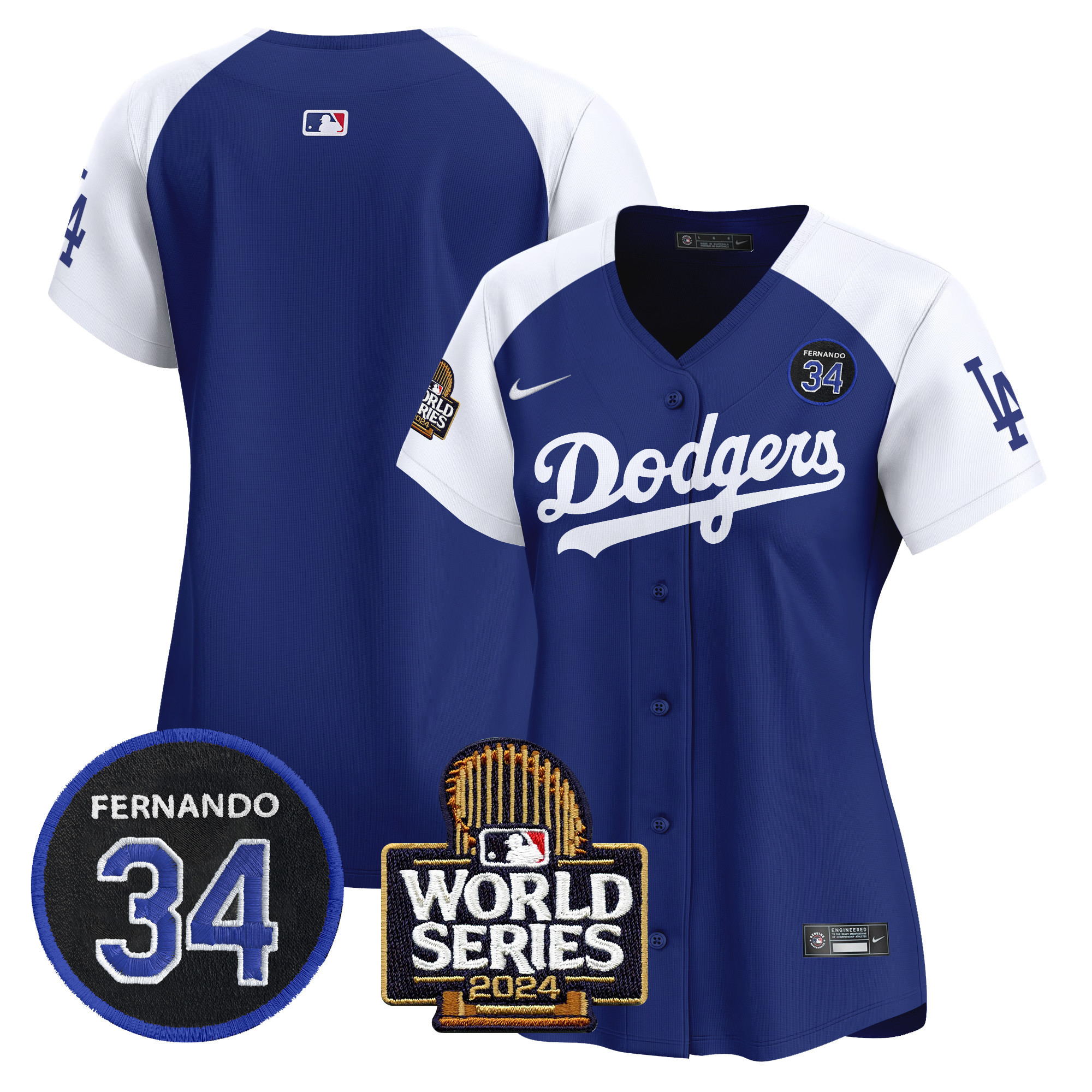 Women’s Dodgers Fernando Valenzuela & 2024 World Series Patch Vapor Premier Limited Jersey V2 – All Stitched