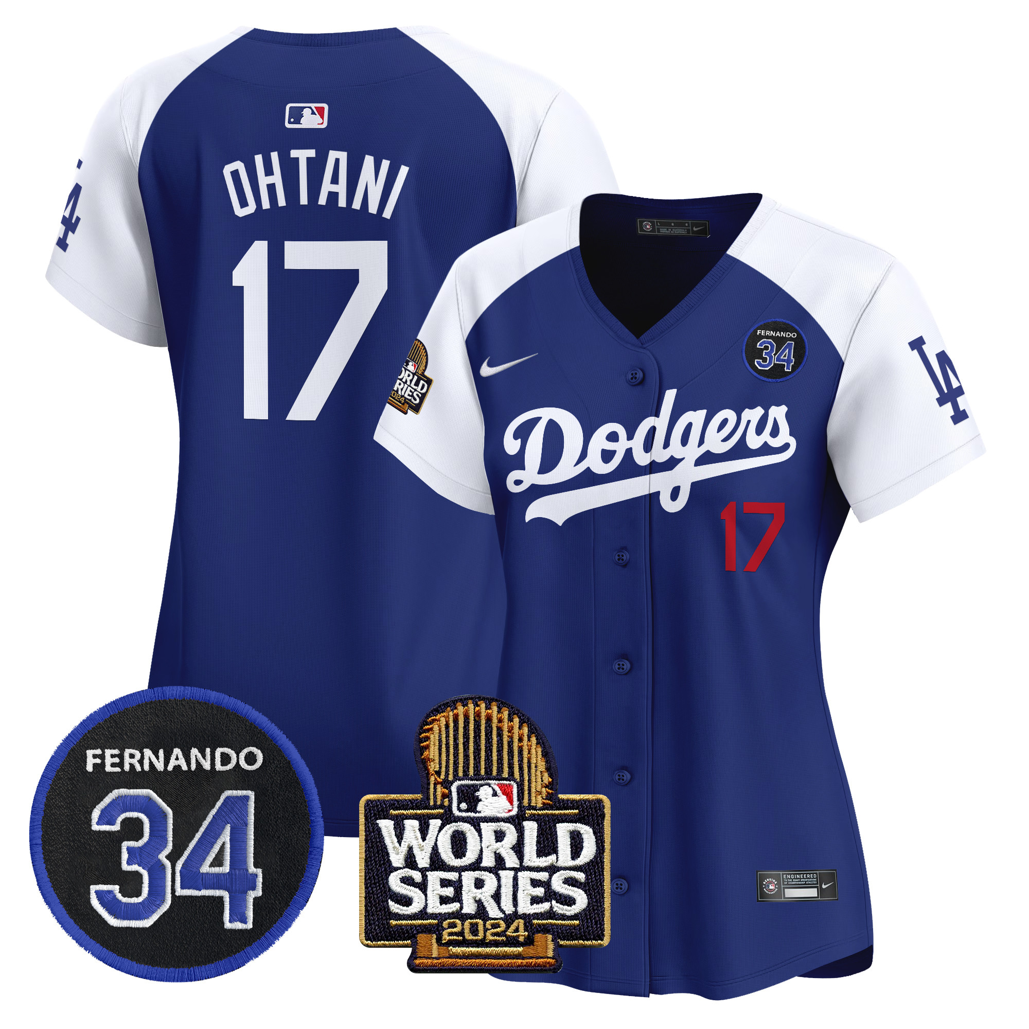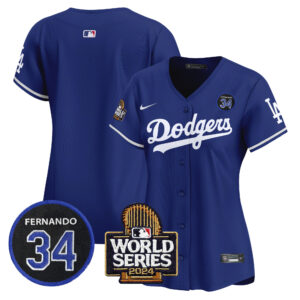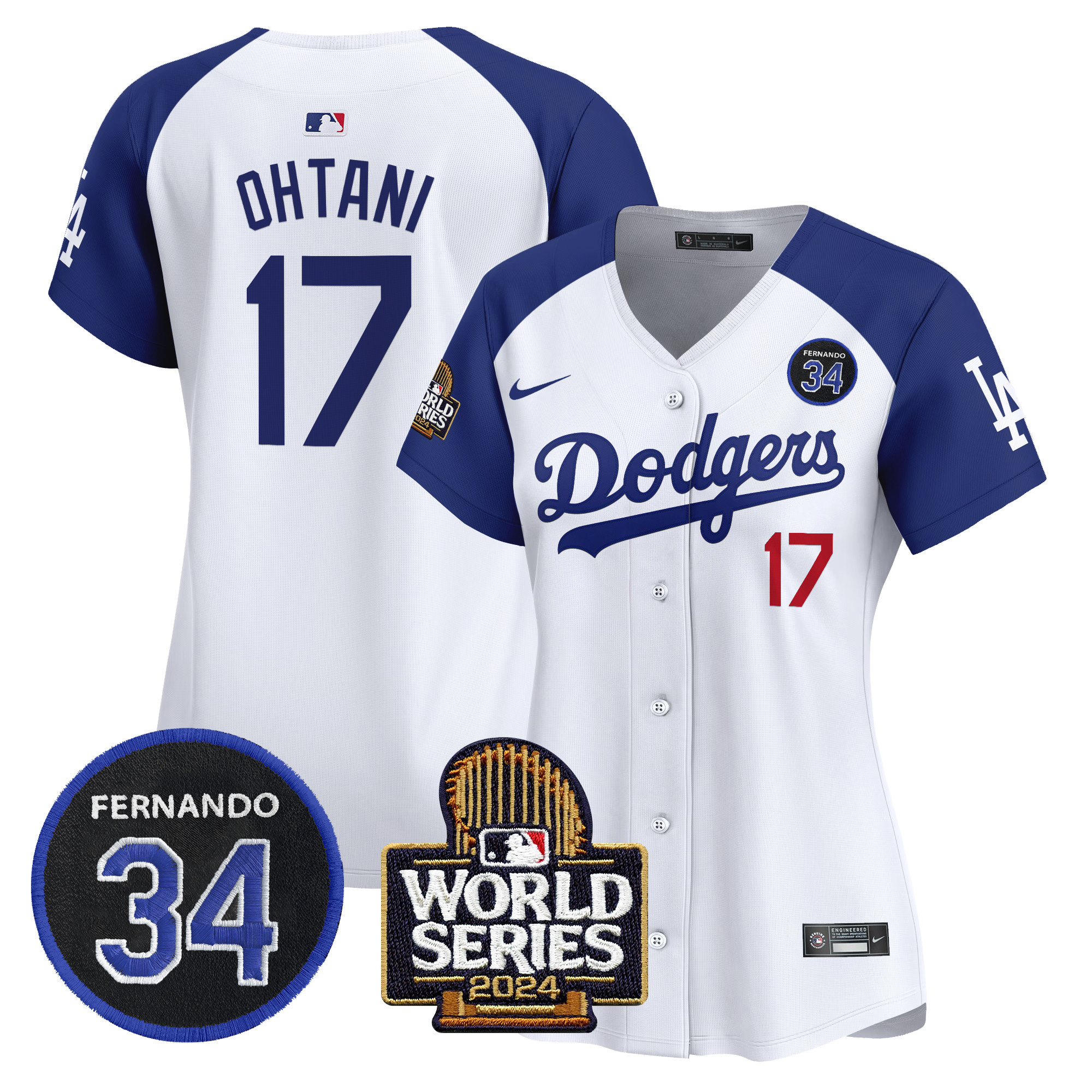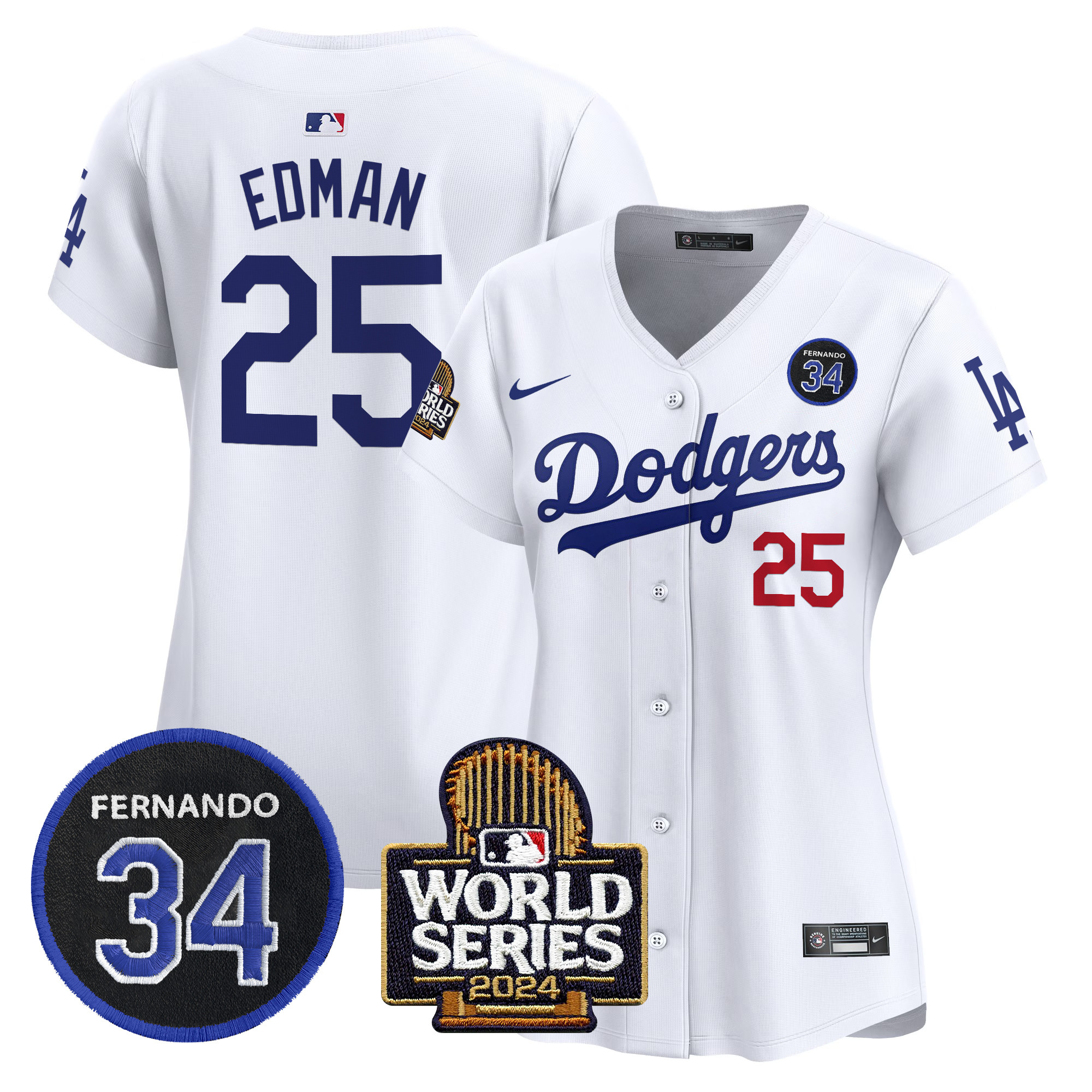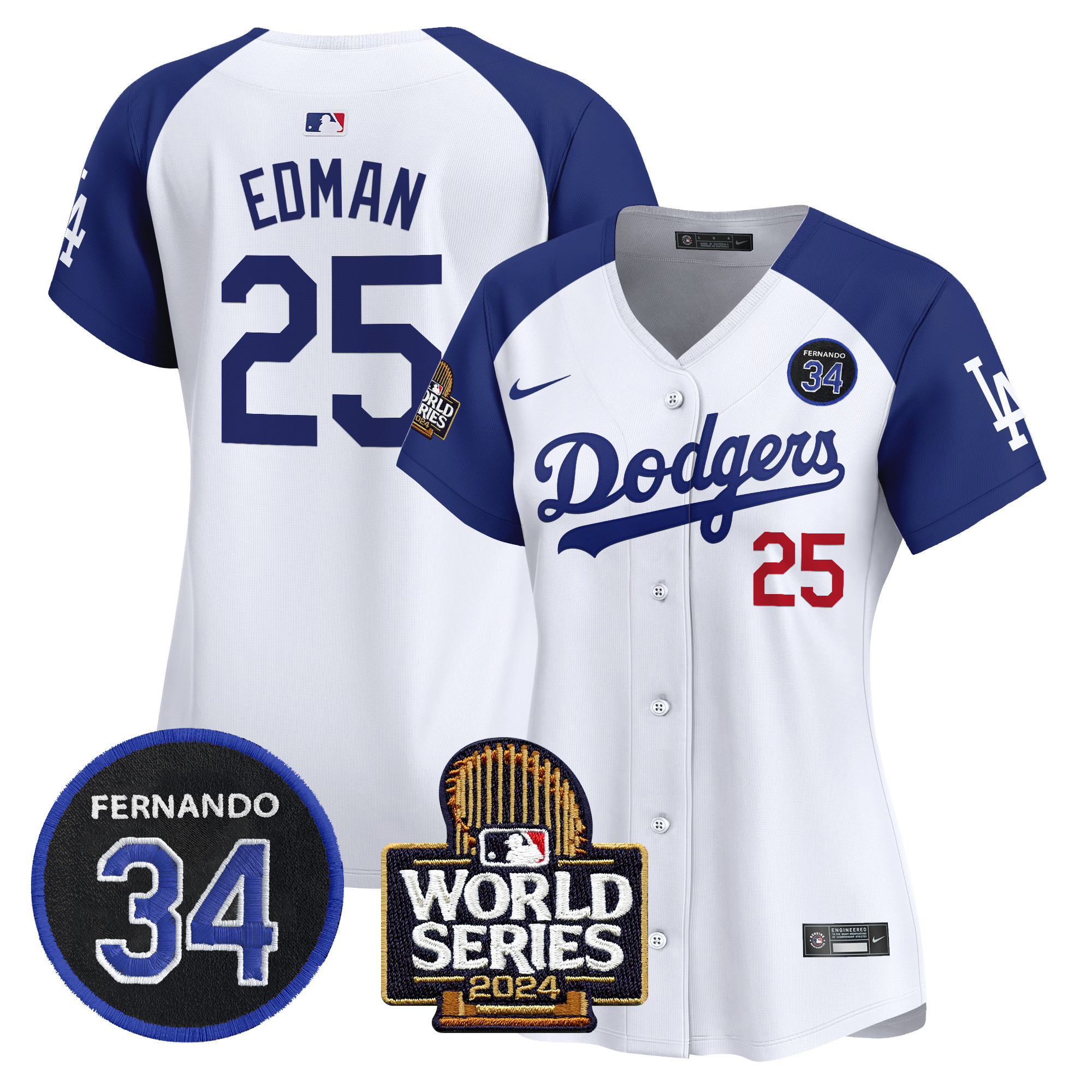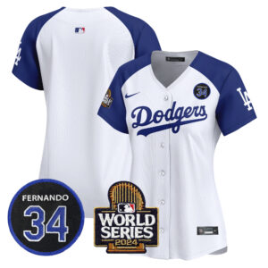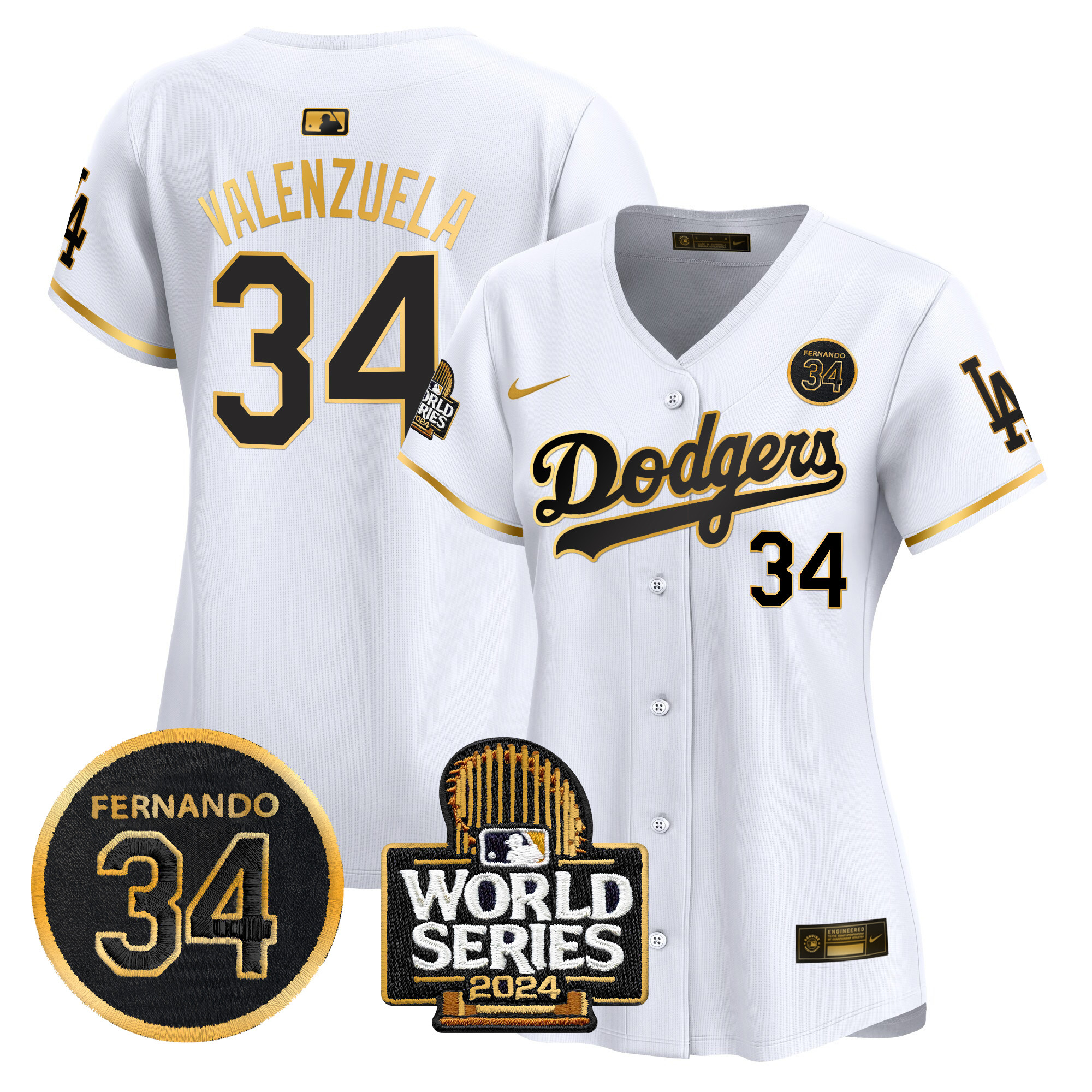 Women’s Dodgers Fernando Valenzuela & 2024 World Series Patch Vapor Premier Limited Jersey V2 – All Stitched