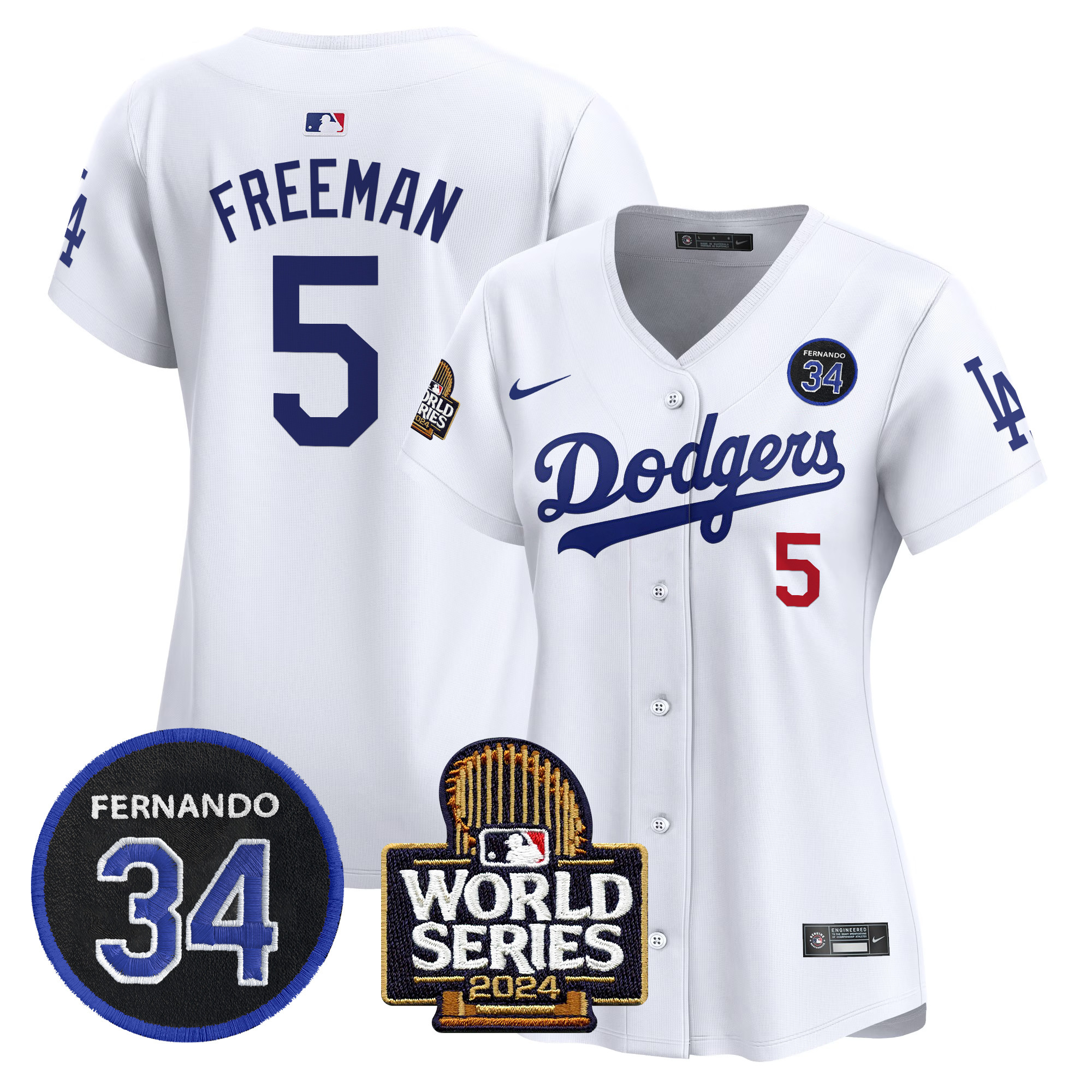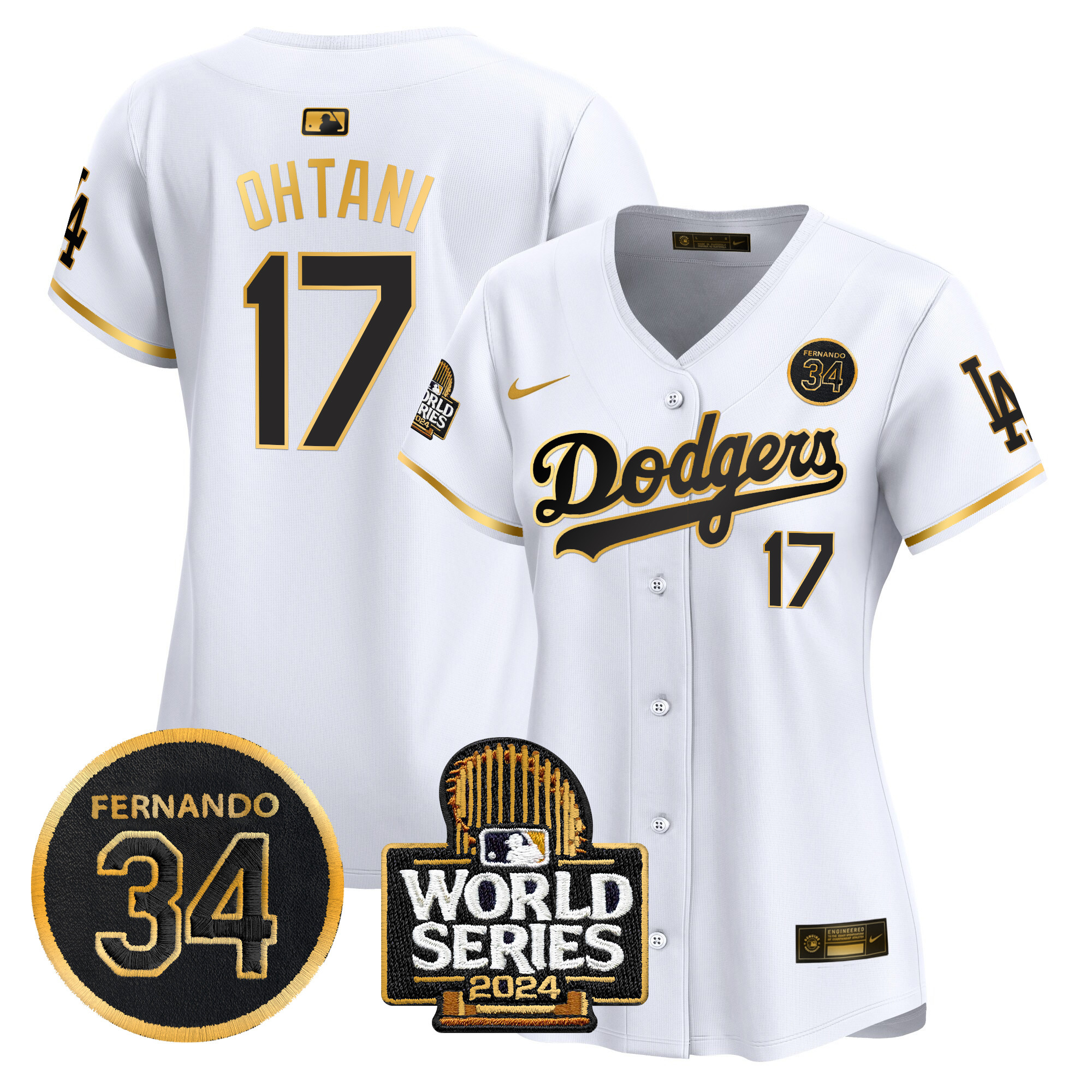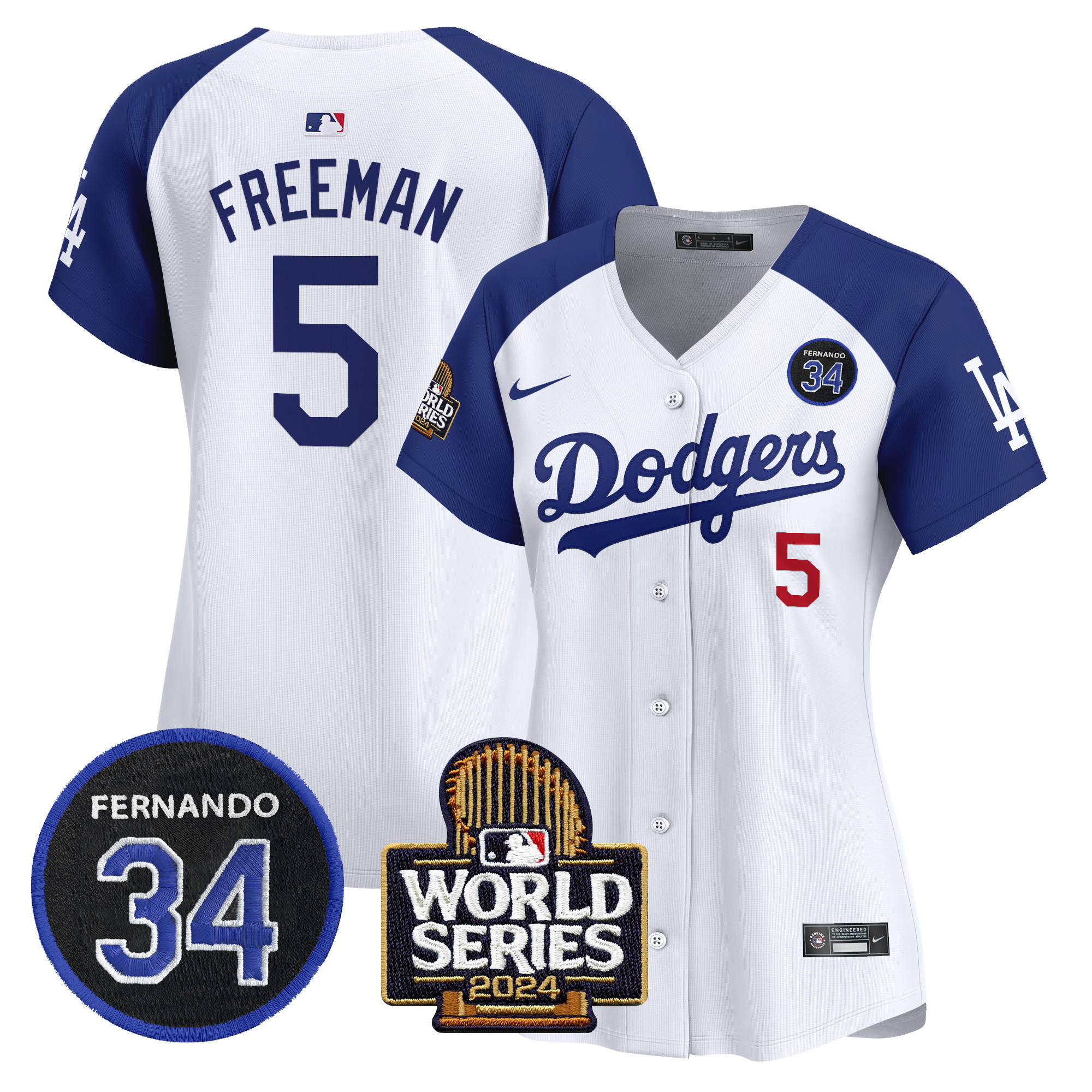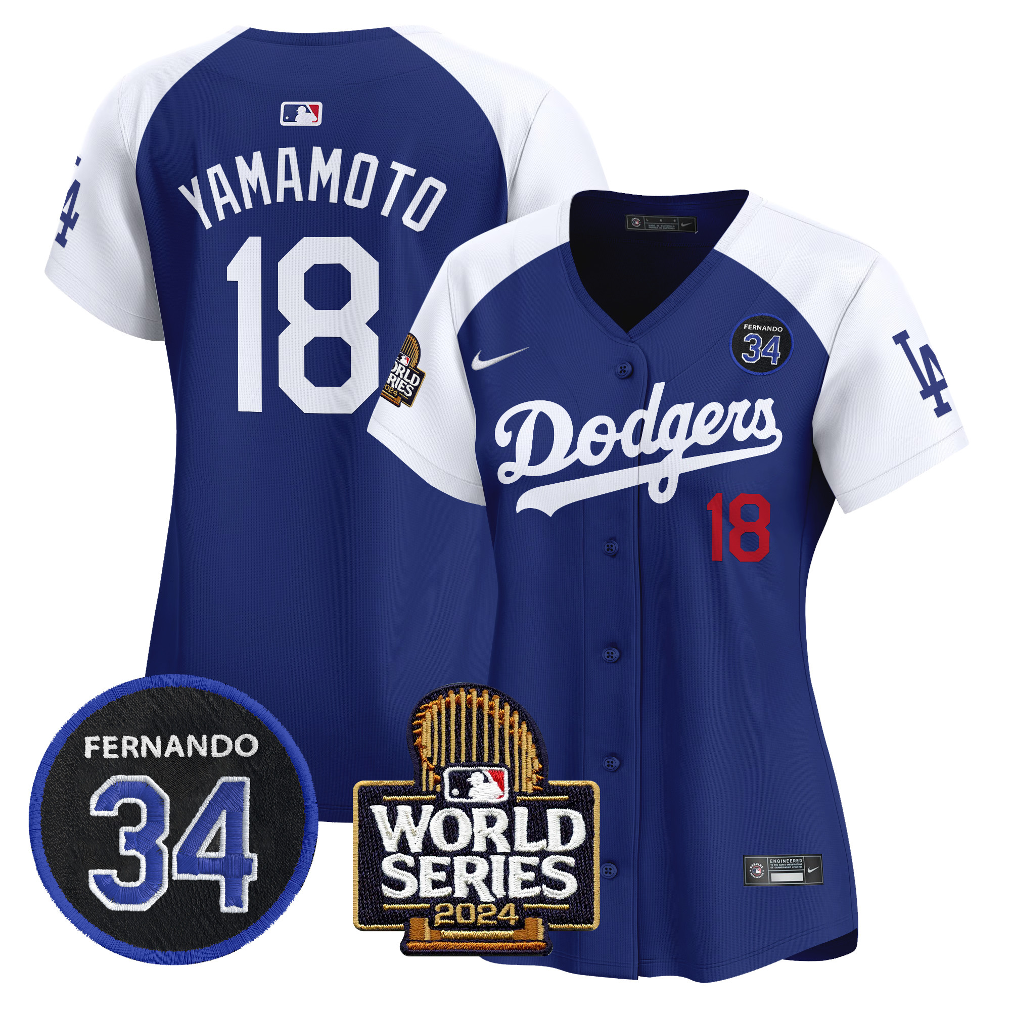 Women’s Dodgers Fernando Valenzuela & 2024 World Series Patch Vapor Premier Limited Jersey V2 – All Stitched