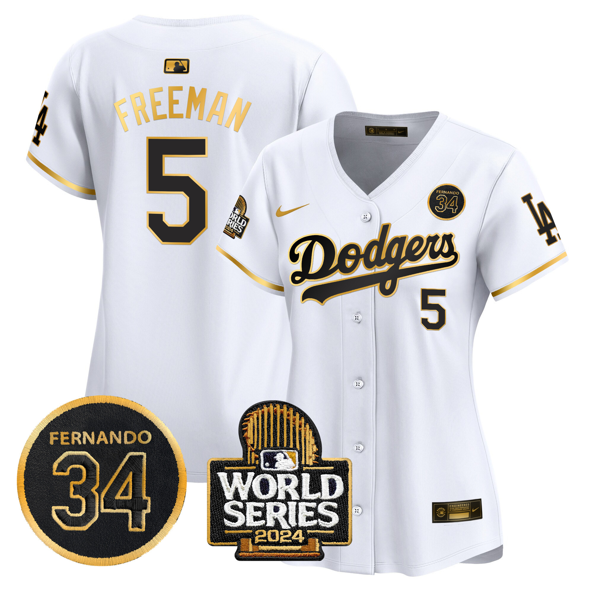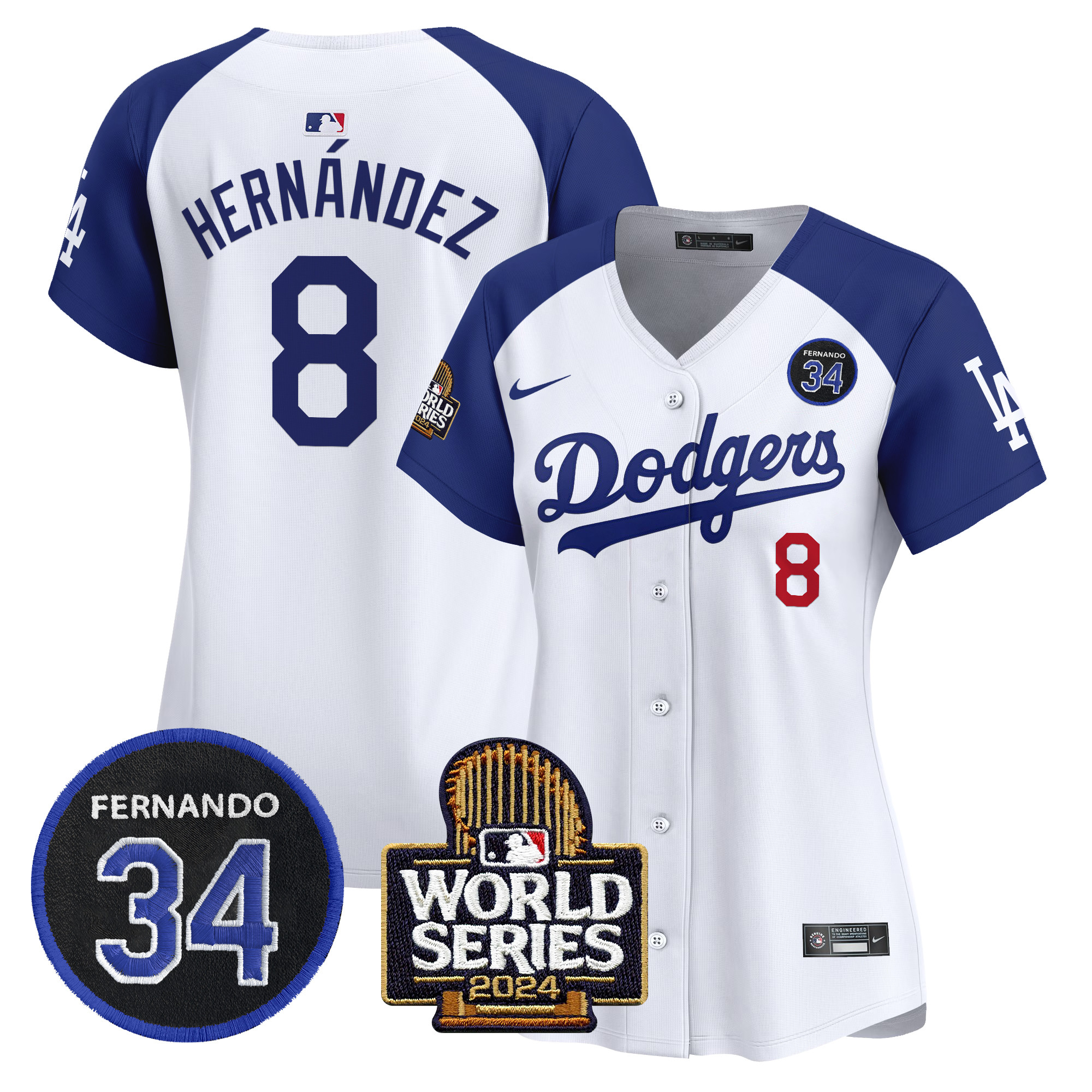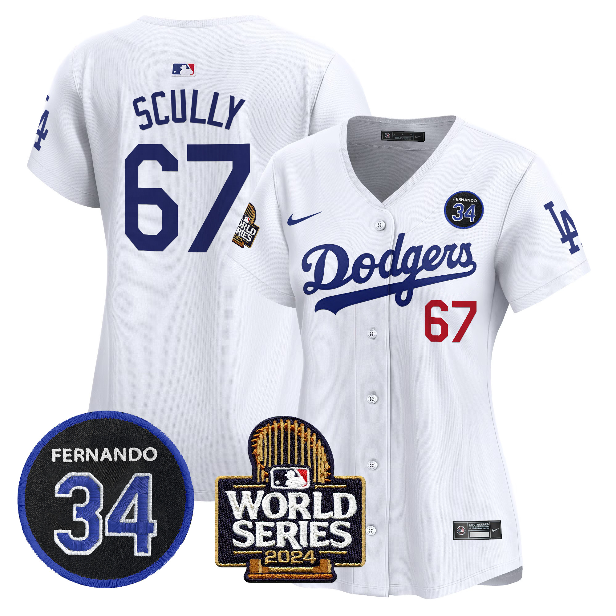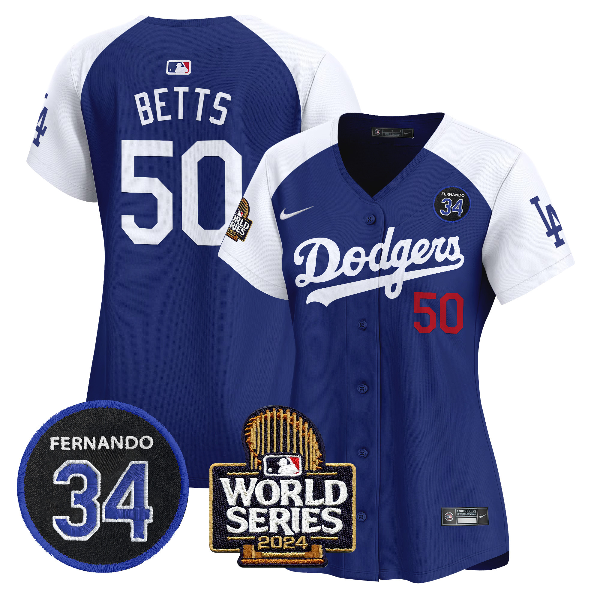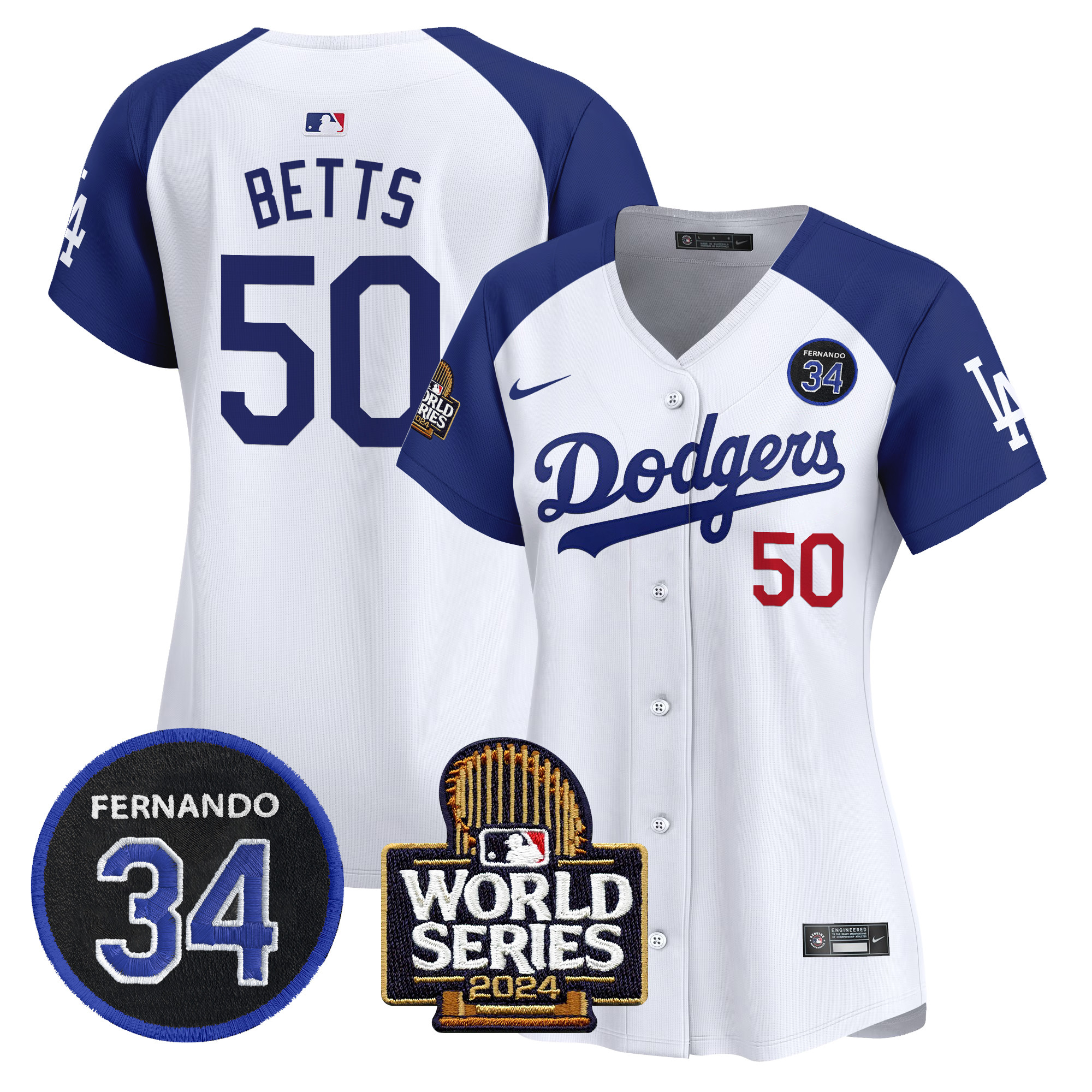 Women’s Dodgers Fernando Valenzuela & 2024 World Series Patch Vapor Premier Limited Jersey V2 – All Stitched