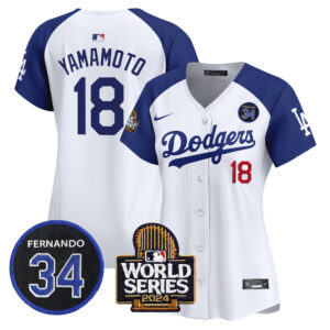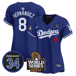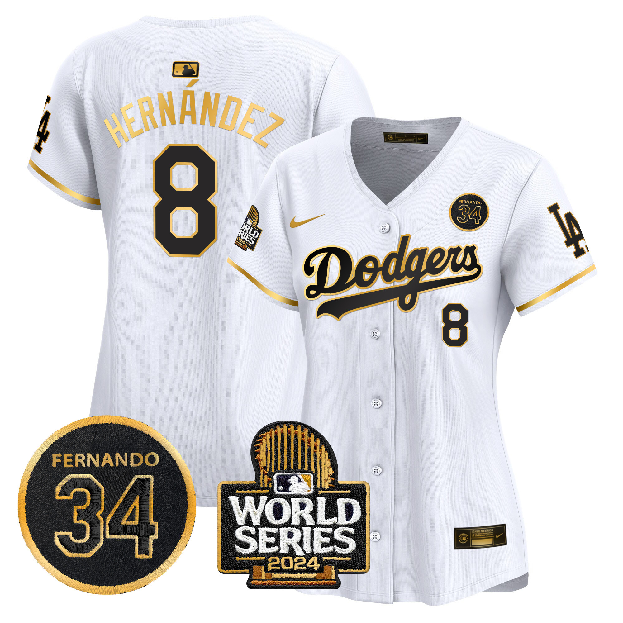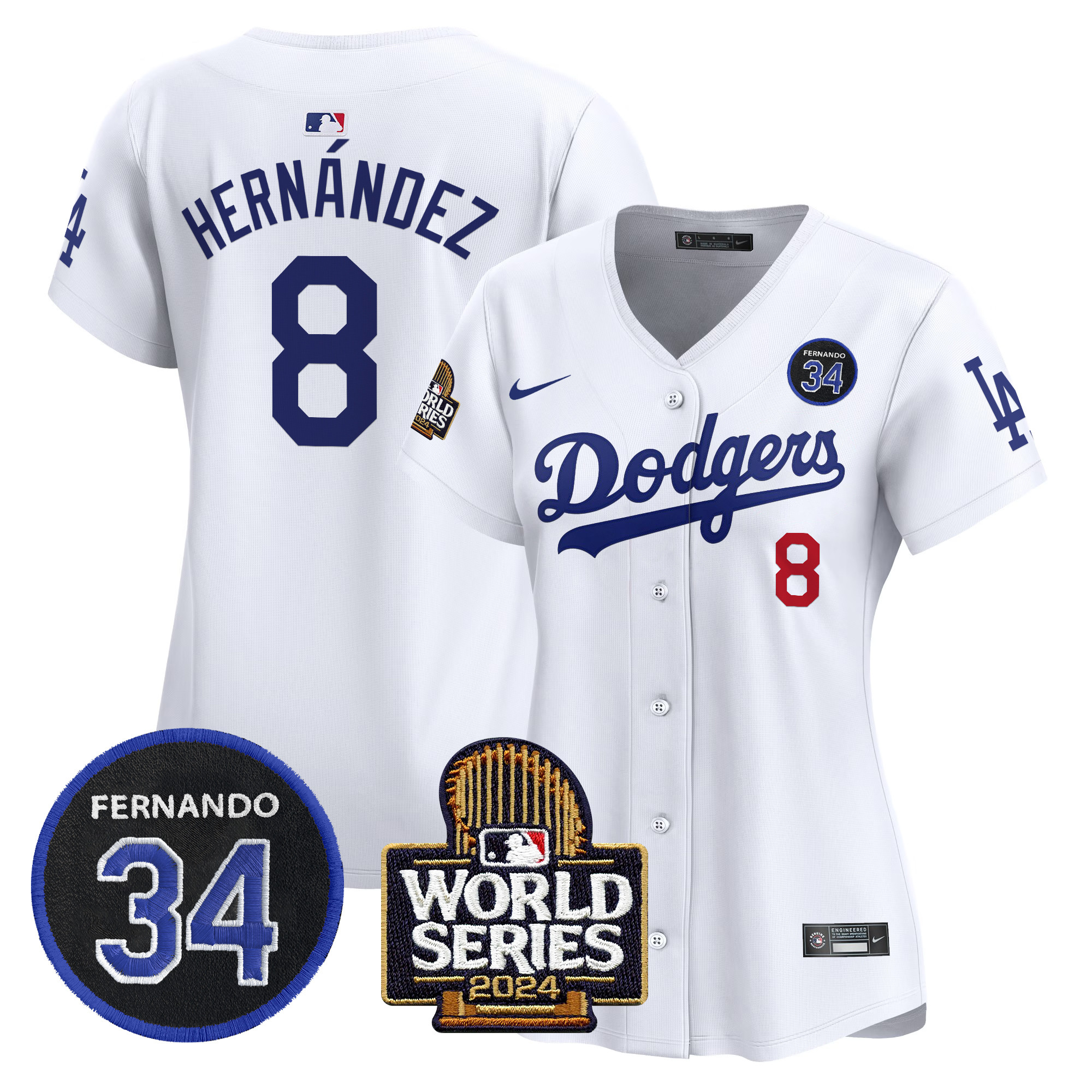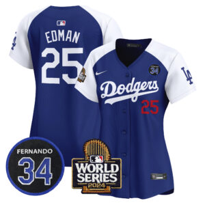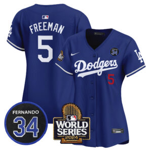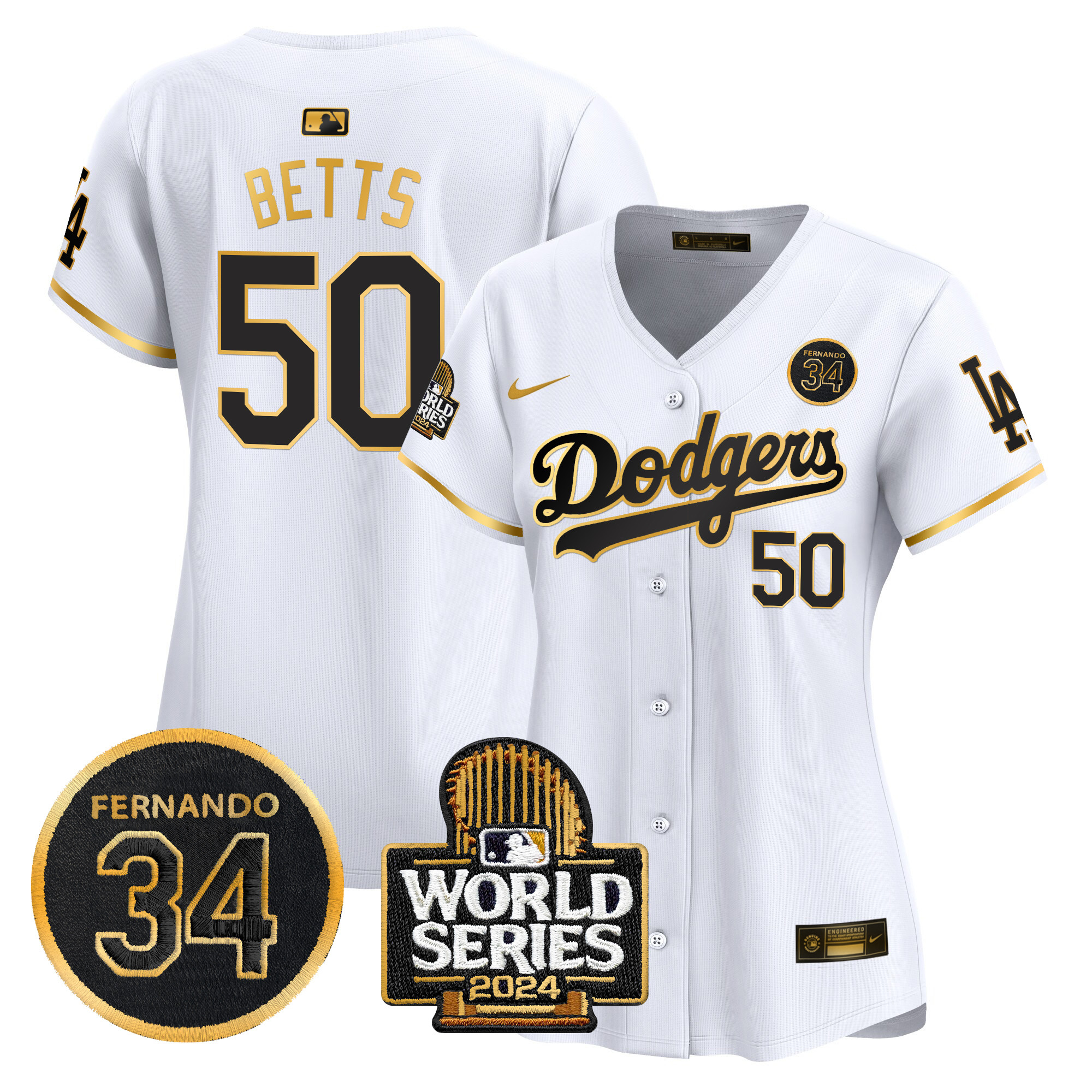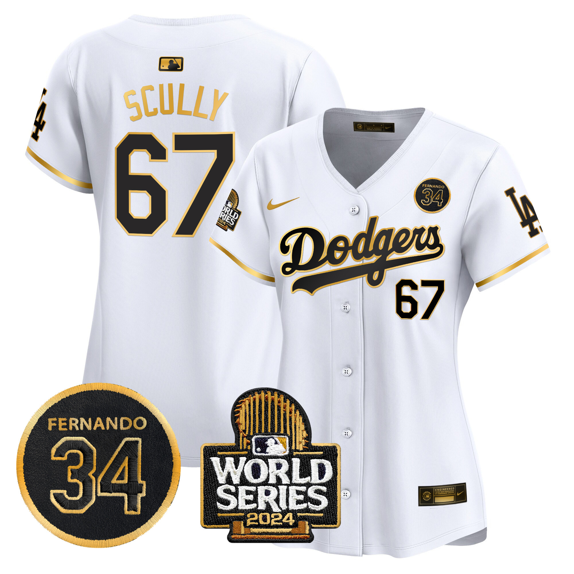 Women’s Dodgers Fernando Valenzuela & 2024 World Series Patch Vapor Premier Limited Jersey V2 – All Stitched