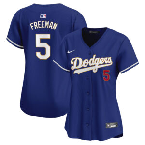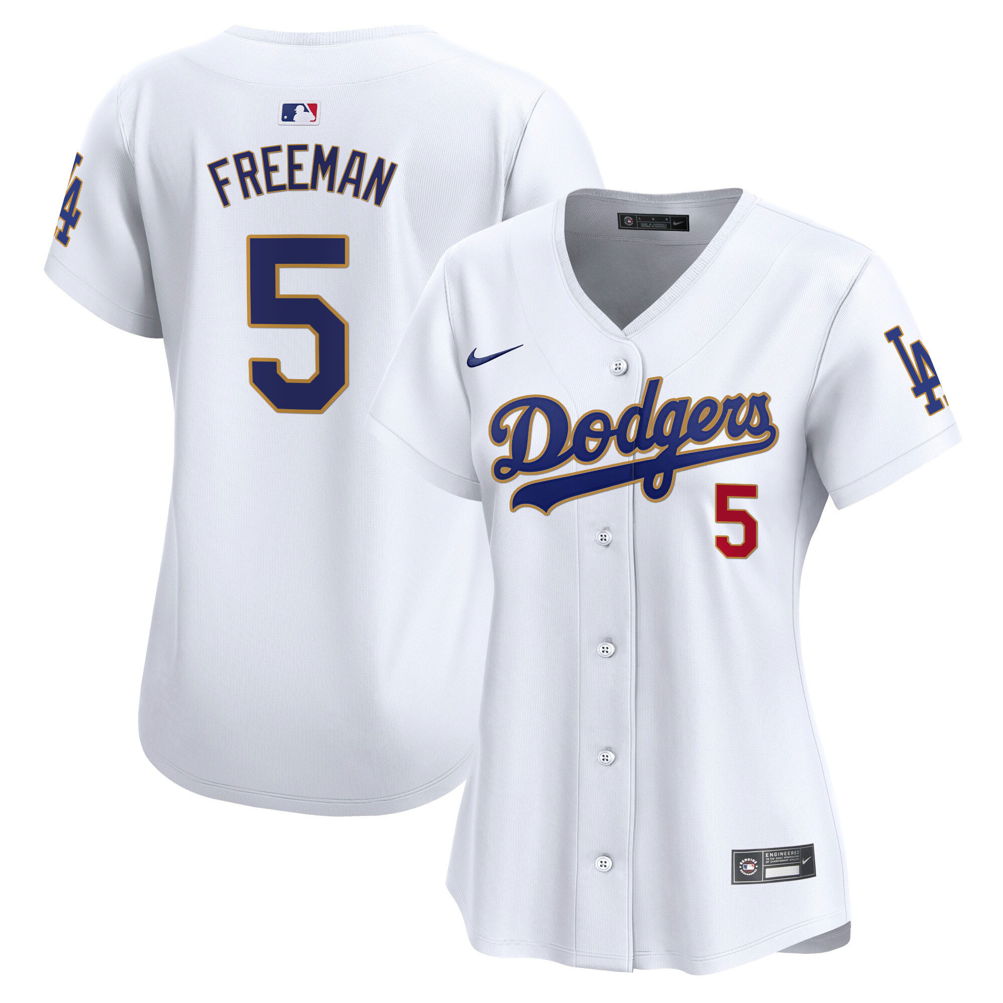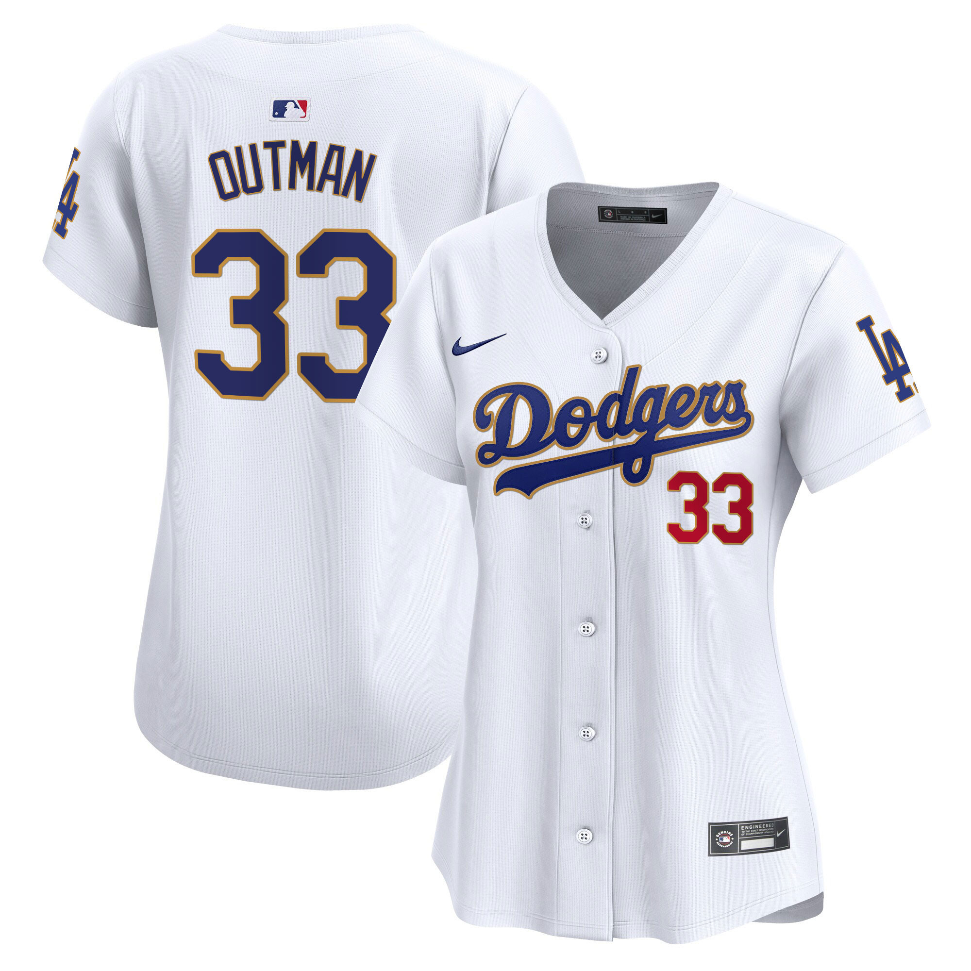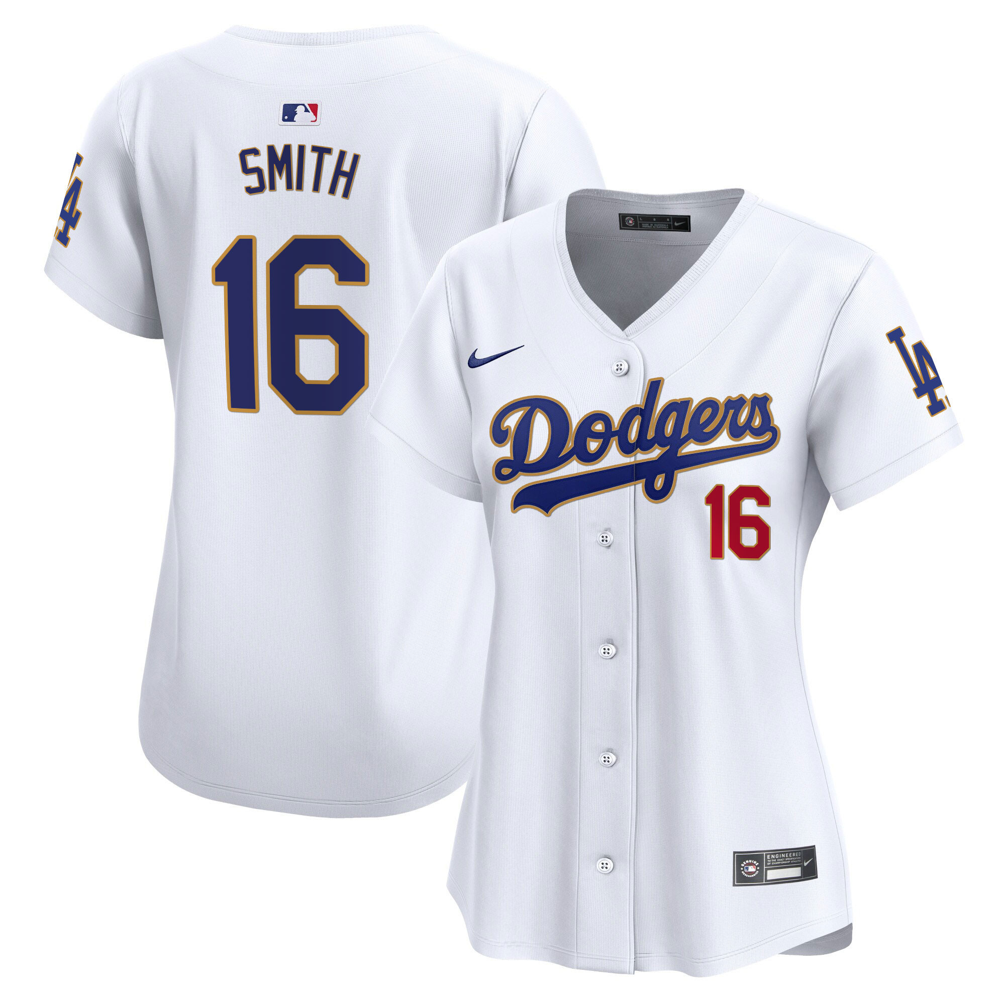 Women’s Dodgers Gold Trim Vapor Premier Limited Jersey – All Stitched