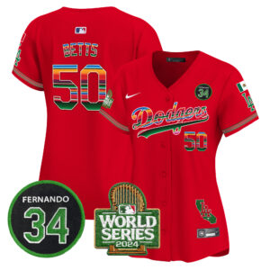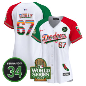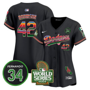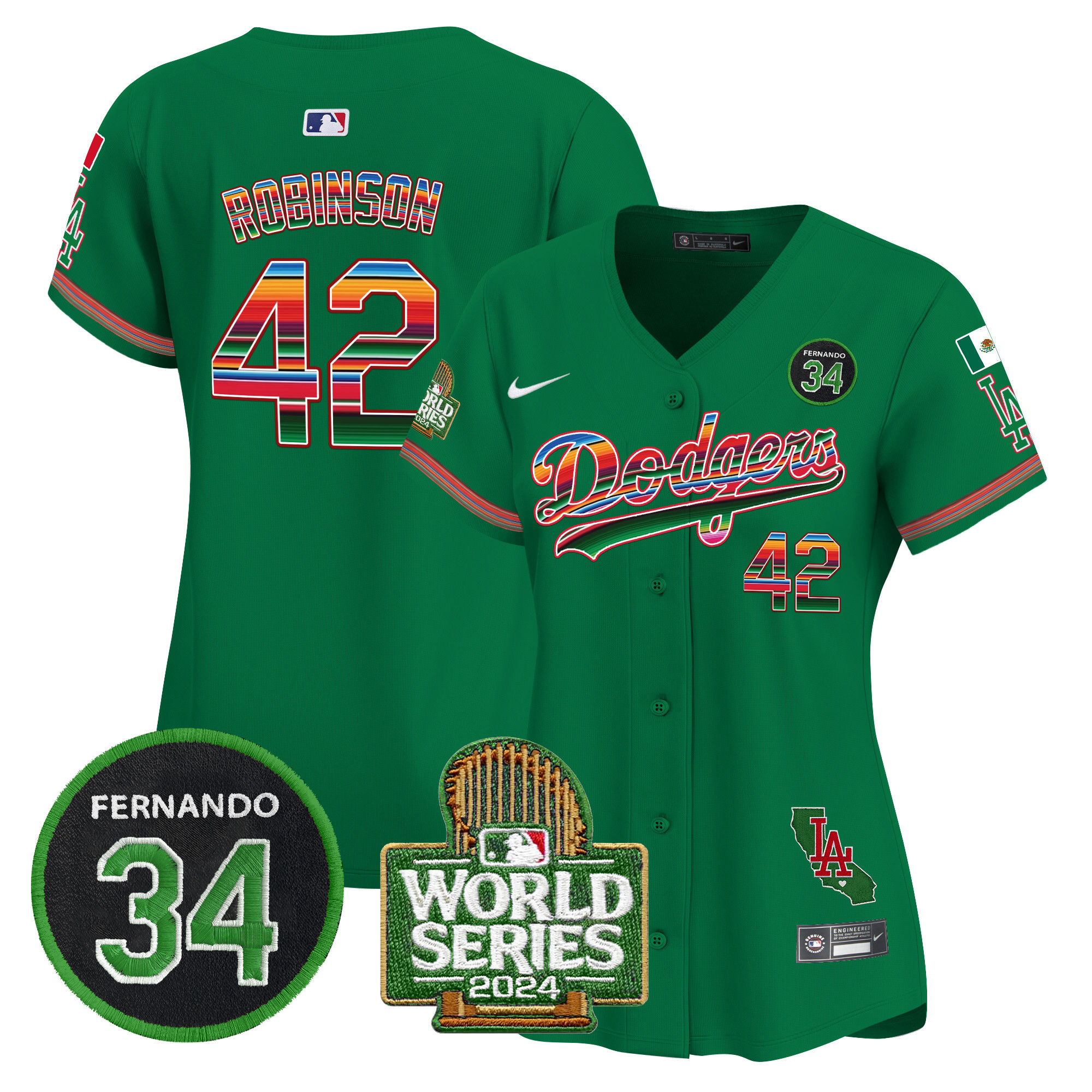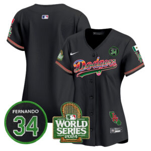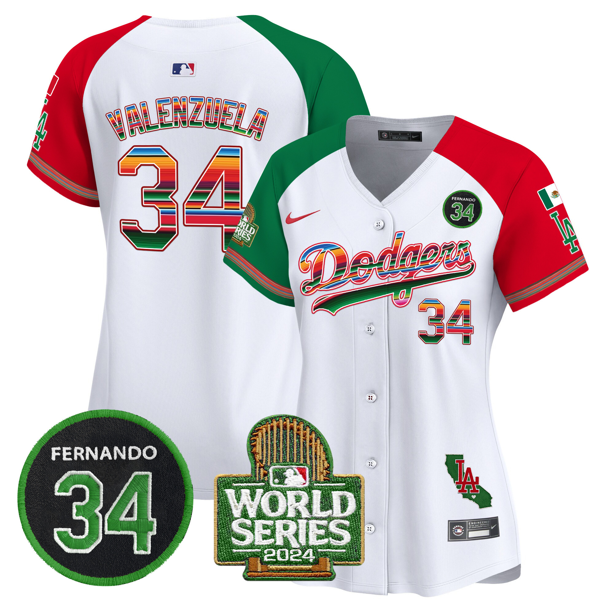 Women’s Dodgers Mexico Fernando Memorial & 2024 World Series Patch Vapor Premier Limited Jersey – All Stitched
