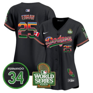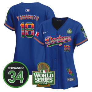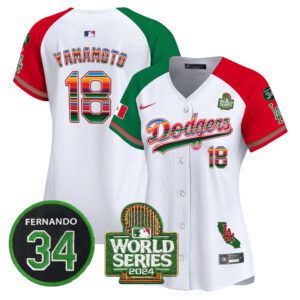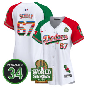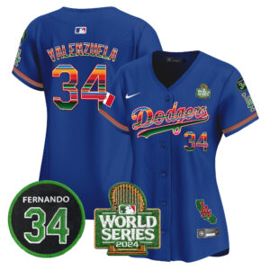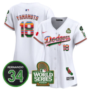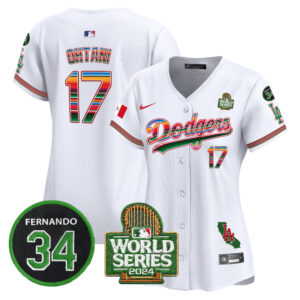 Women’s Dodgers Mexico Fernando Memorial & 2024 World Series Patch Vapor Premier Limited Jersey V2 – All Stitched