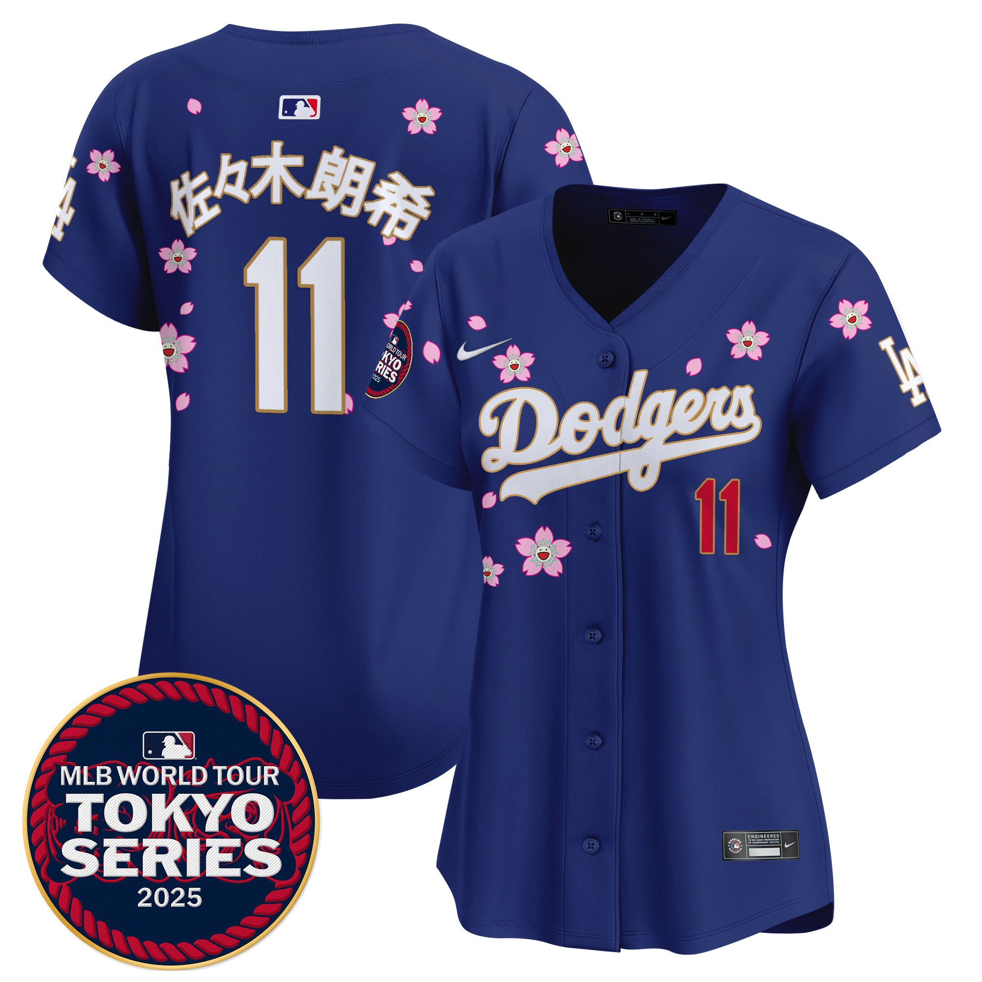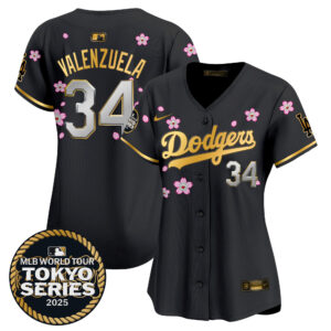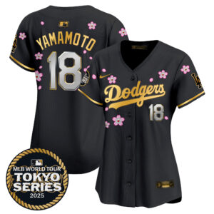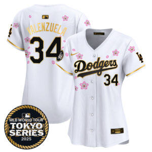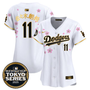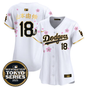 Women’s Dodgers Tokyo Series 2025 Gold Trim Vapor Premier Limited Jersey V2 – Stitched