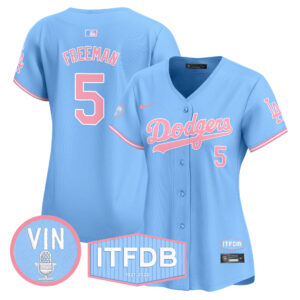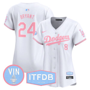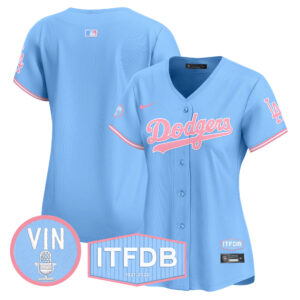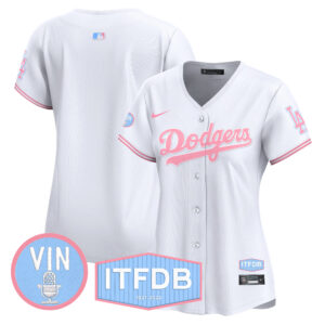Women’s Dodgers Vin ITFDB Patch Bubblegum Pink Vapor Premier Limited Jersey – All Stitched