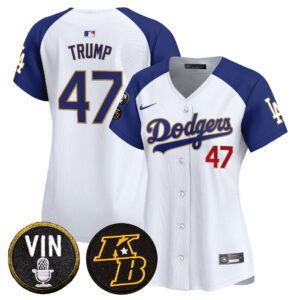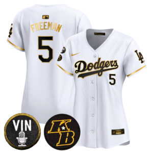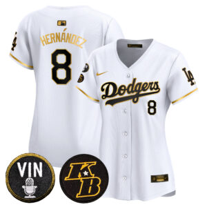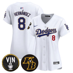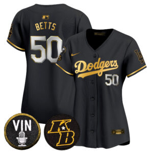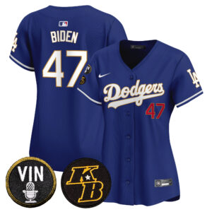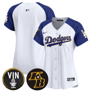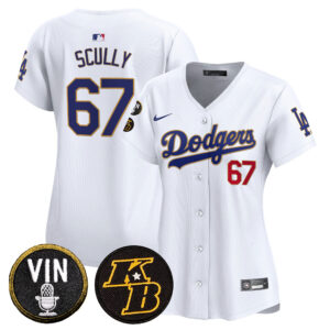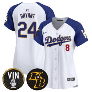 Women’s Dodgers Vin & Kobe Patch Gold Trim Vapor Premier Limited Jersey – All Stitched