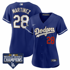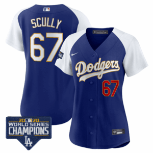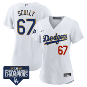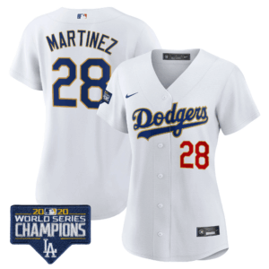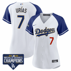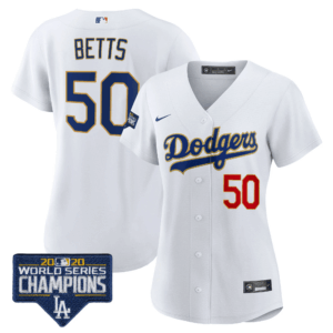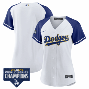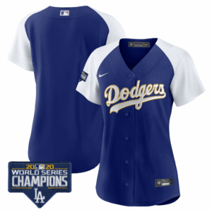 Women’s Dodgers World Series Champions Patch Gold Trim Jersey – All Stitched