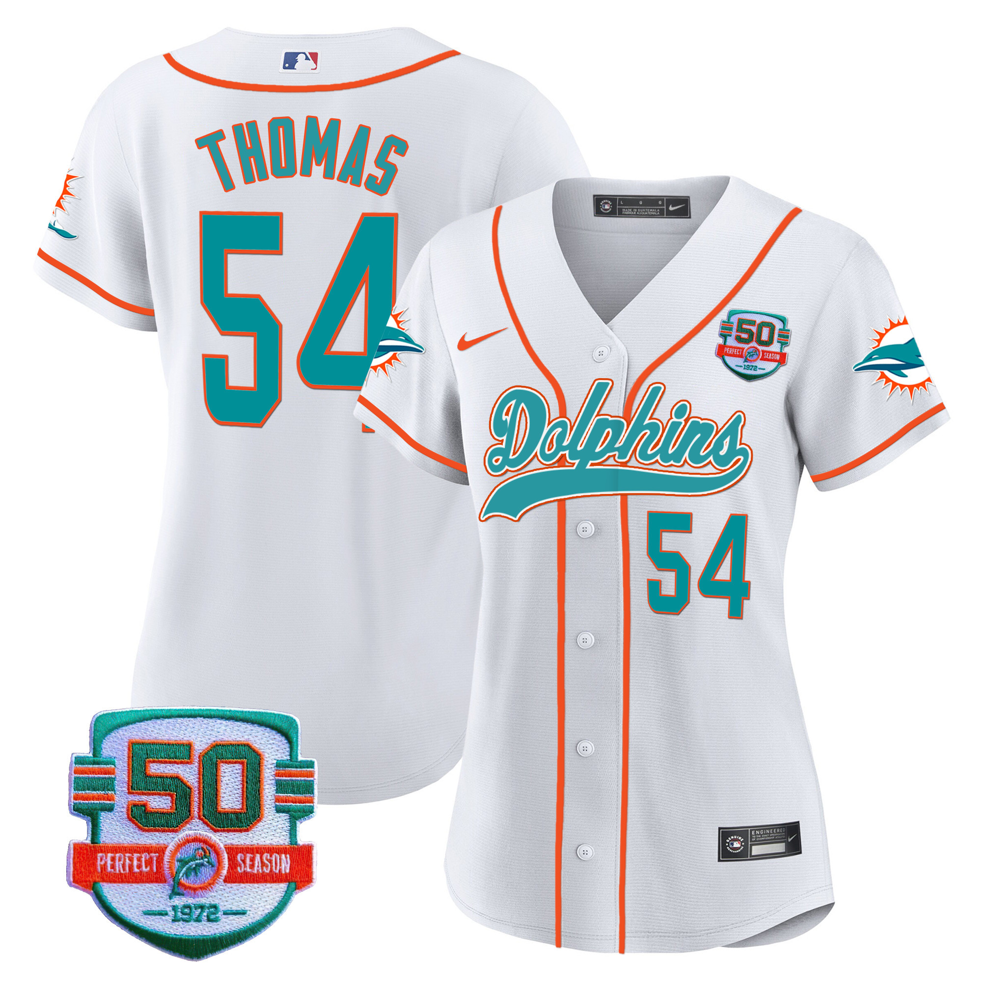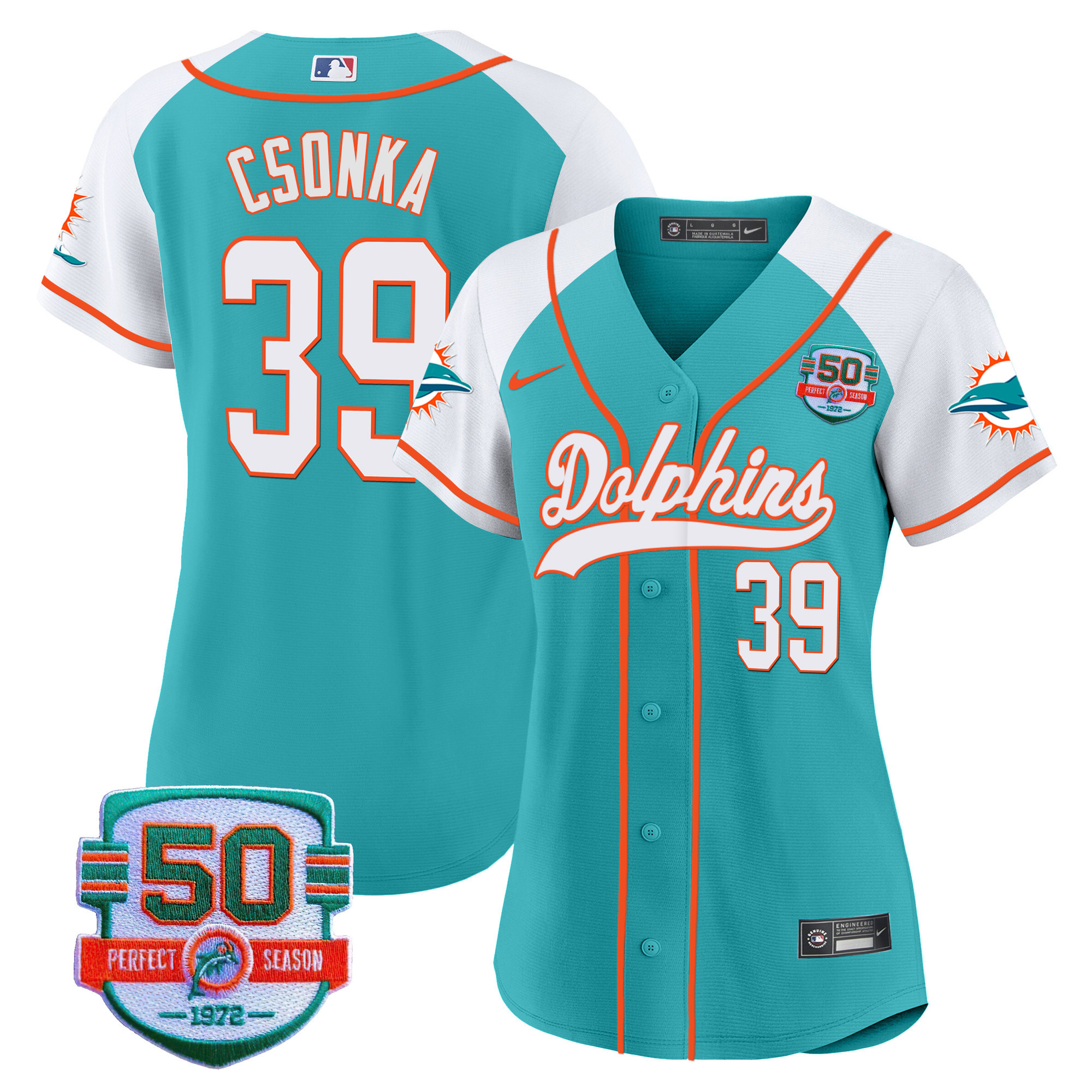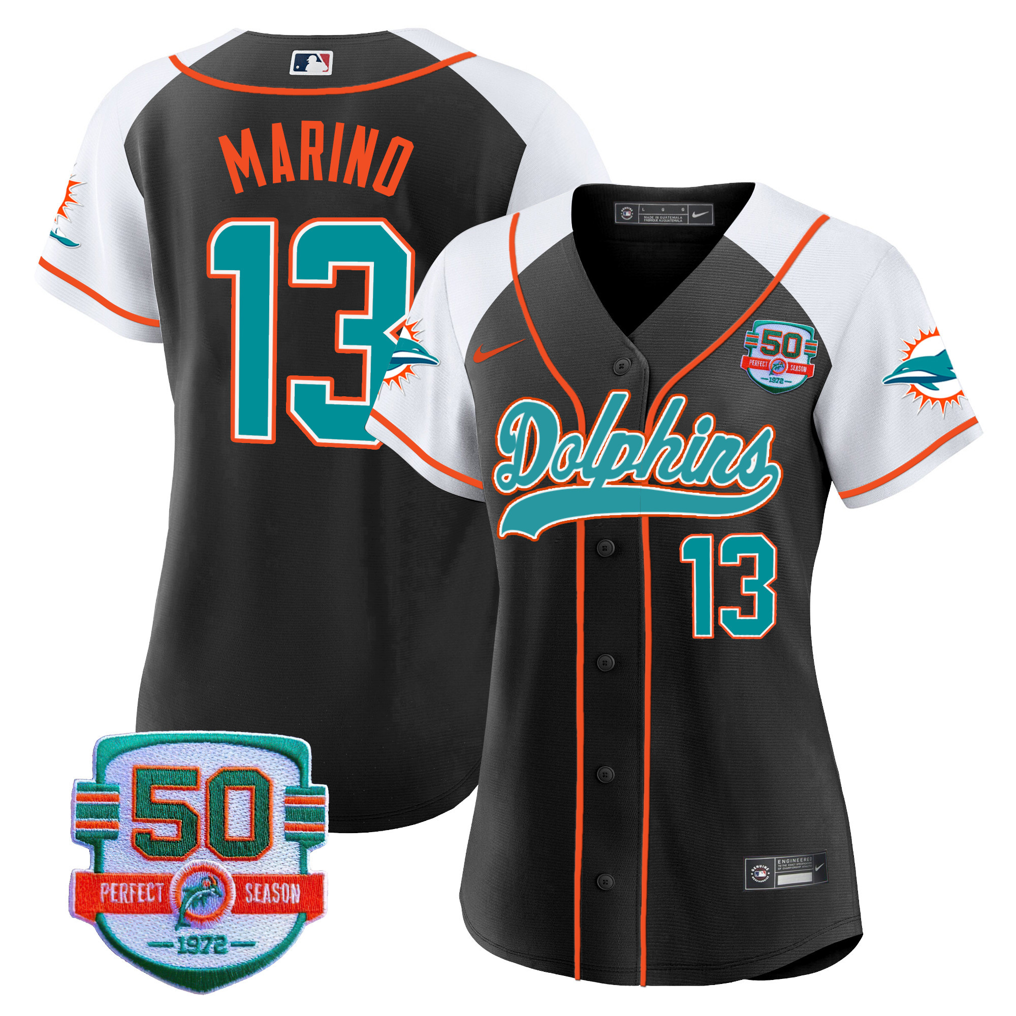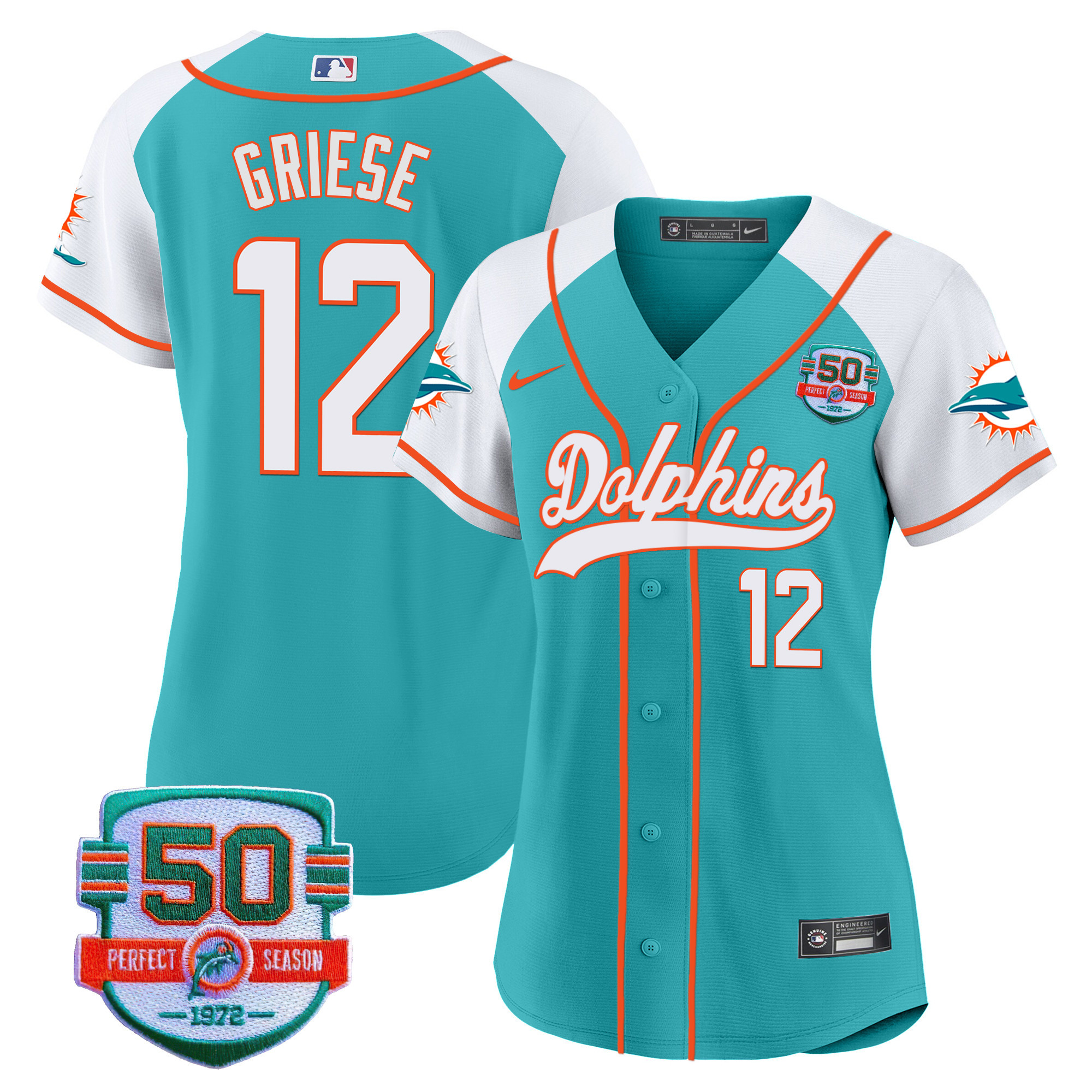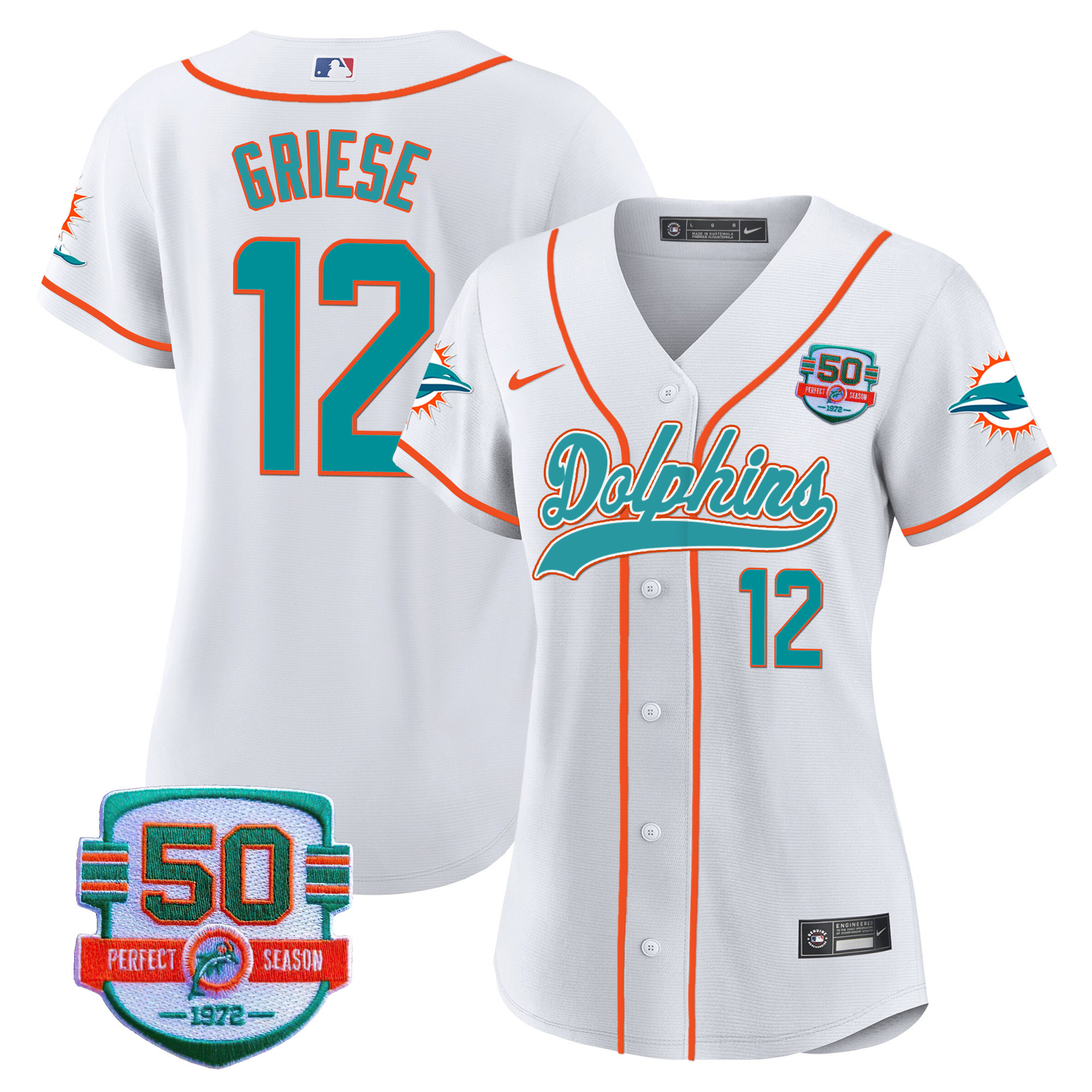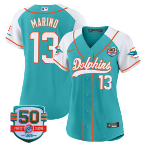 Women’s Dolphins 50th 1972 Perfect Season Patch Baseball Jersey – All Stitched