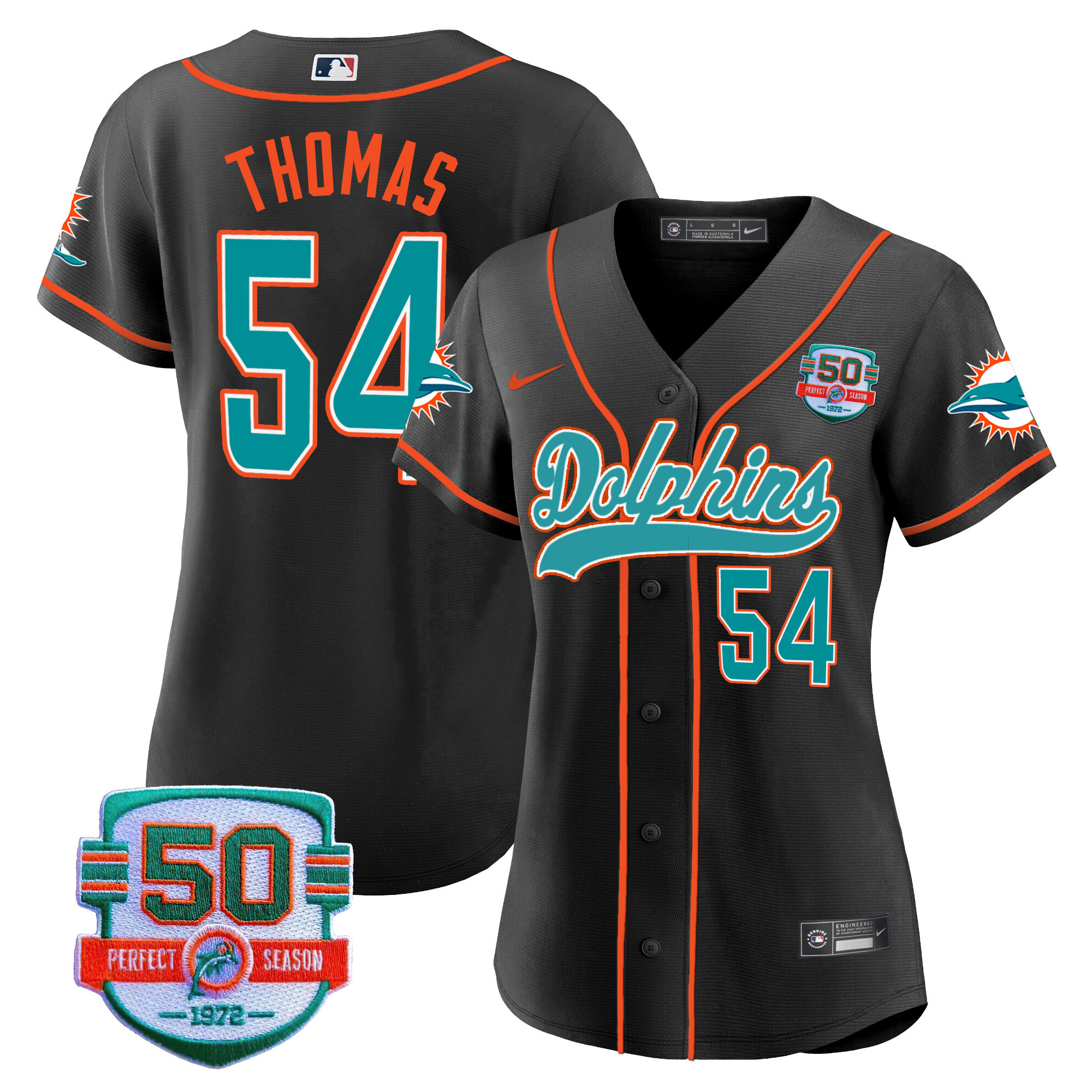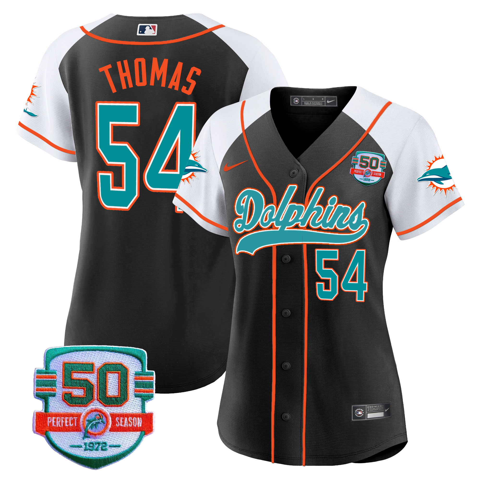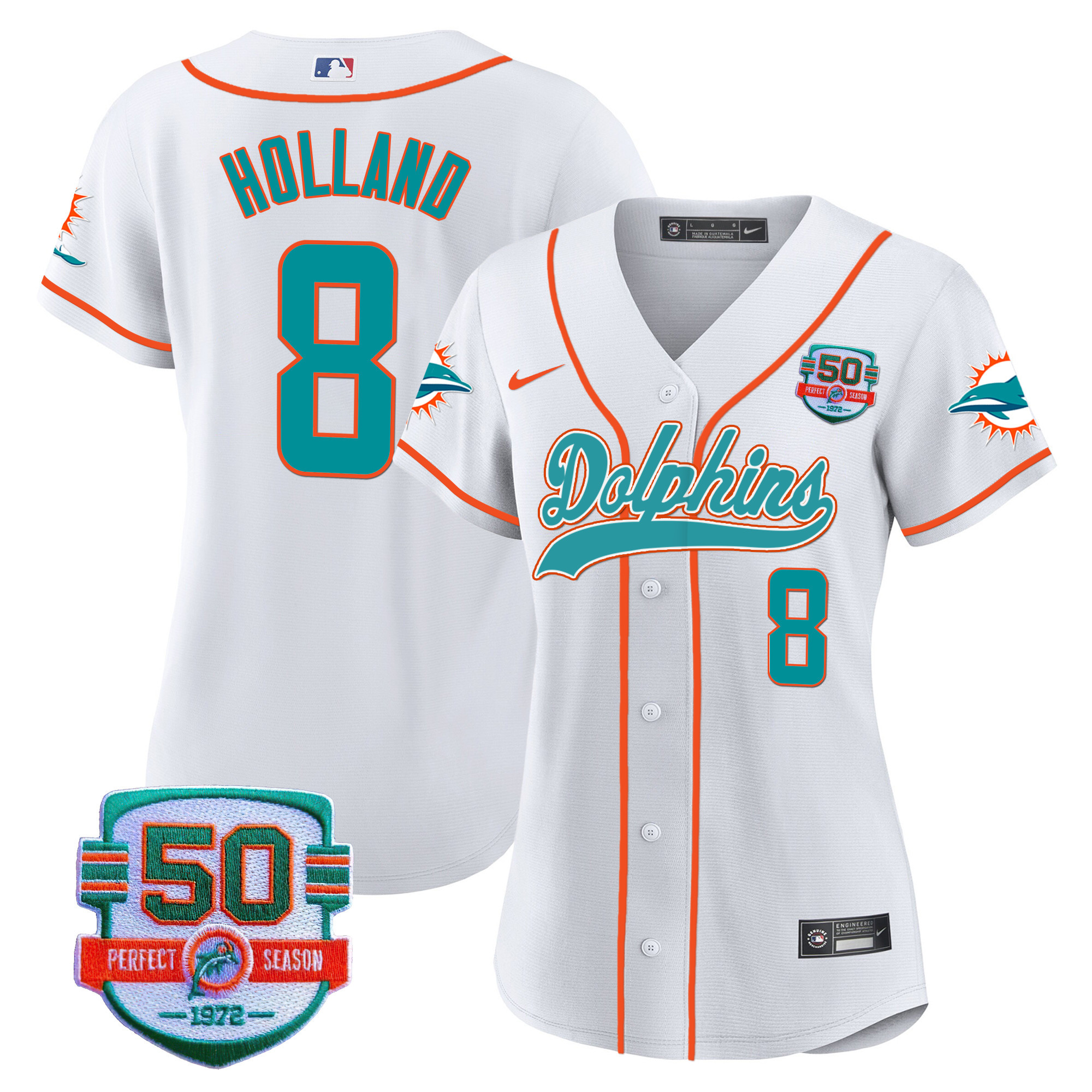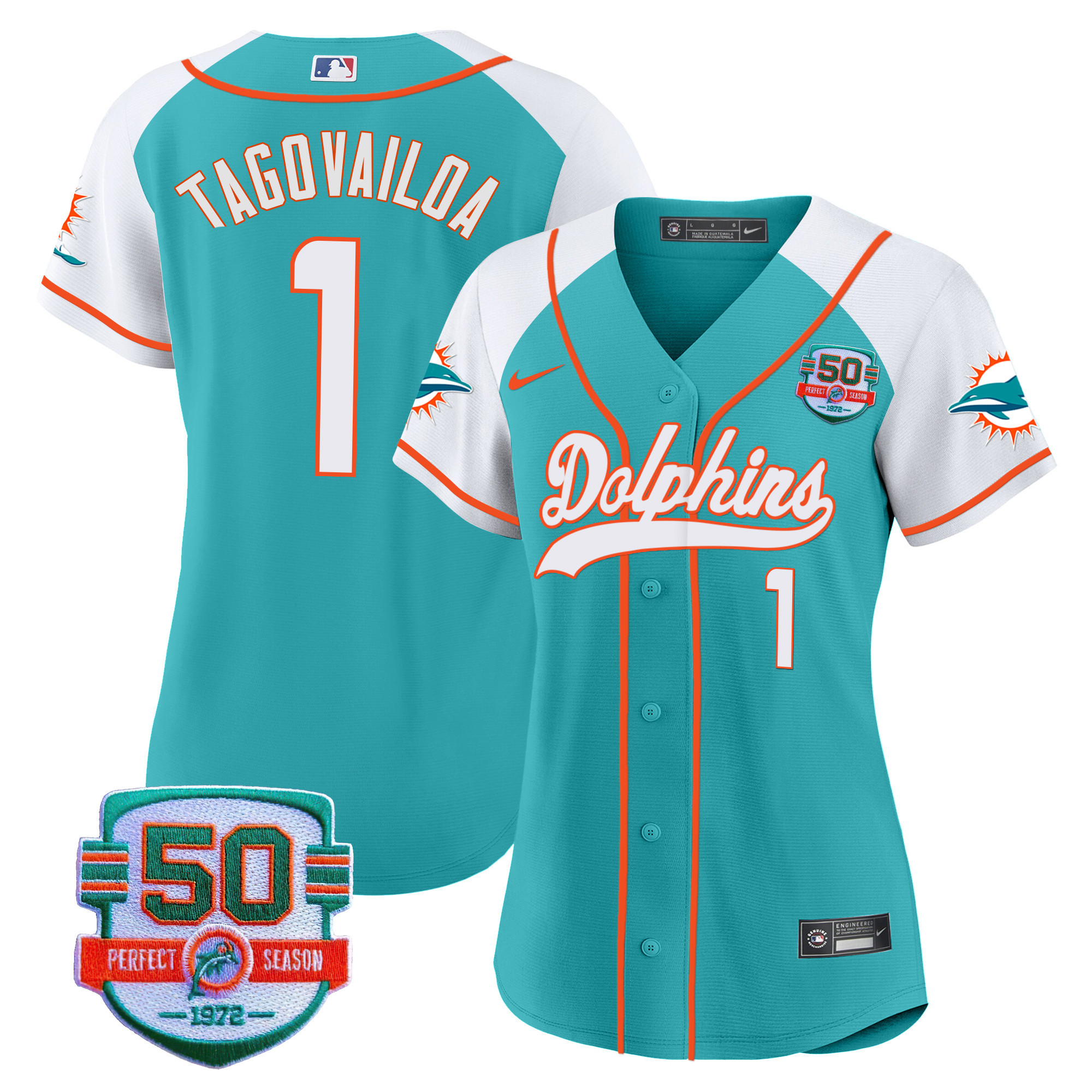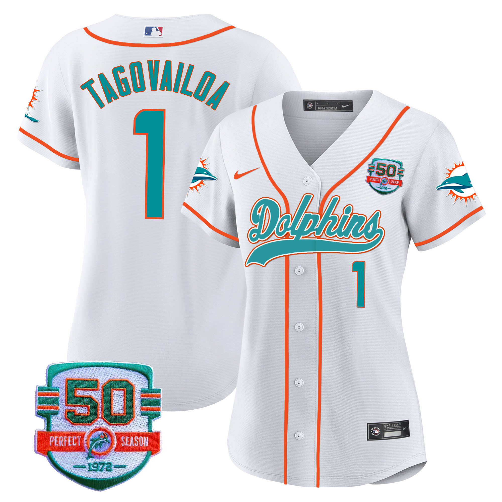 Women’s Dolphins 50th 1972 Perfect Season Patch Baseball Jersey – All Stitched