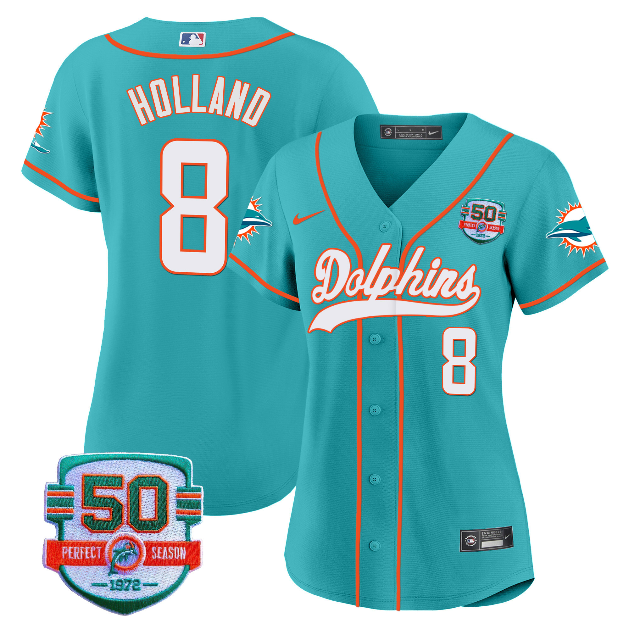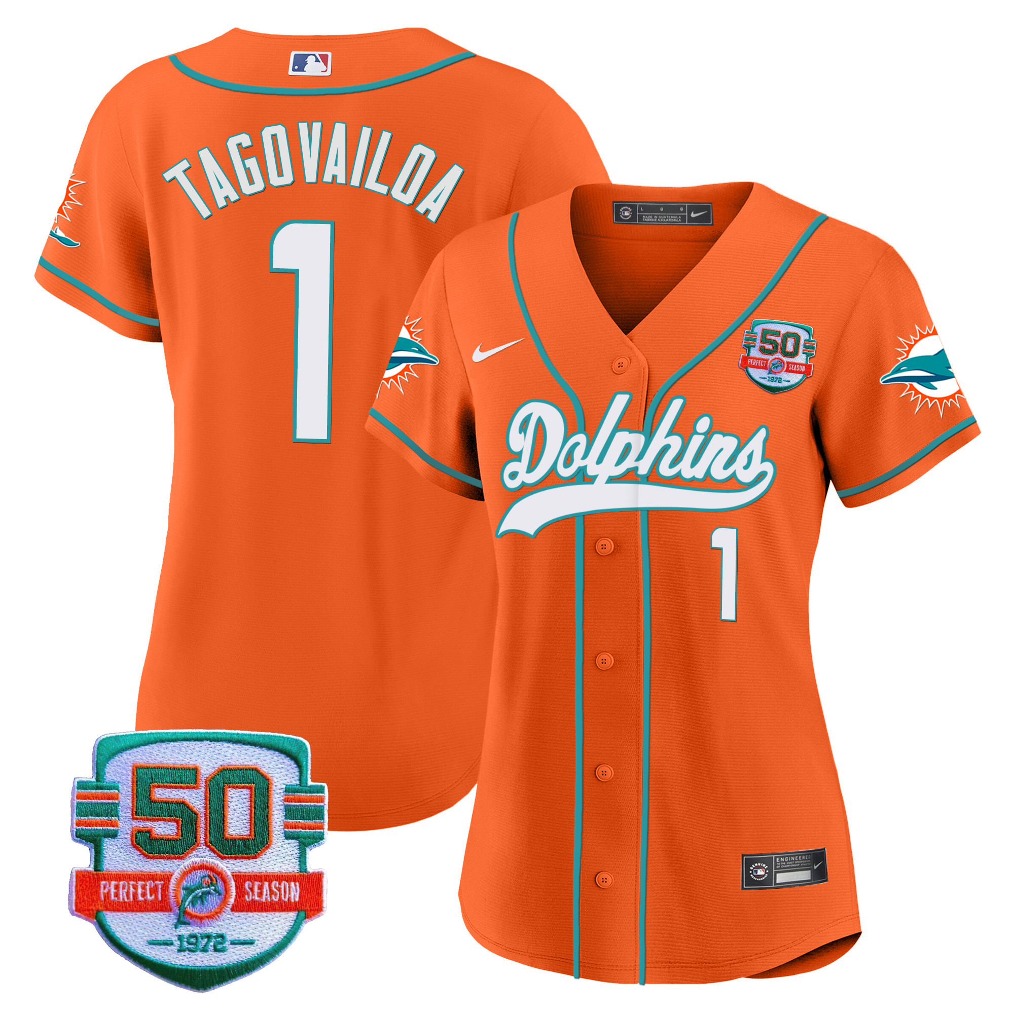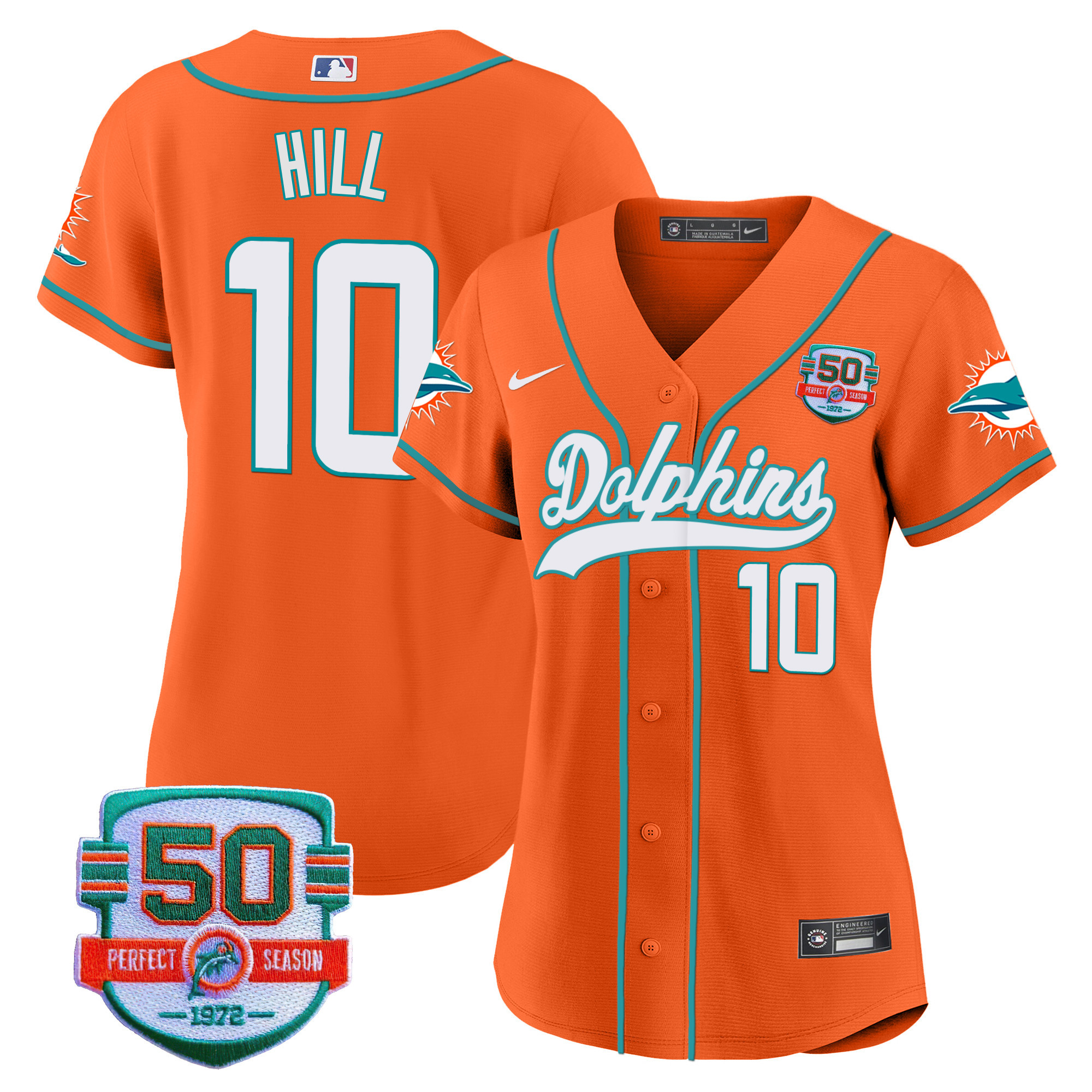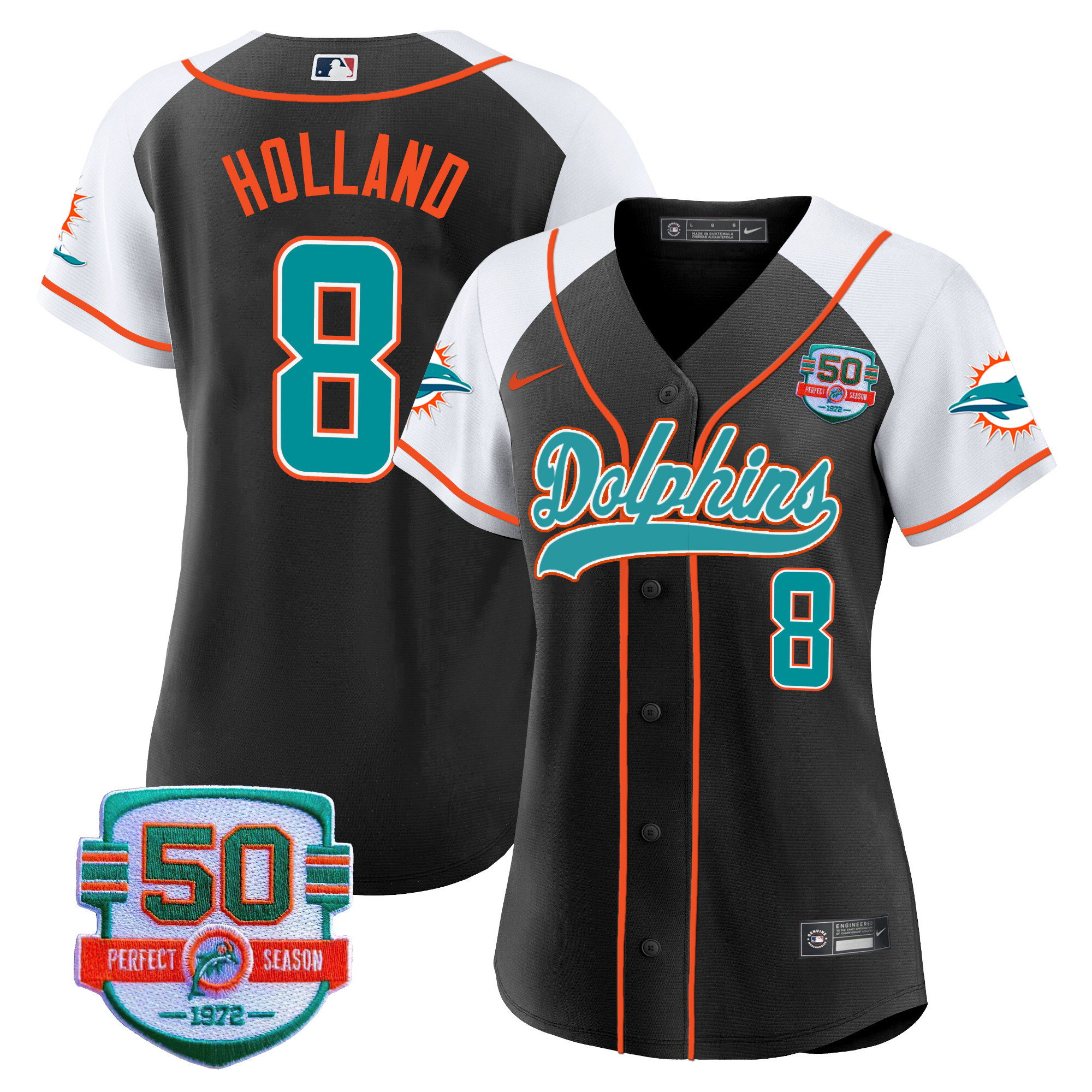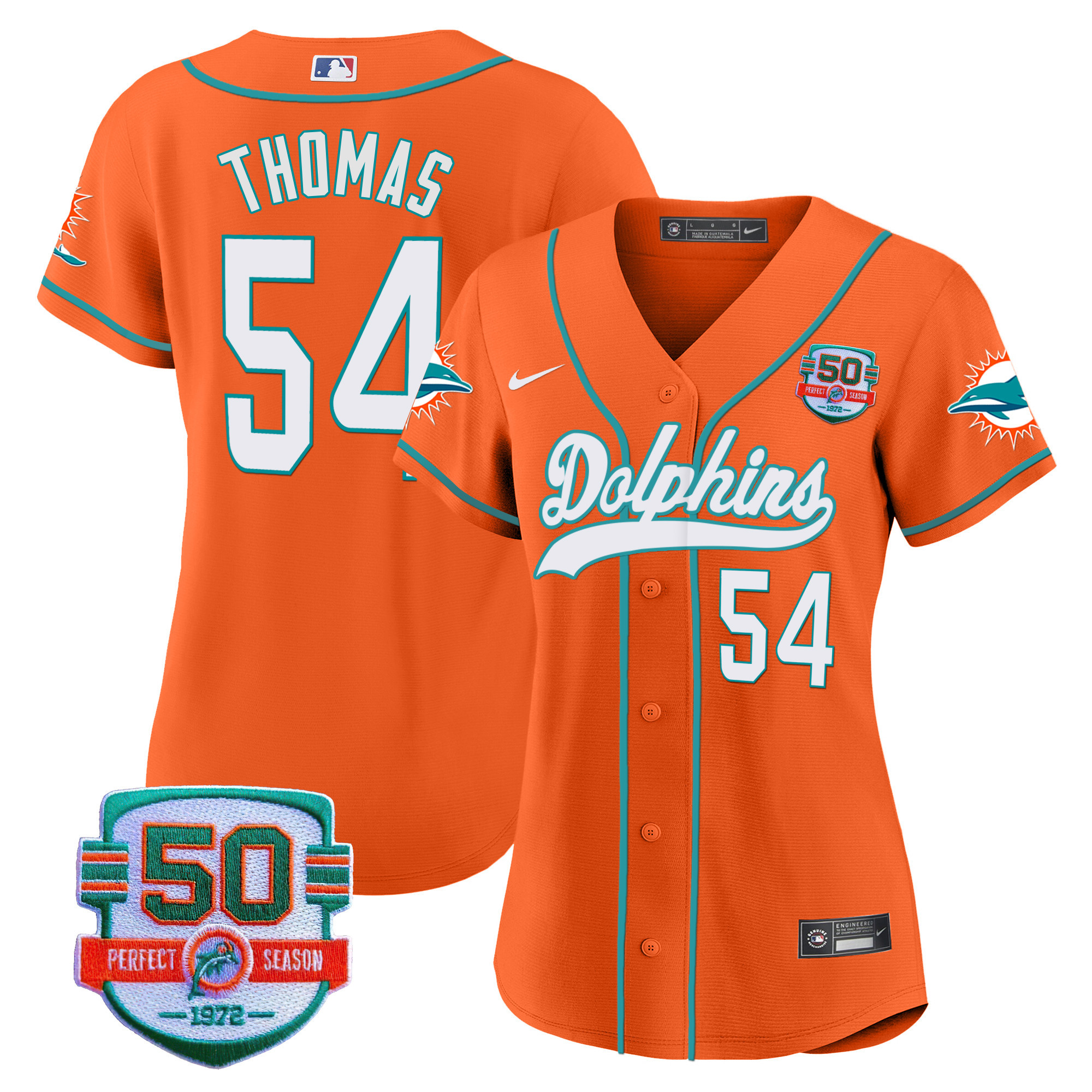 Women’s Dolphins 50th 1972 Perfect Season Patch Baseball Jersey – All Stitched
