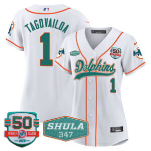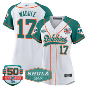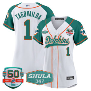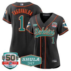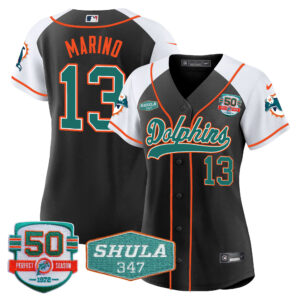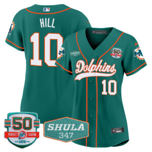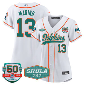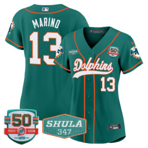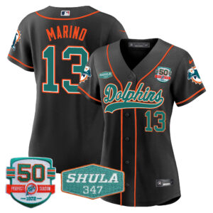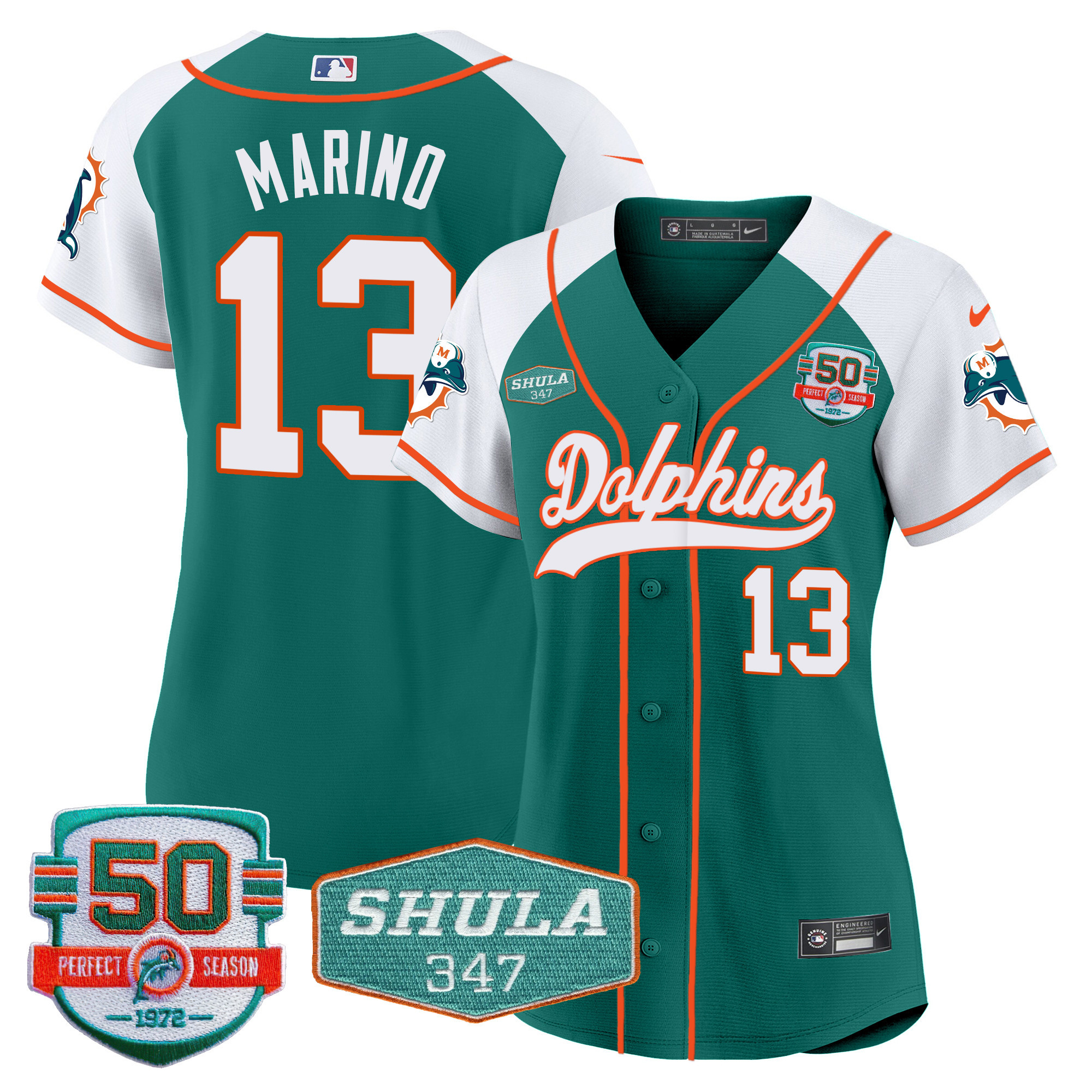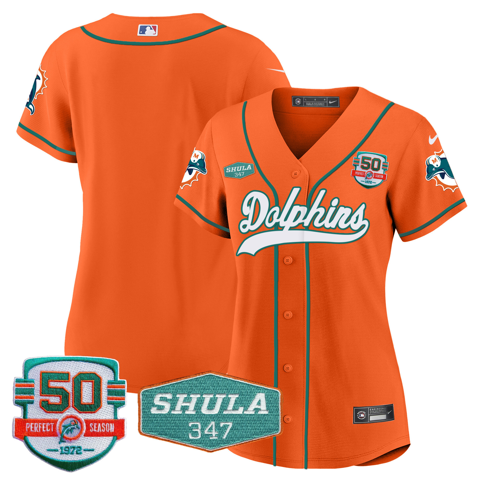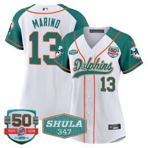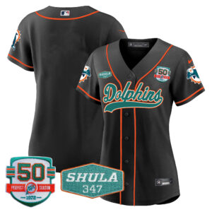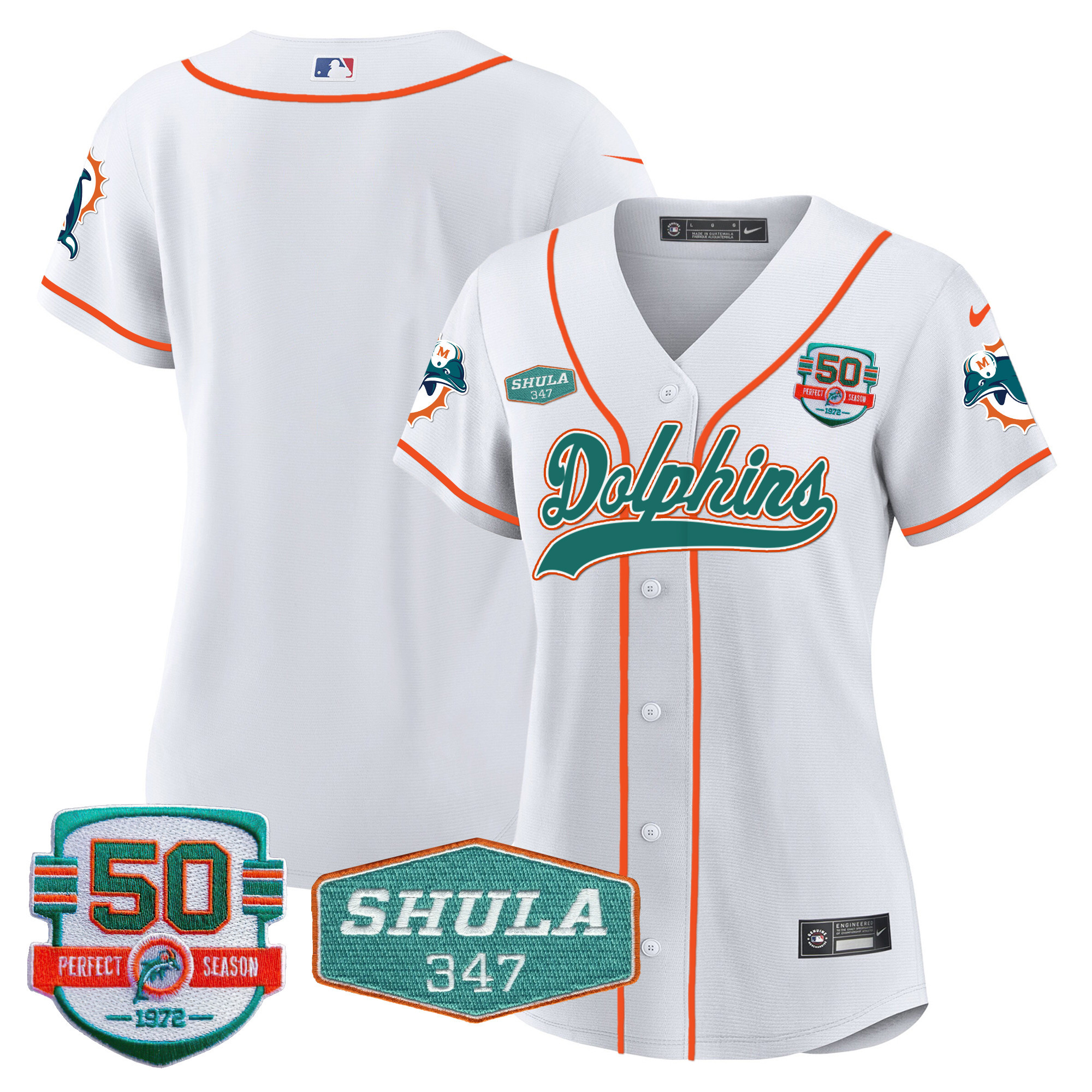 Women’s Dolphins 50th & Don Shula 347 Memorial Patch Baseball Jersey – All Stitched