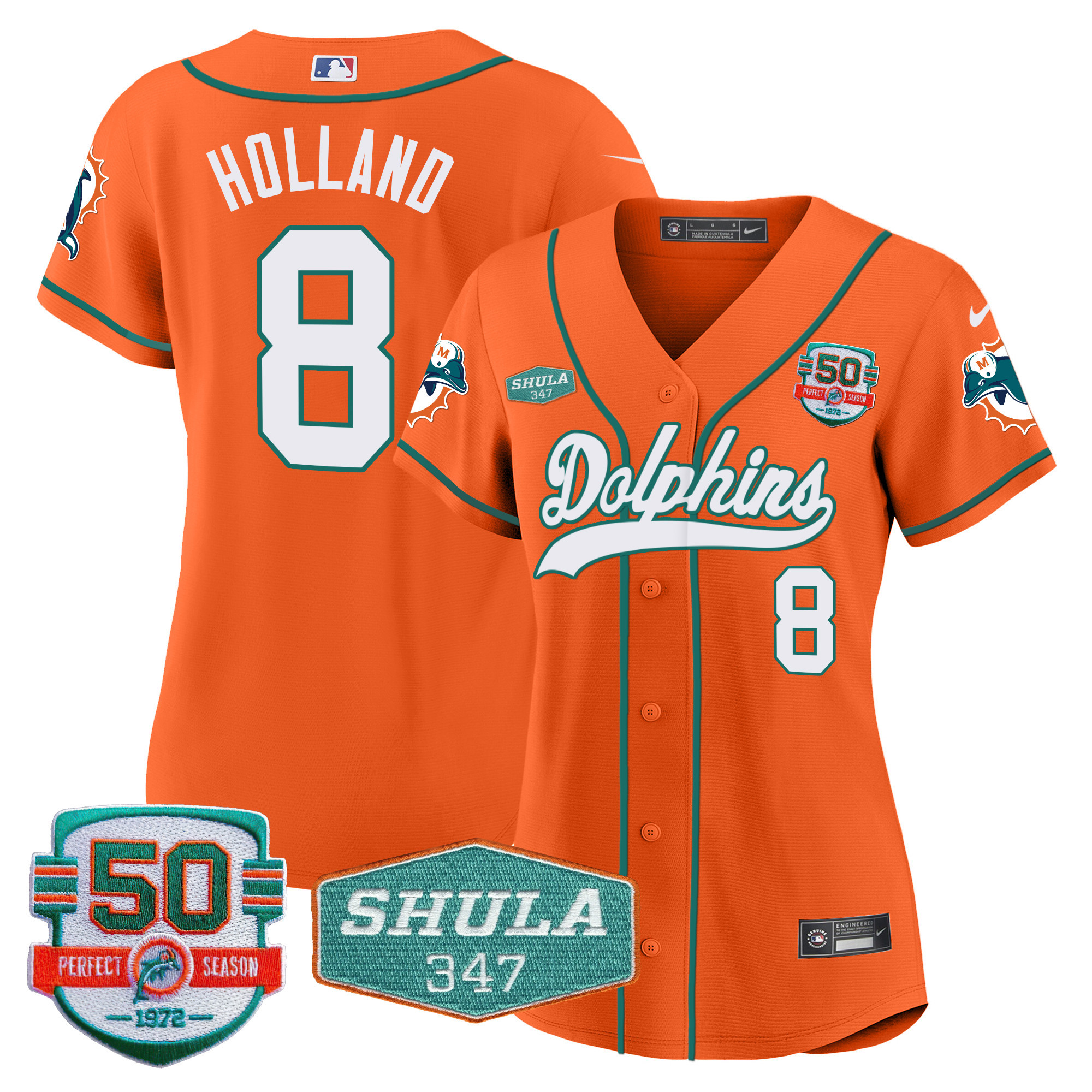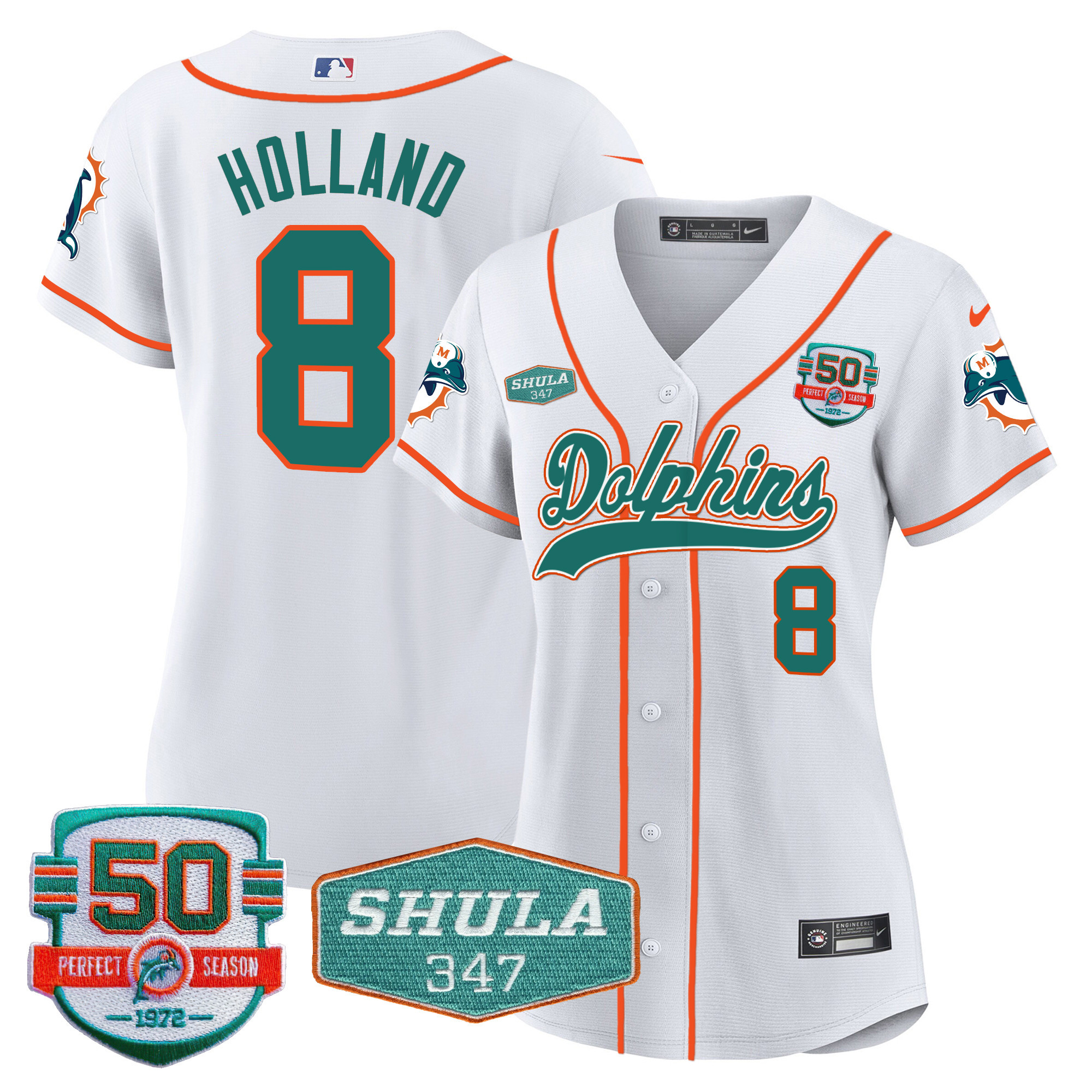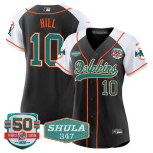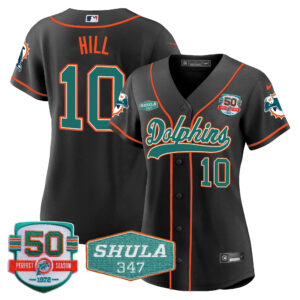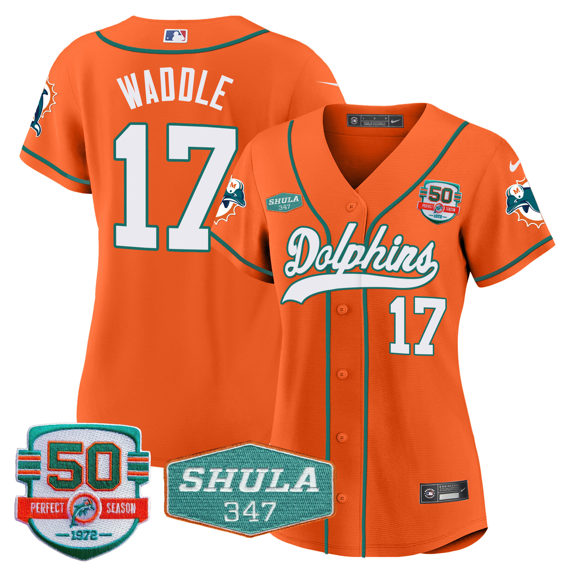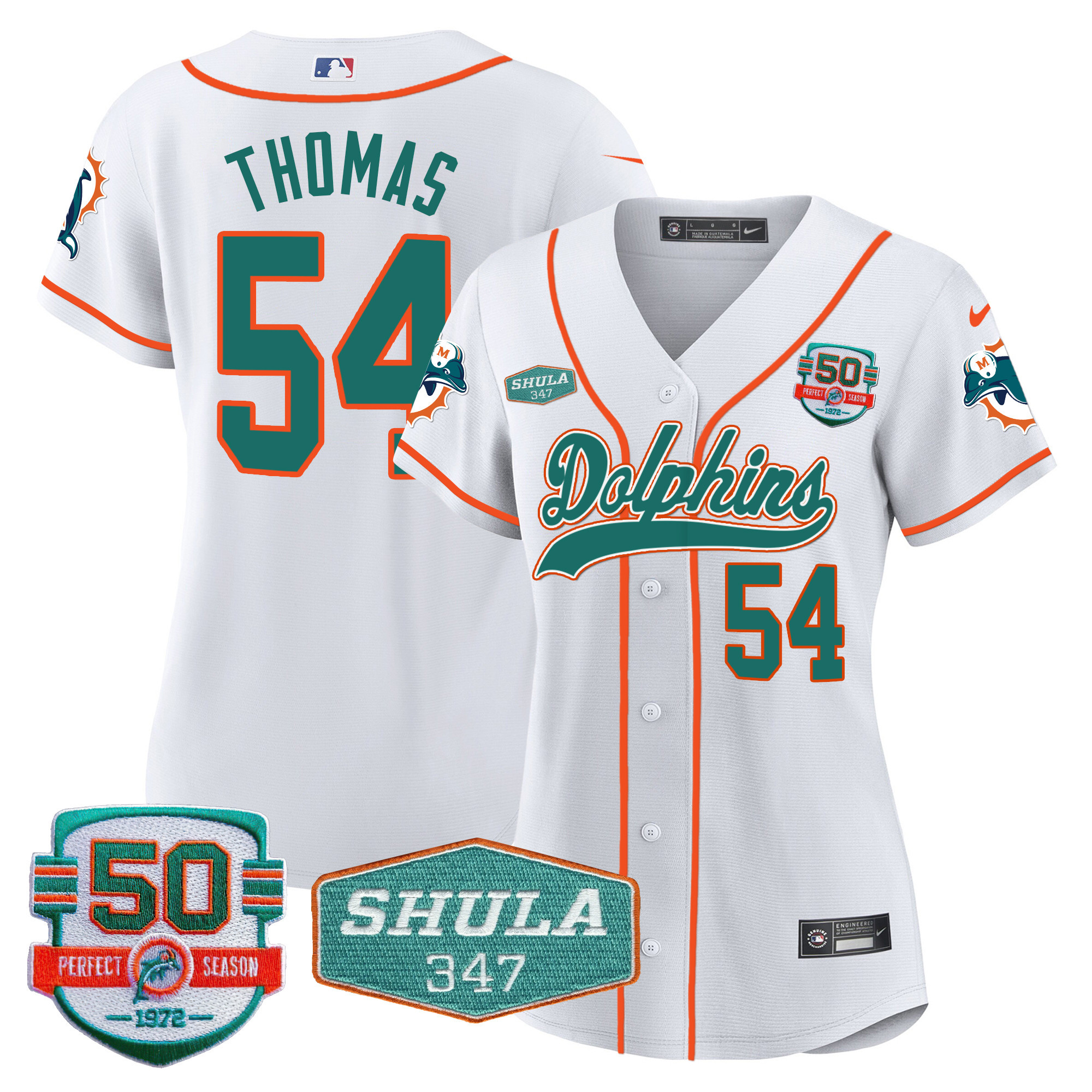 Women’s Dolphins 50th & Don Shula 347 Memorial Patch Baseball Jersey – All Stitched