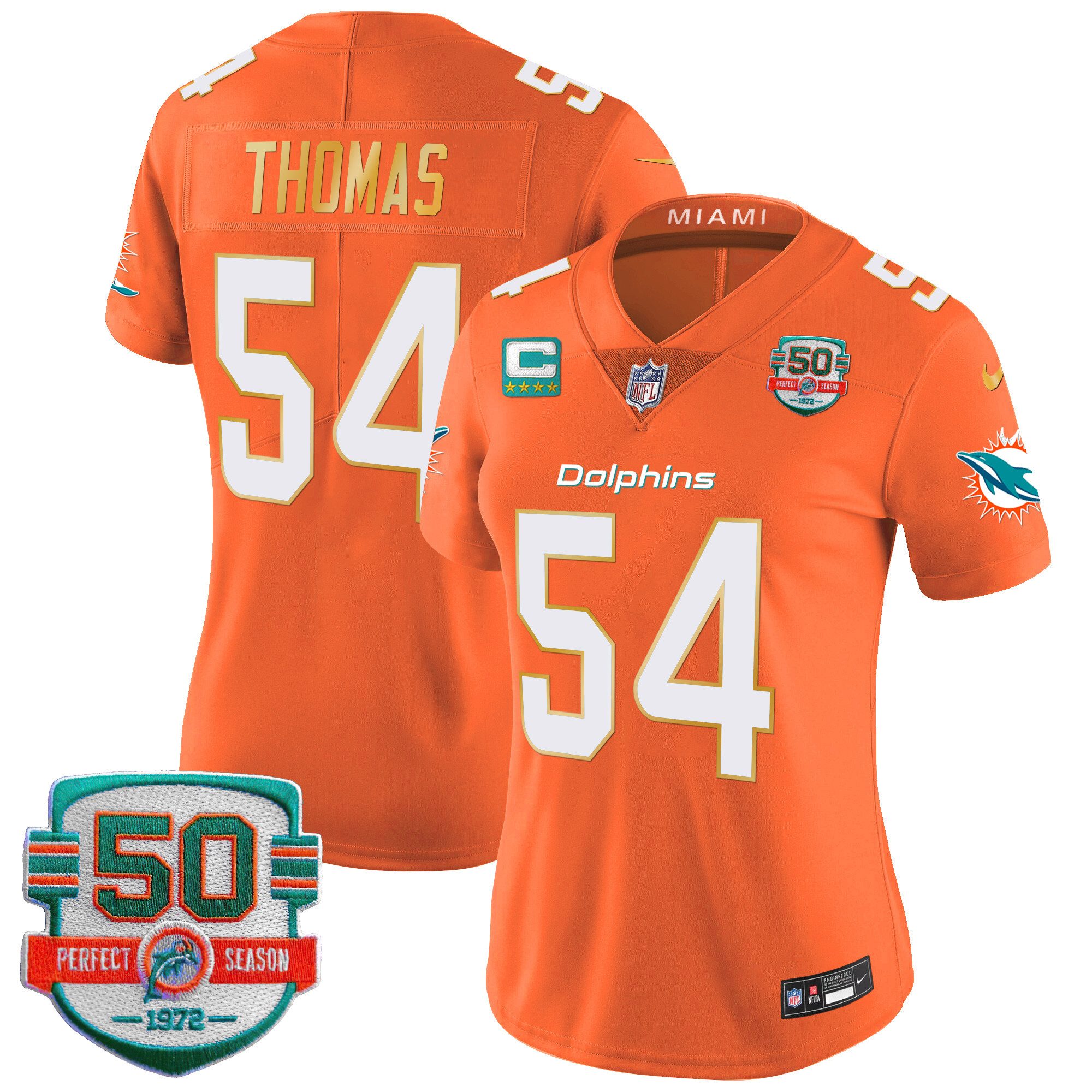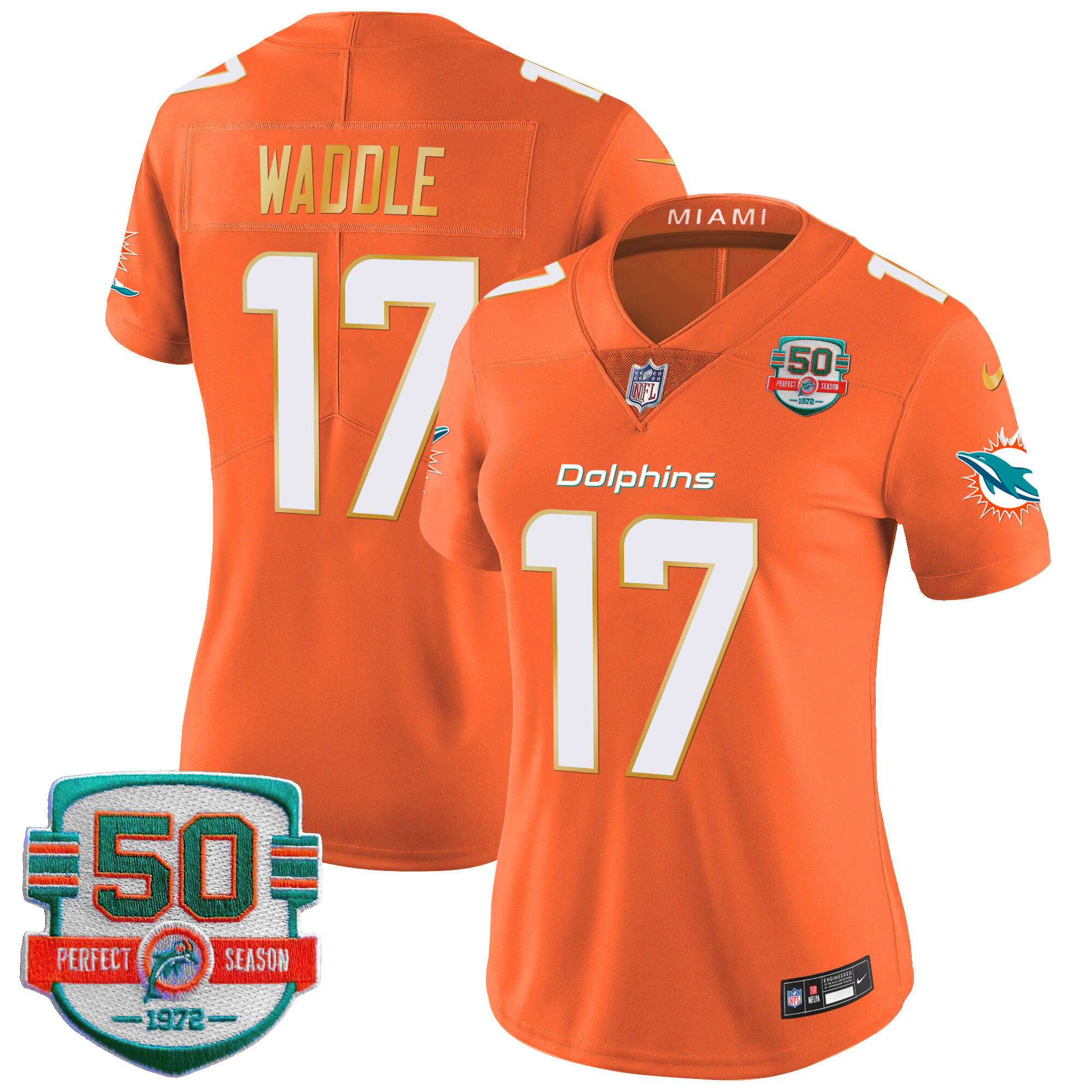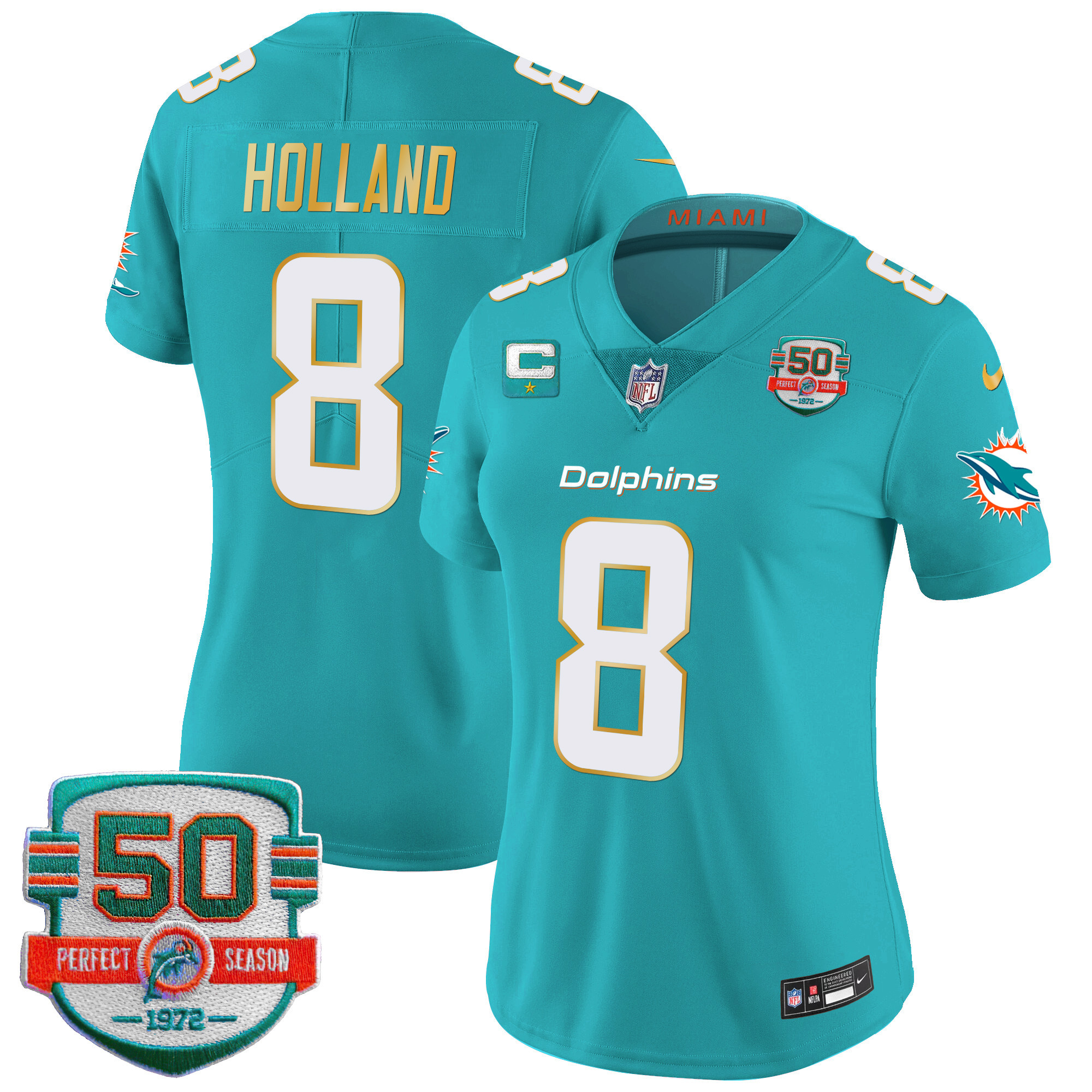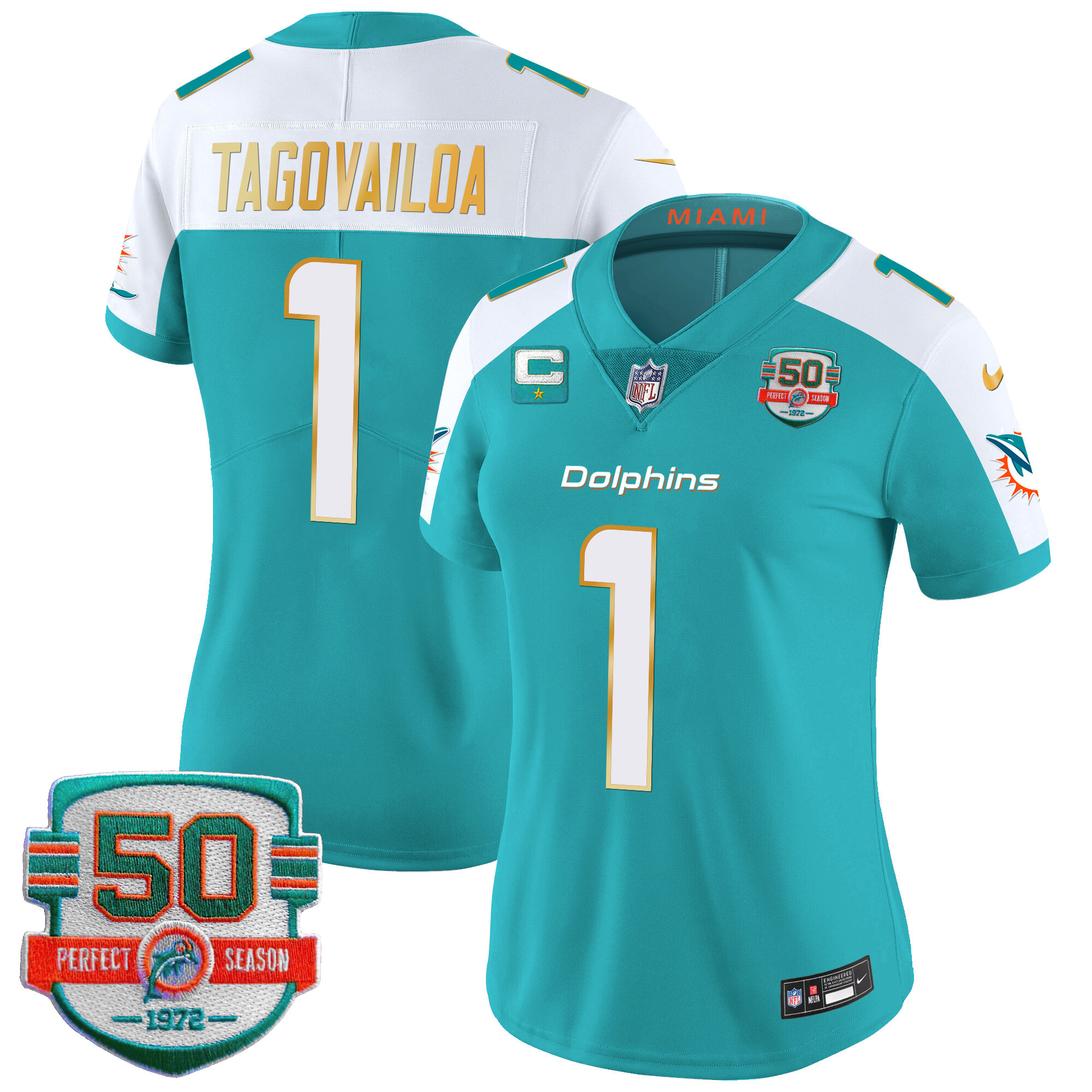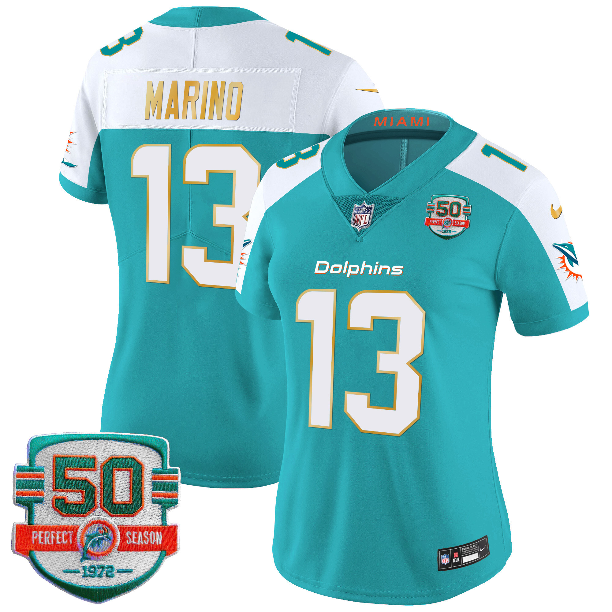 Women’s Dolphins Gold Trim Vapor Limited Jersey – All Stitched