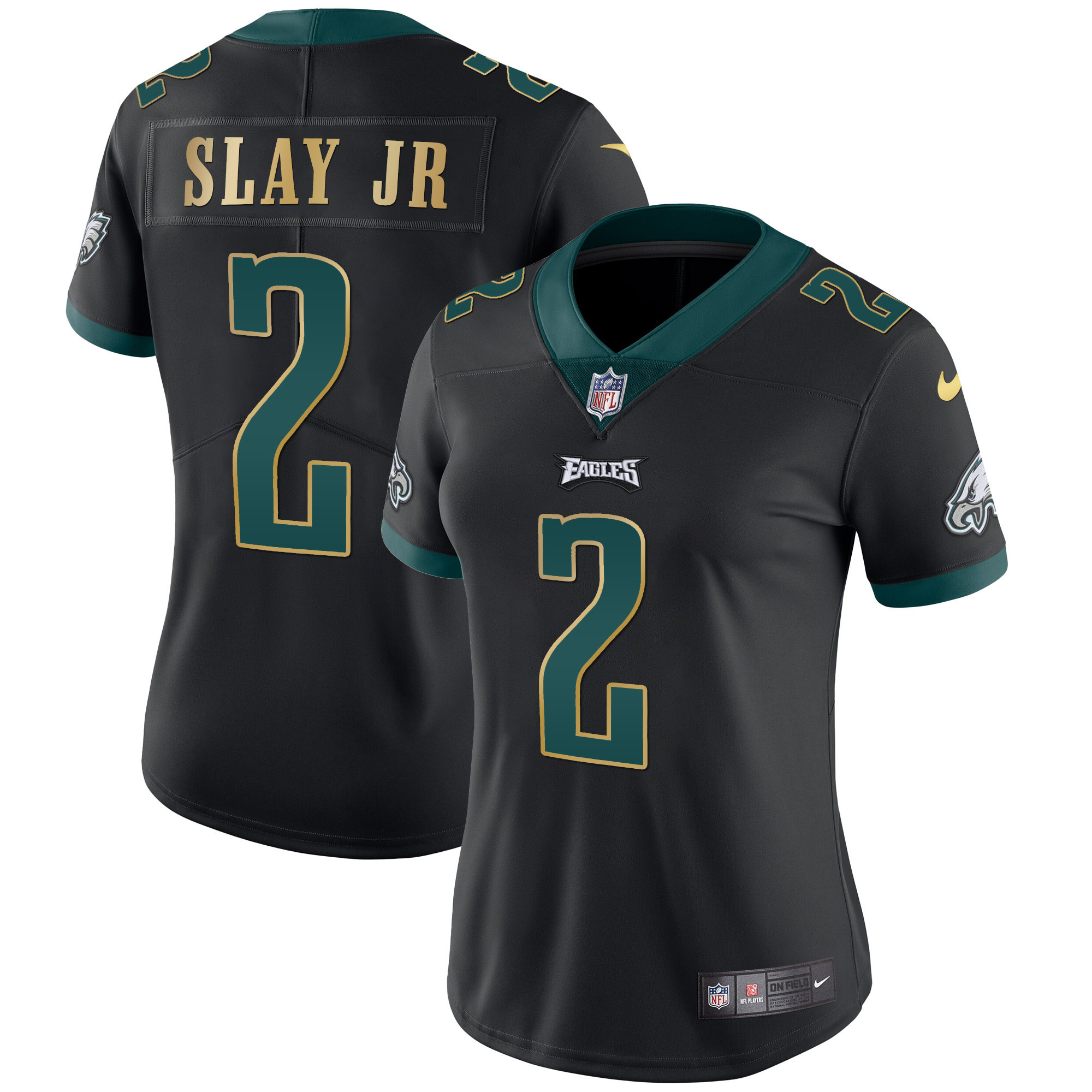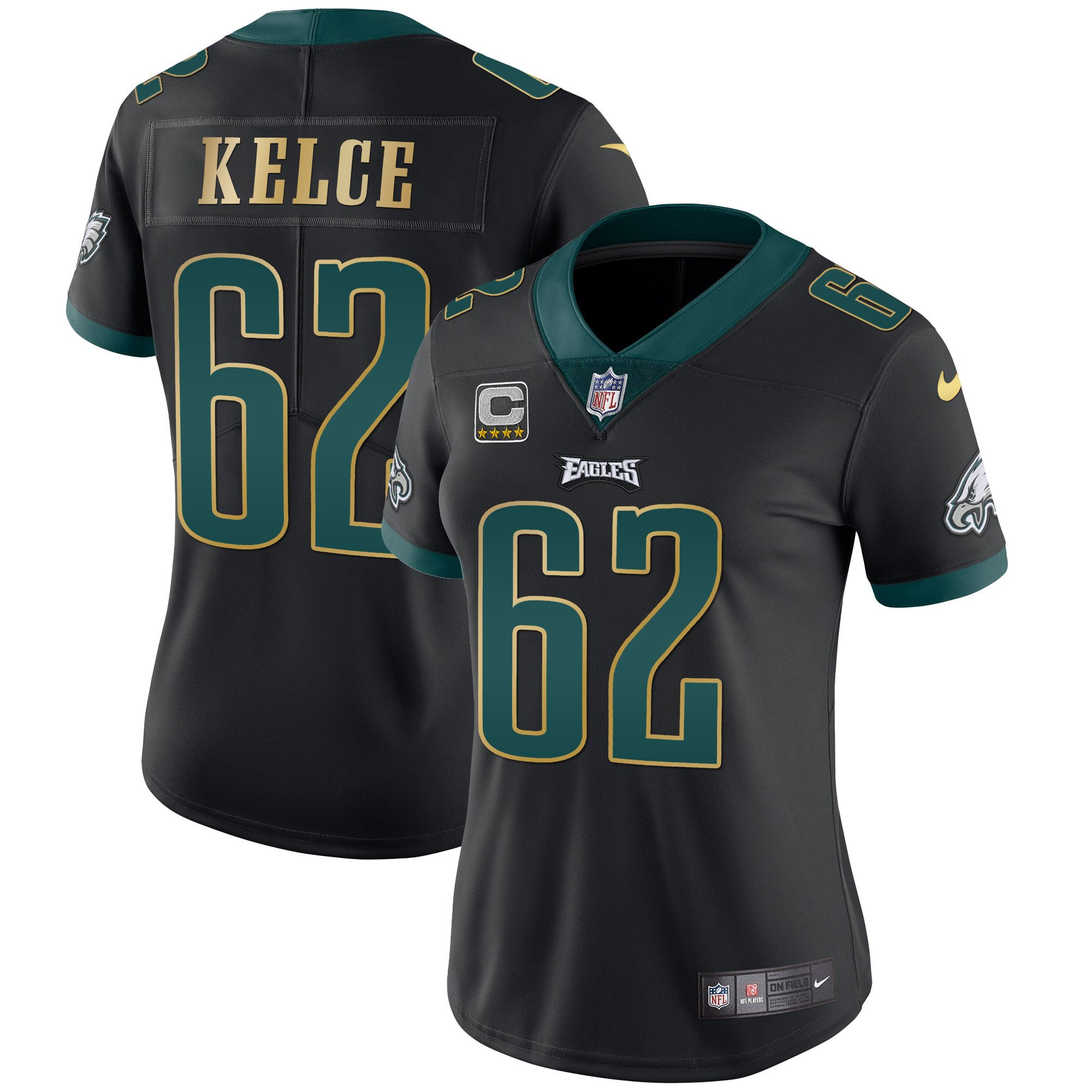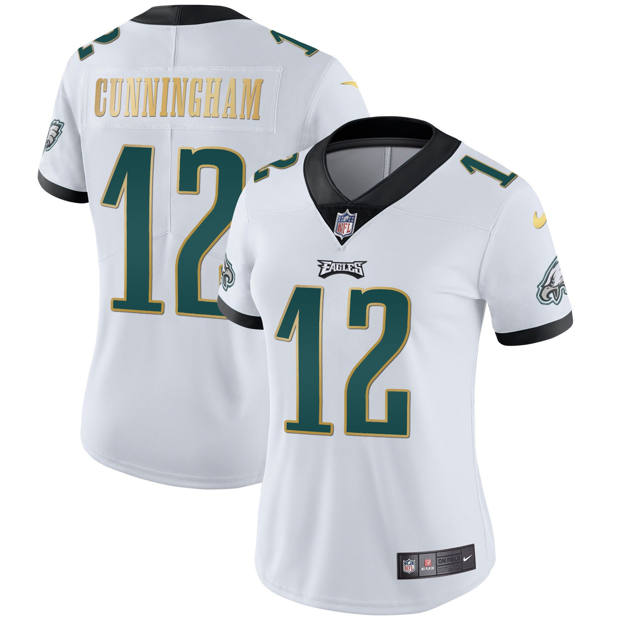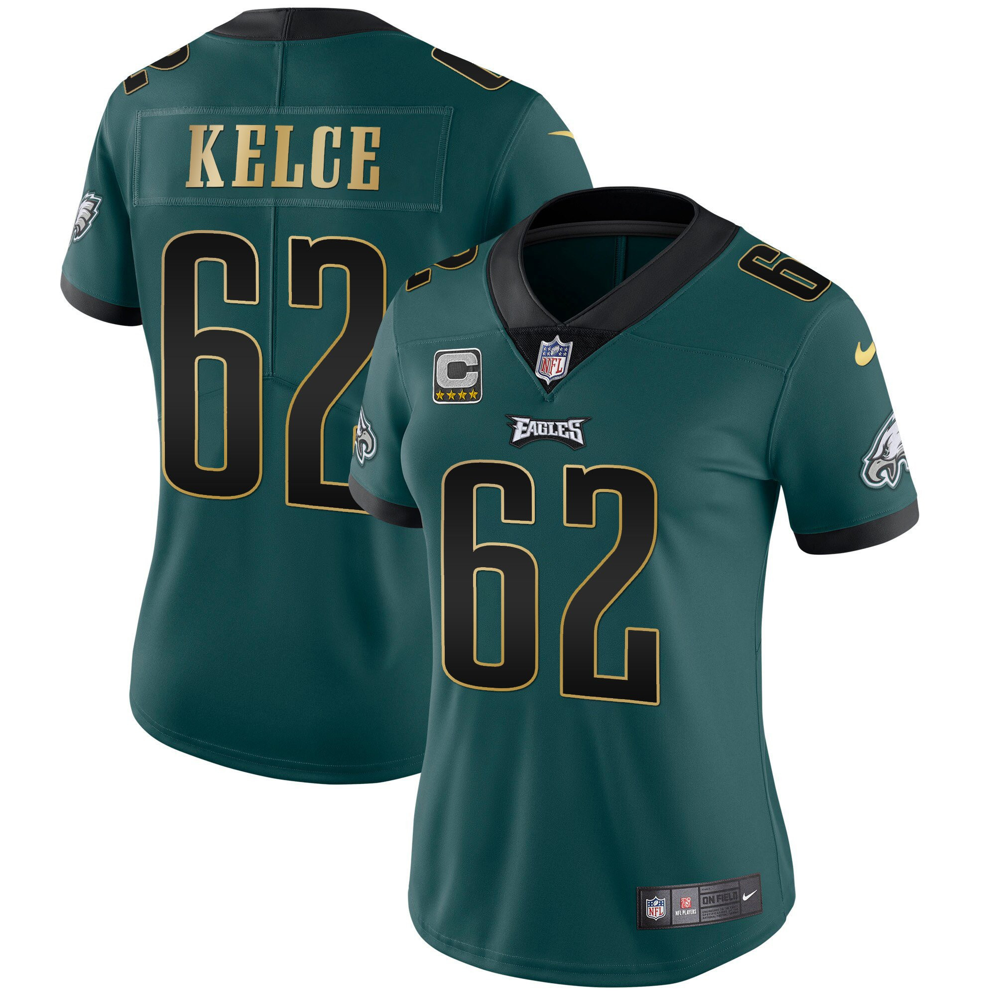 Women’s Eagles Gold Trim Vapor Player Jersey – All Stitched