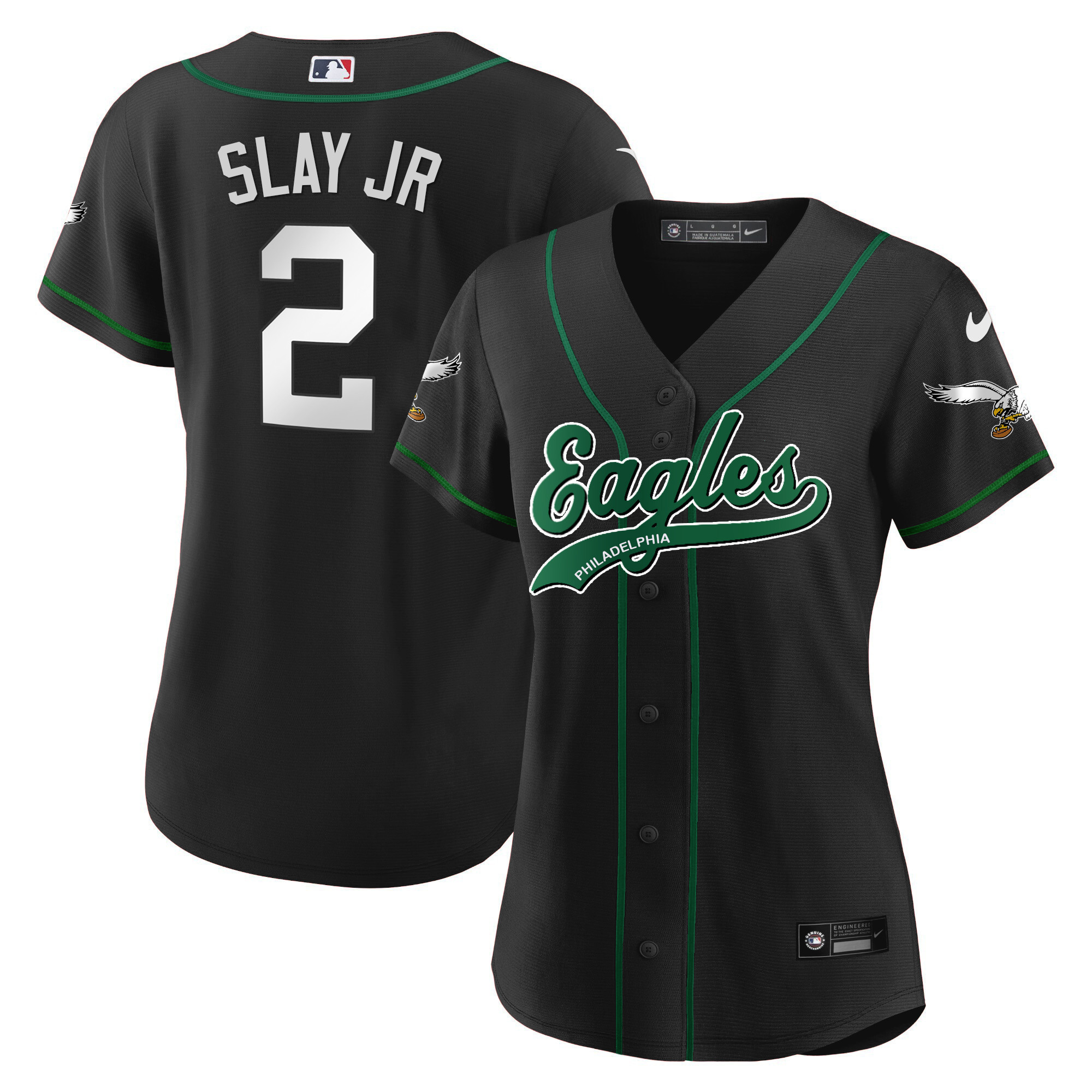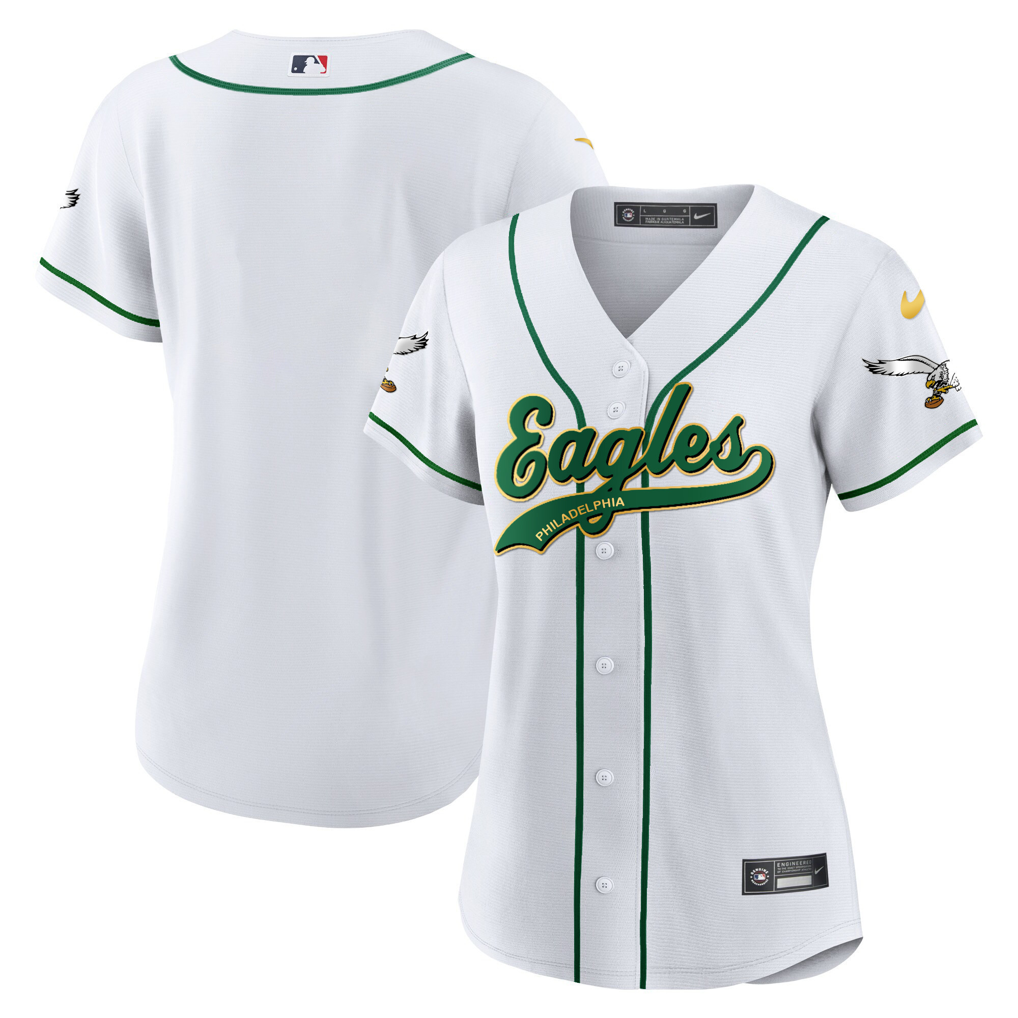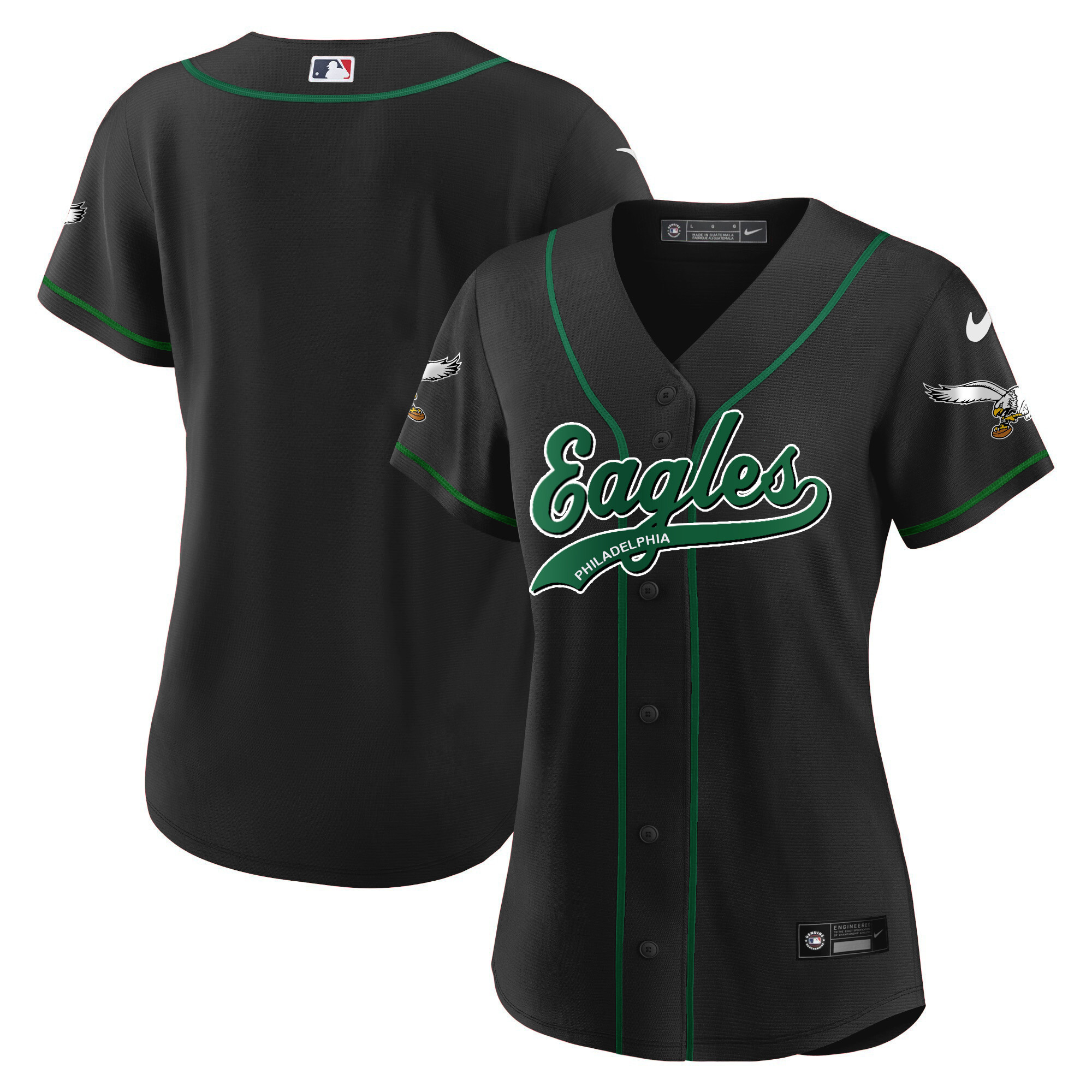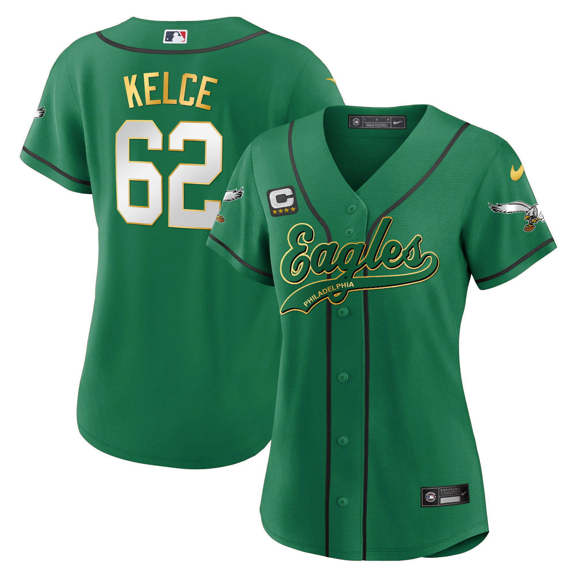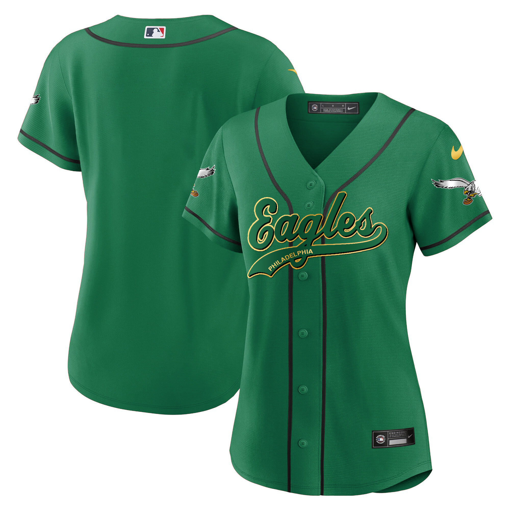 Women’s Eagles Kelly Green Baseball Jersey – All Stitched