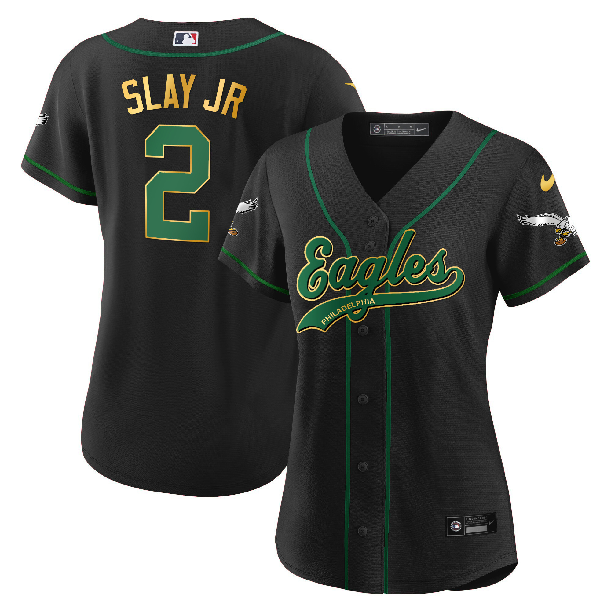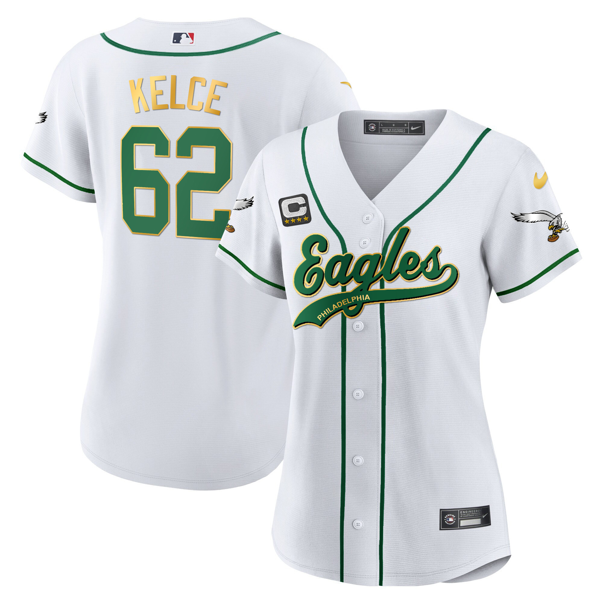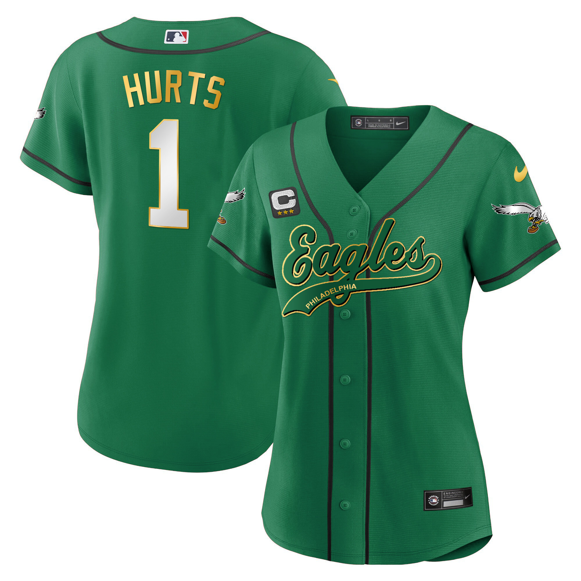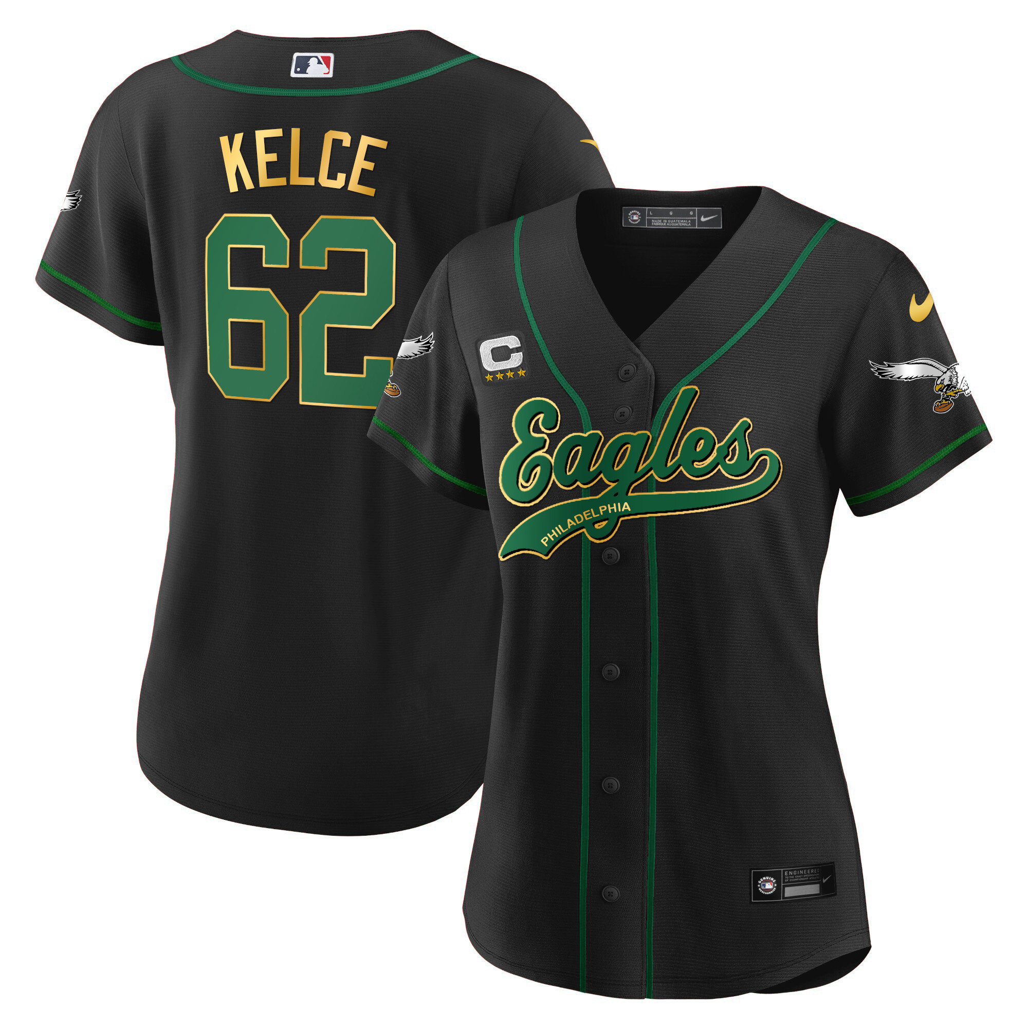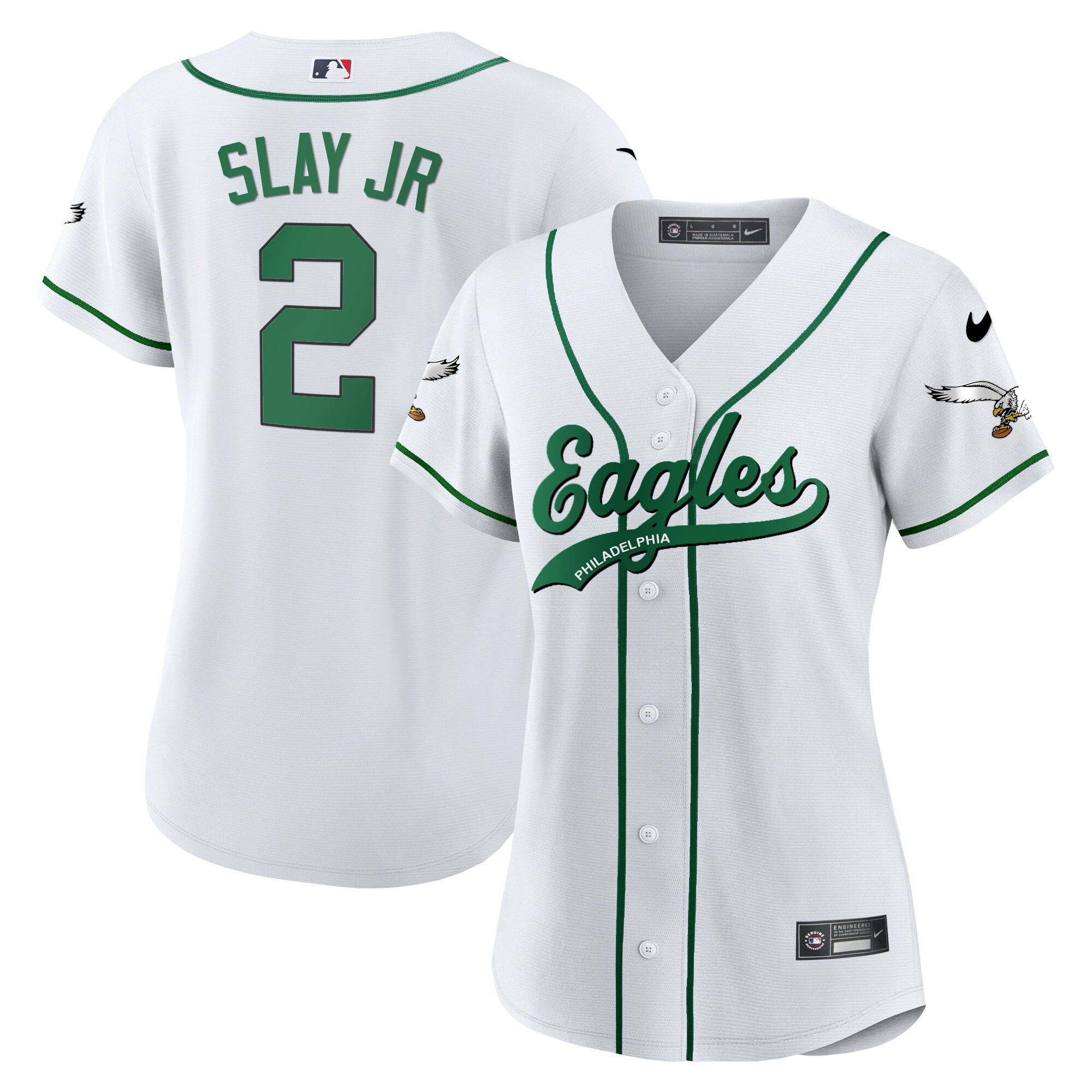 Women’s Eagles Kelly Green Baseball Jersey – All Stitched