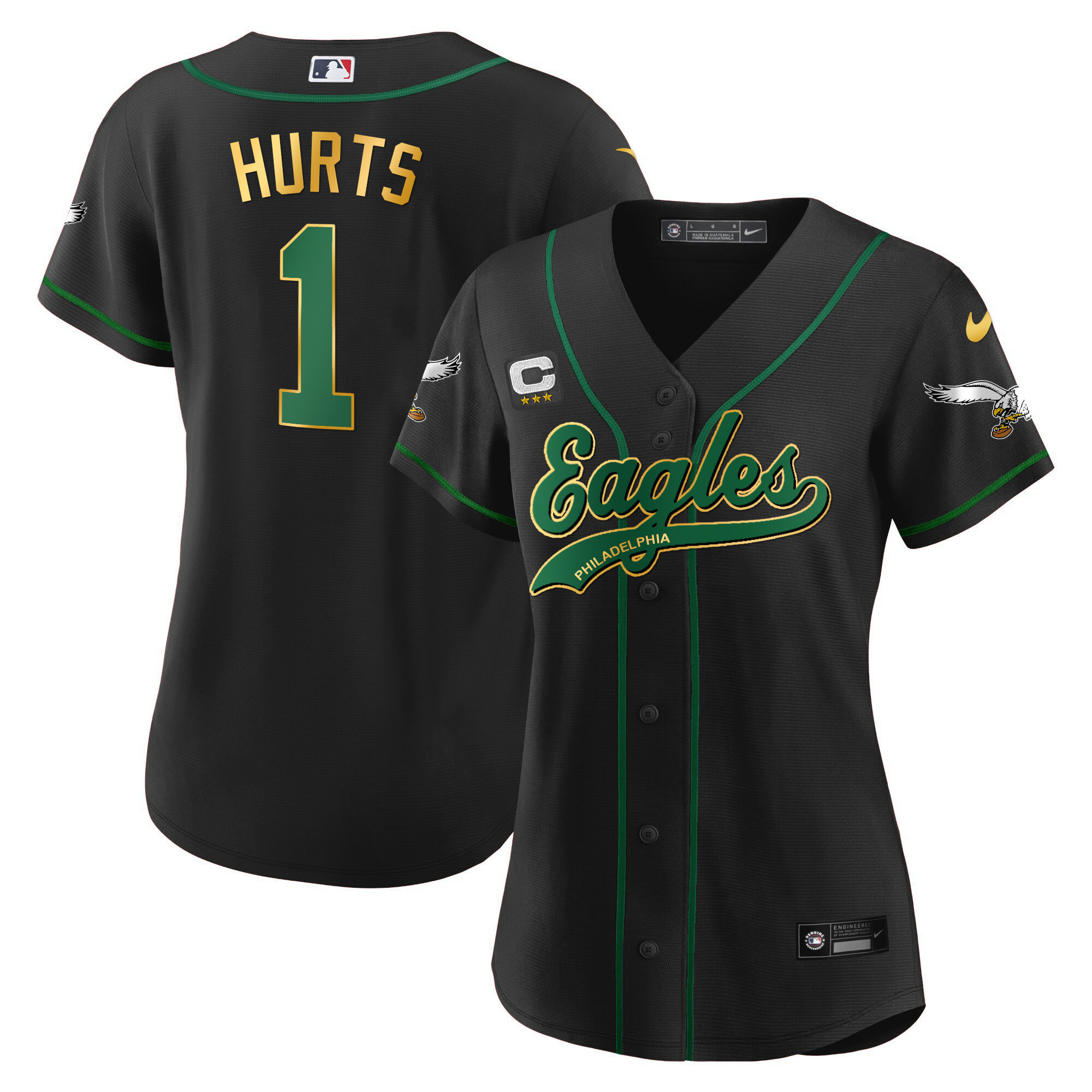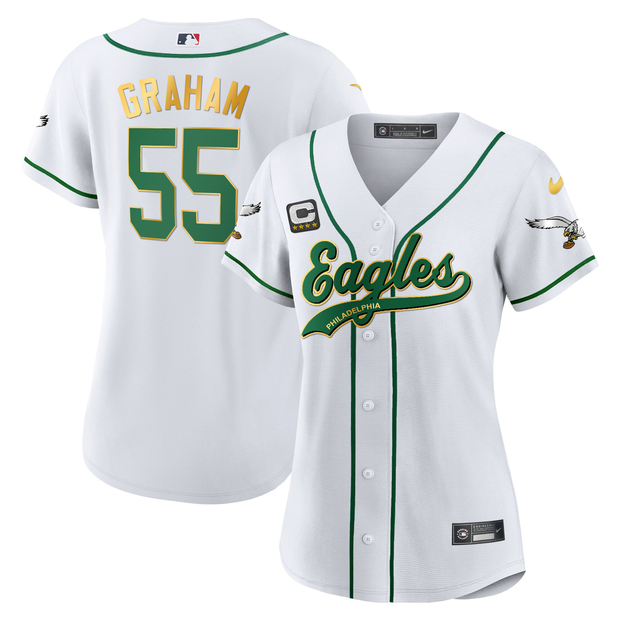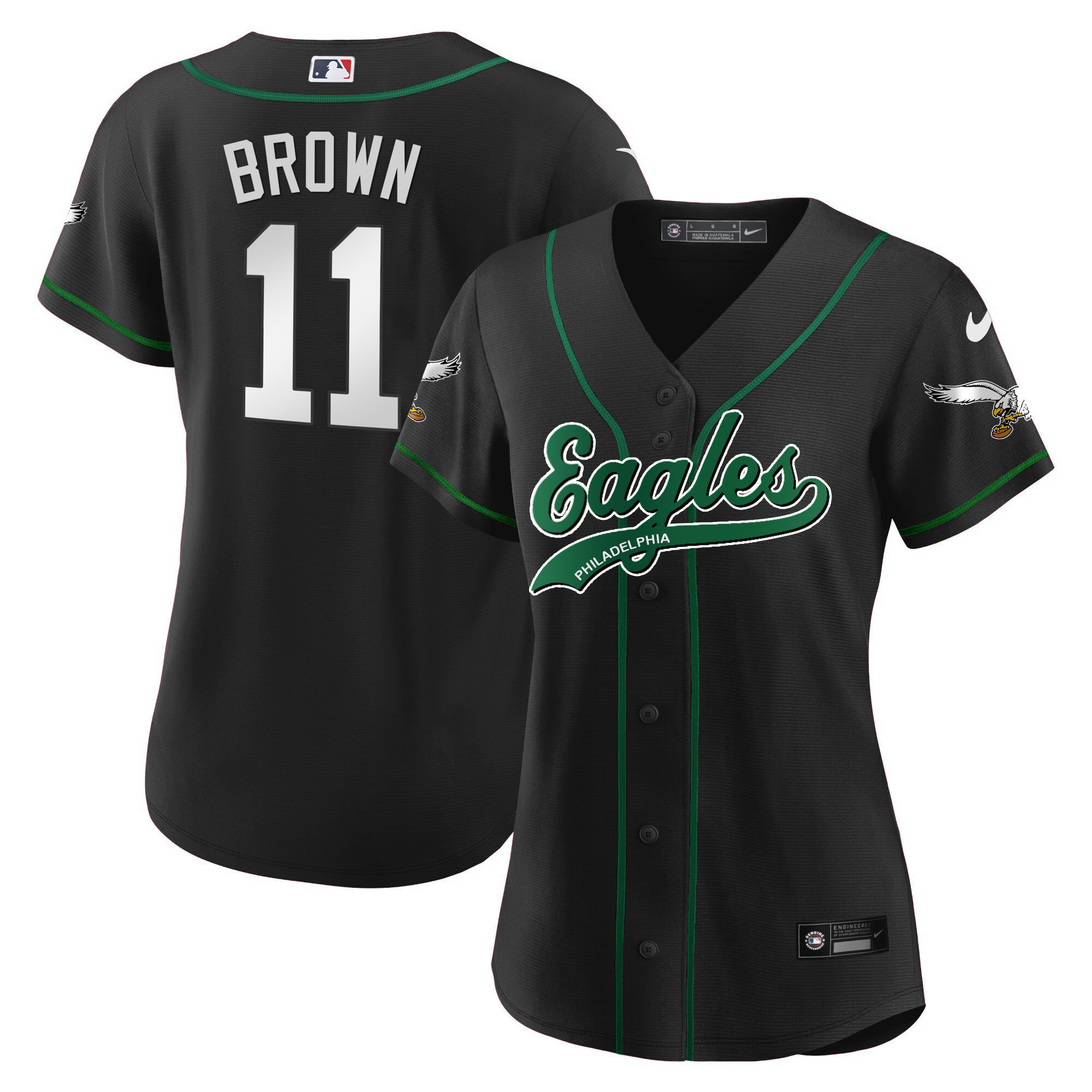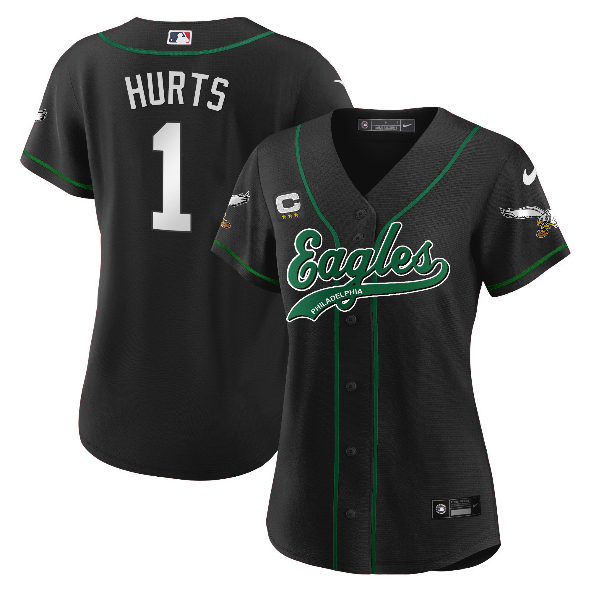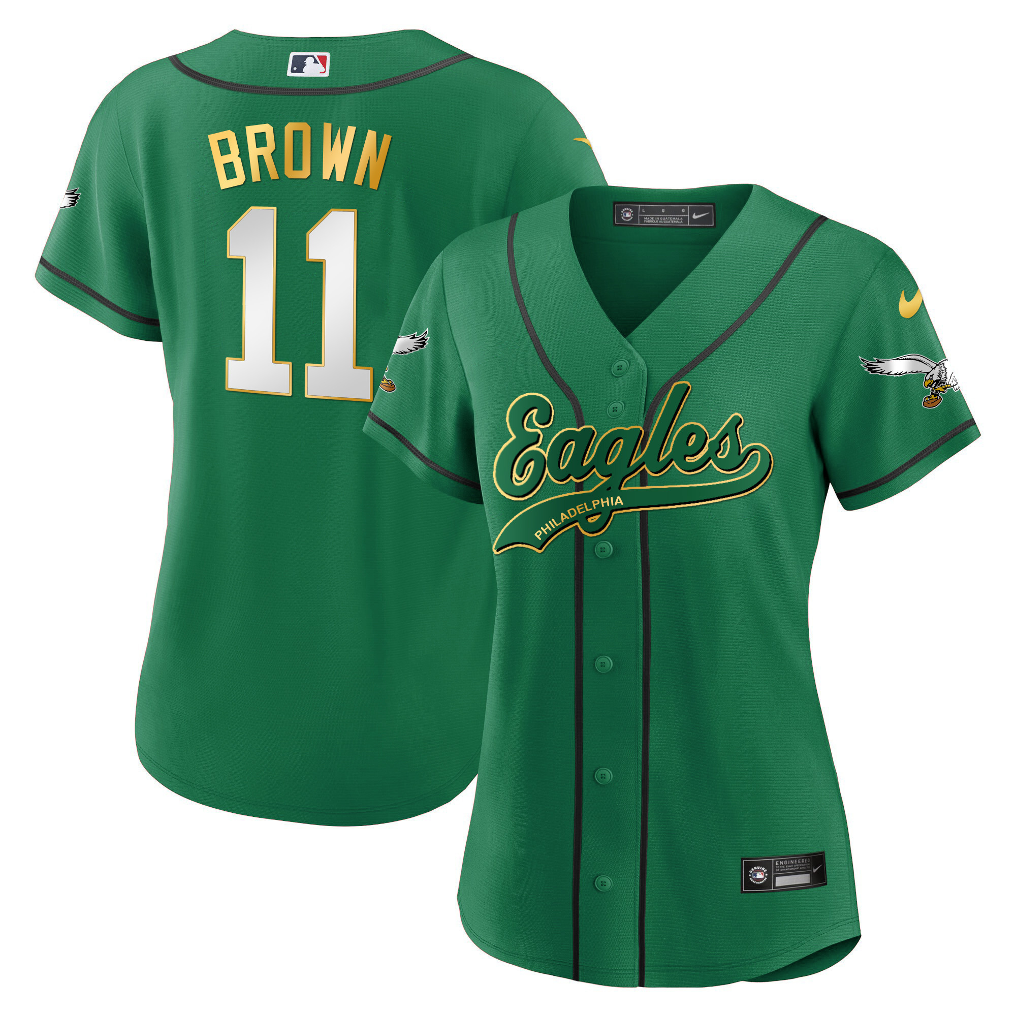 Women’s Eagles Kelly Green Baseball Jersey – All Stitched