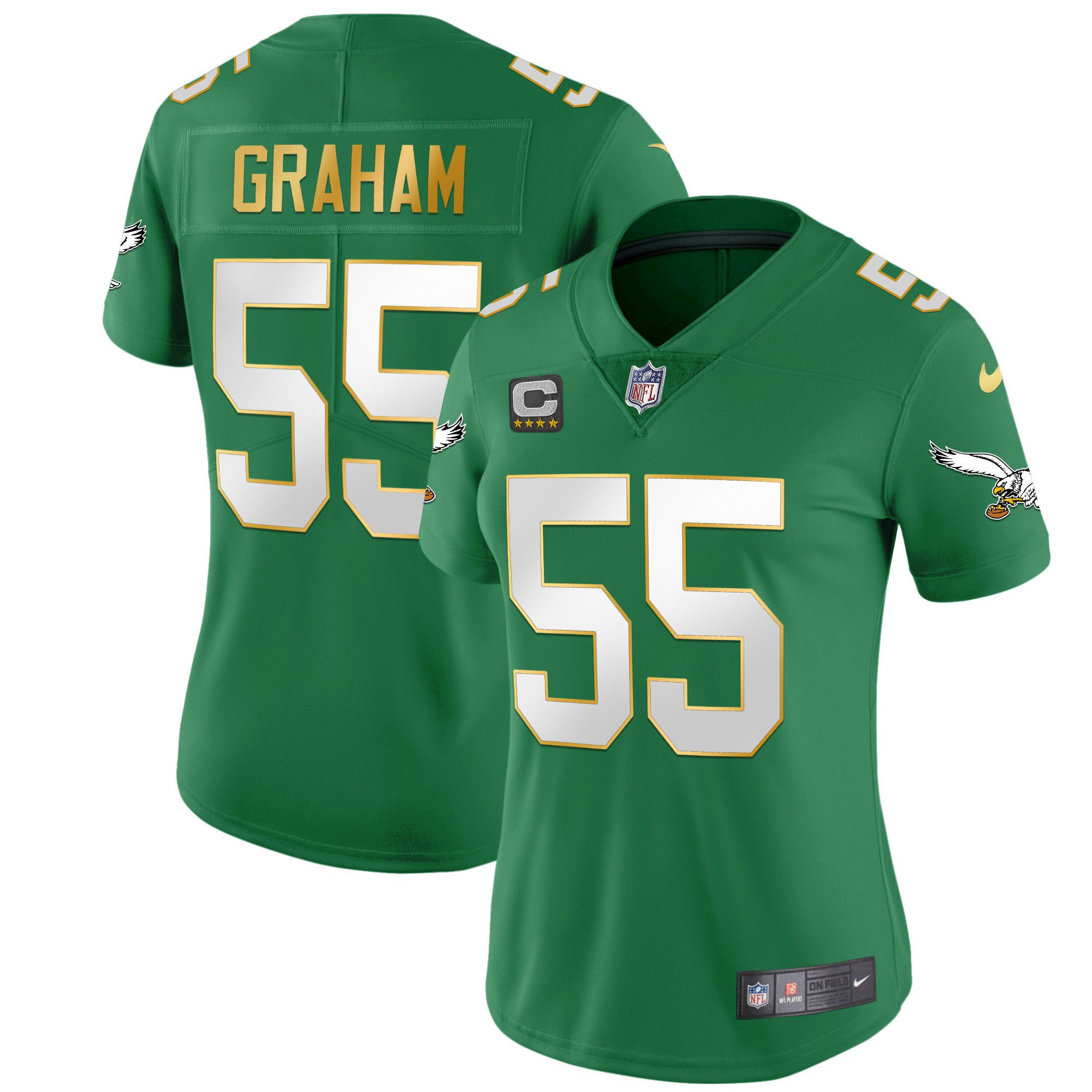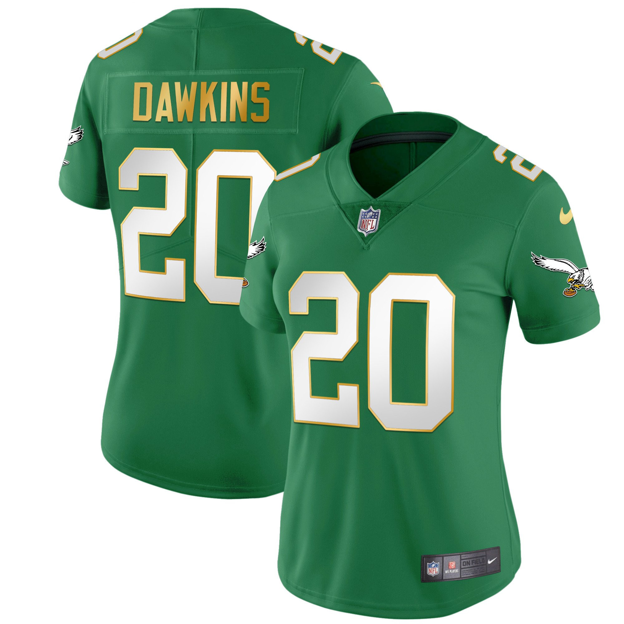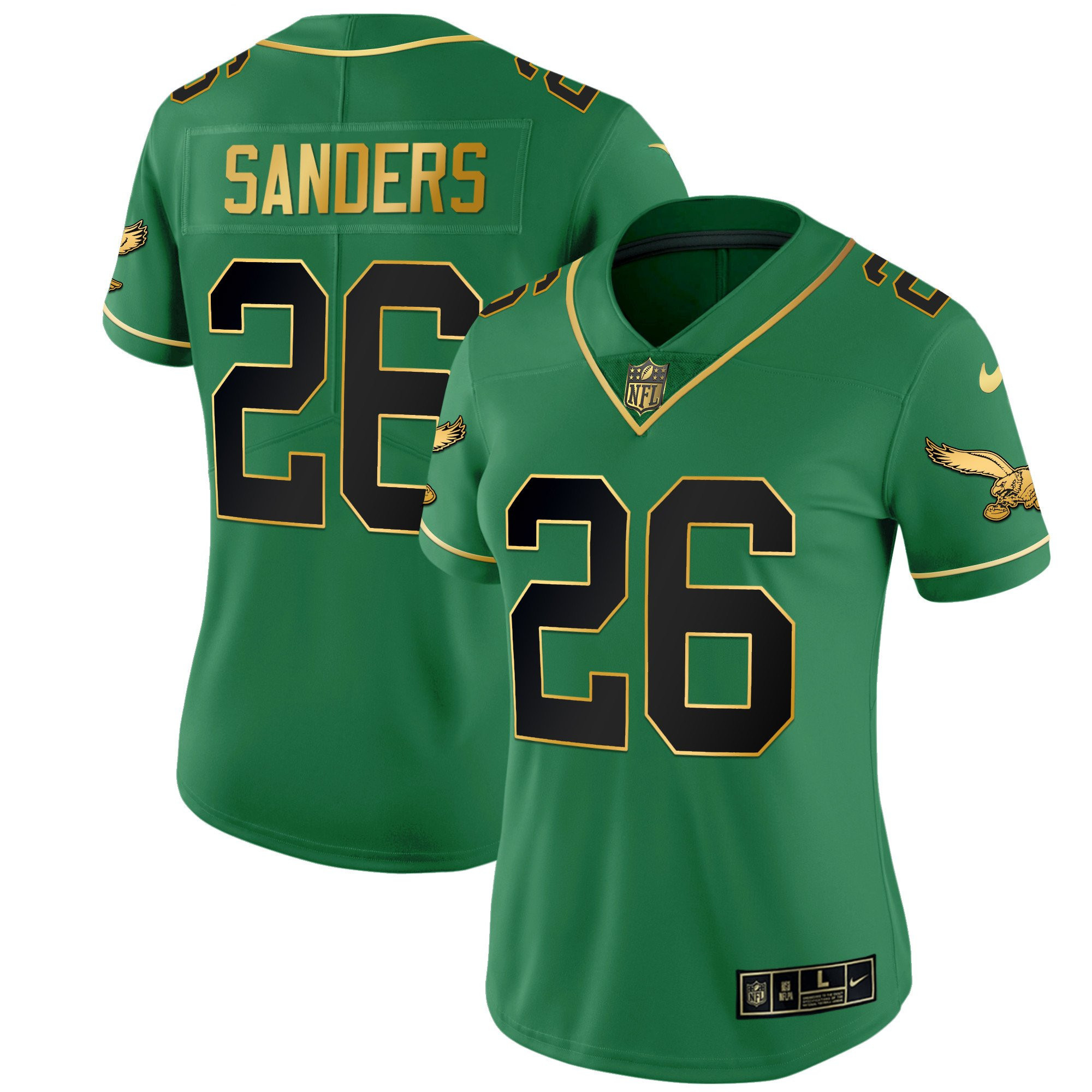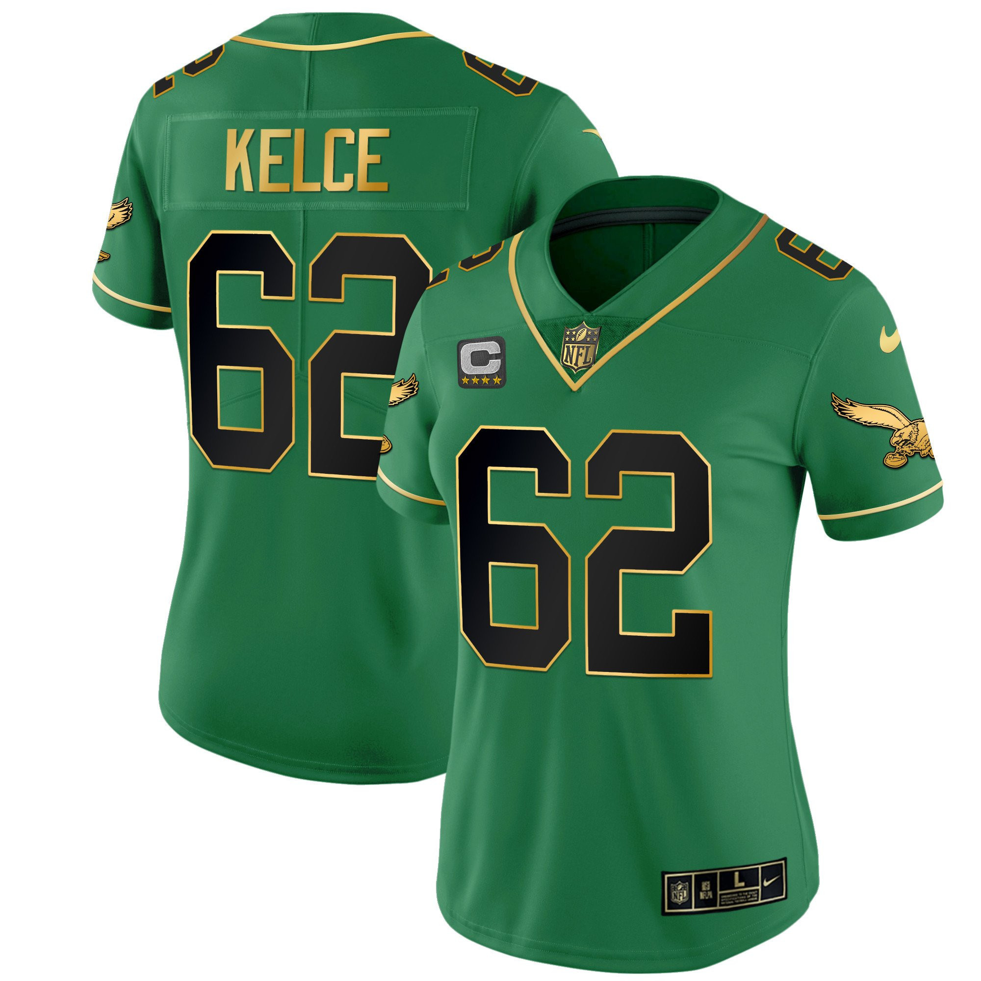 Women’s Eagles Kelly Green Gold Jersey – All Stitched