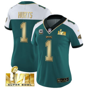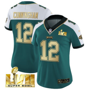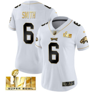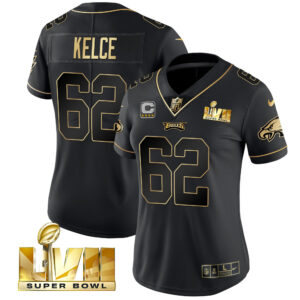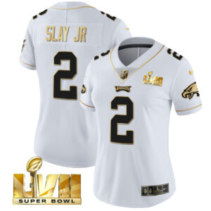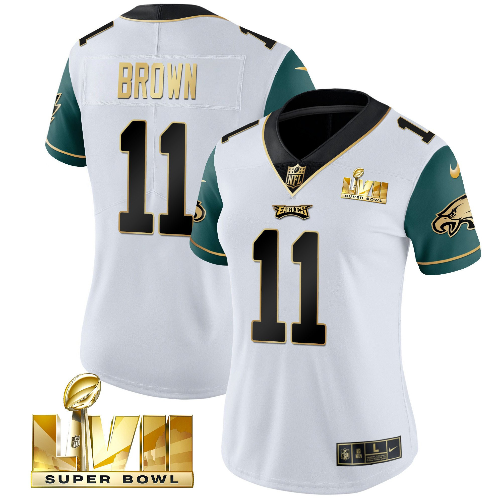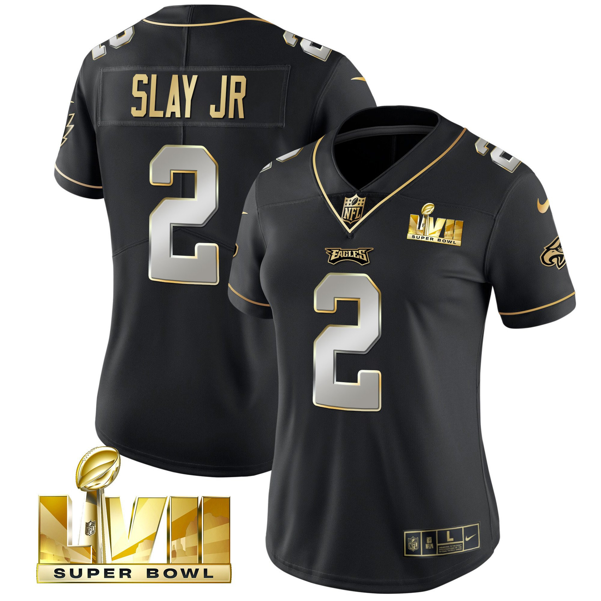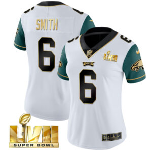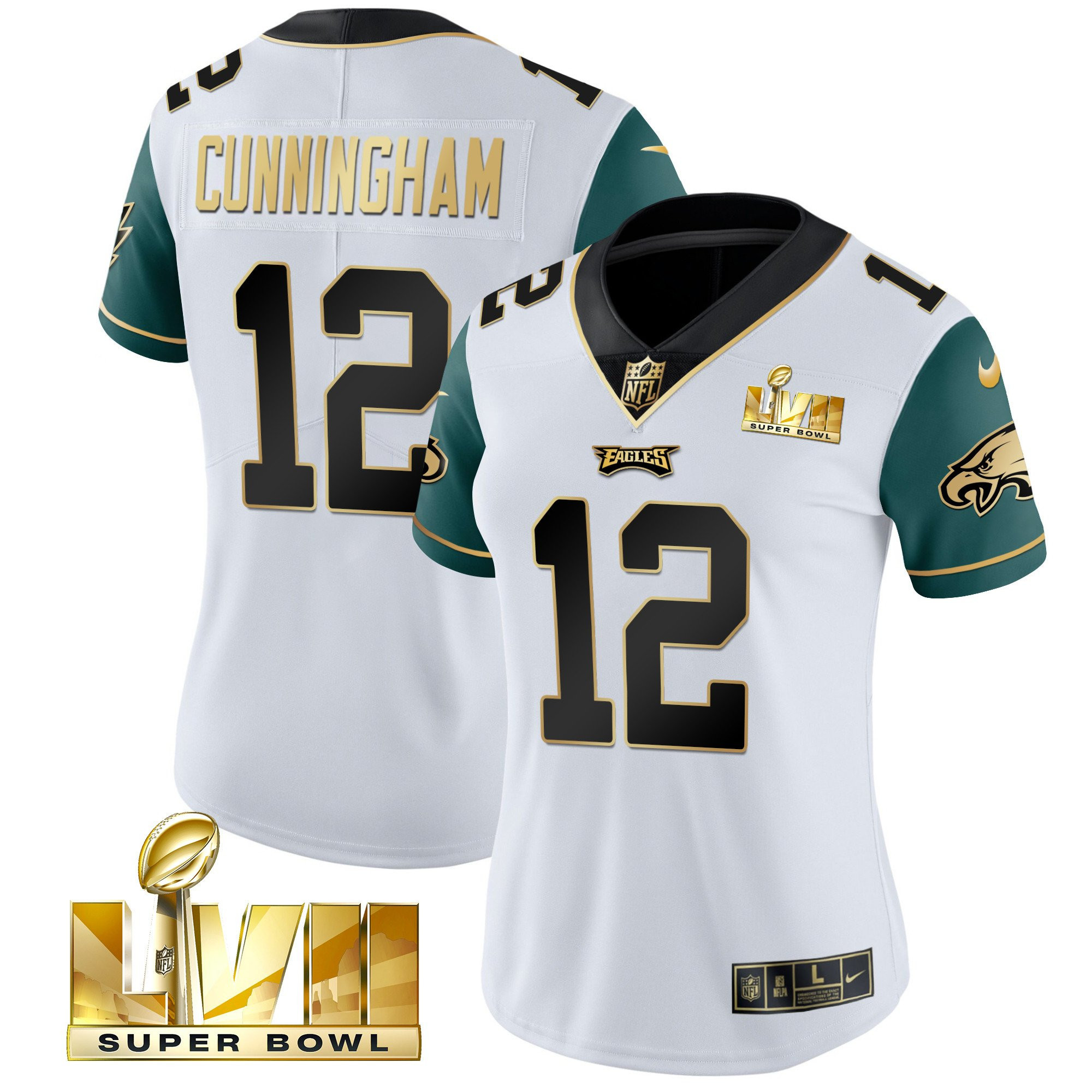Women’s Eagles Super Bowl LVII Gold Vapor Jersey – All Stitched