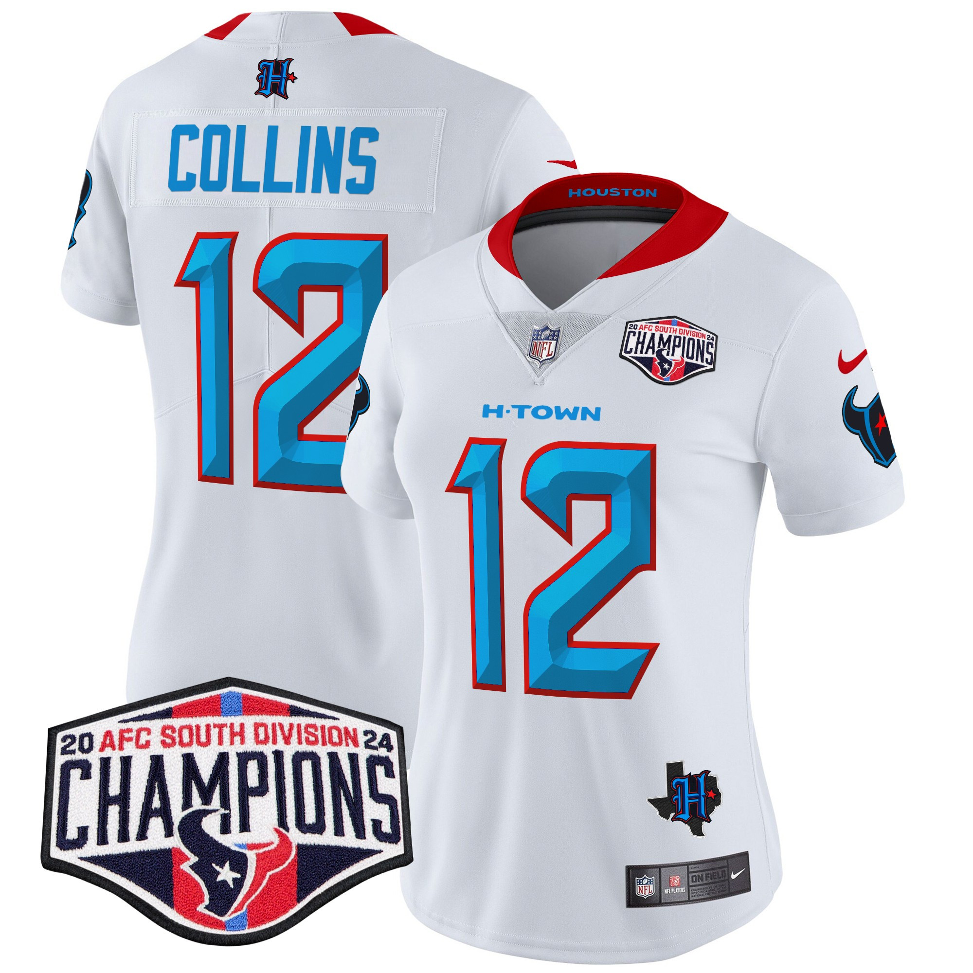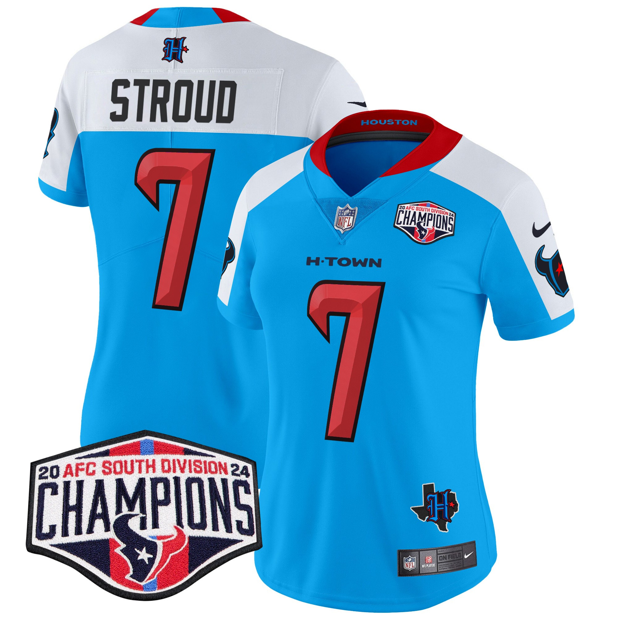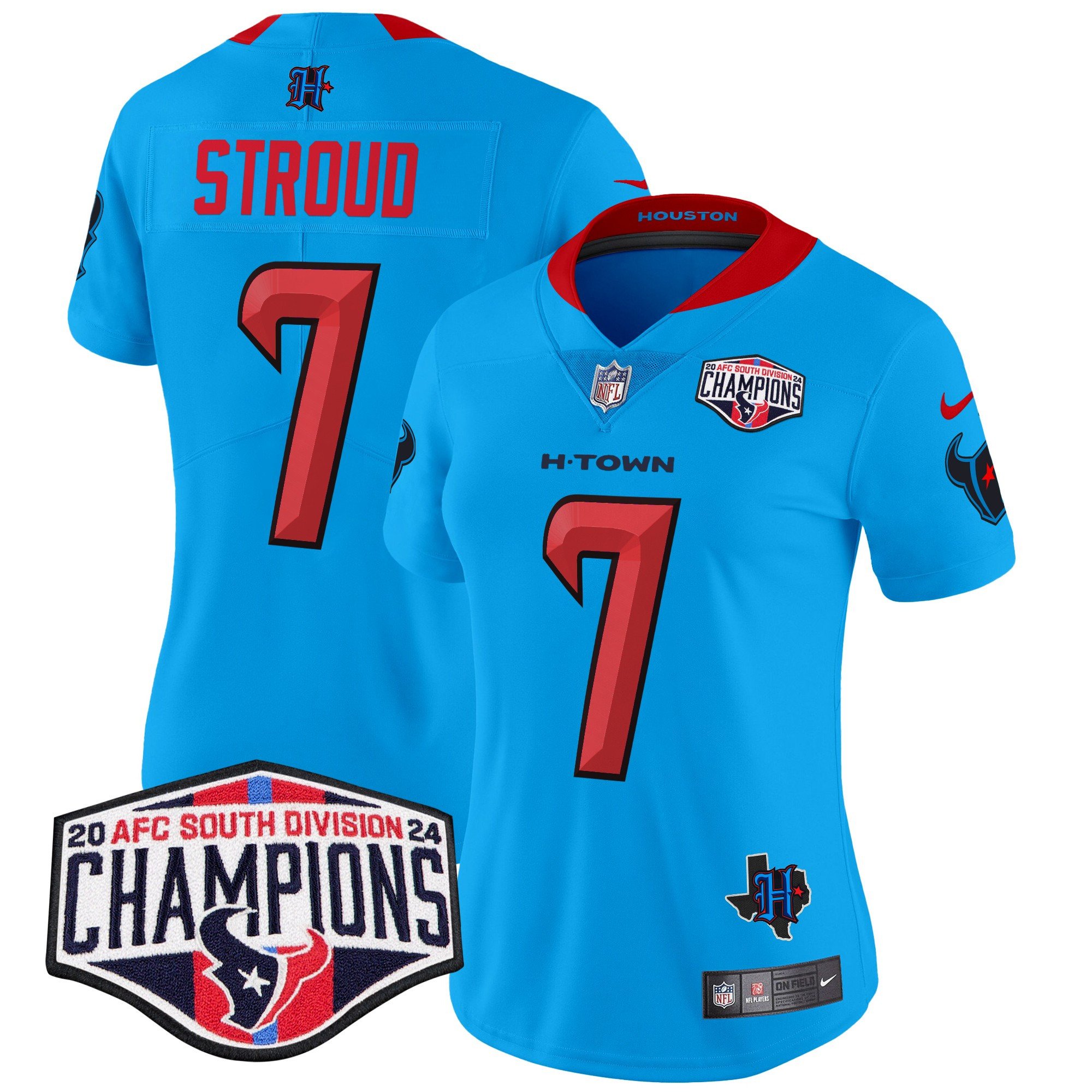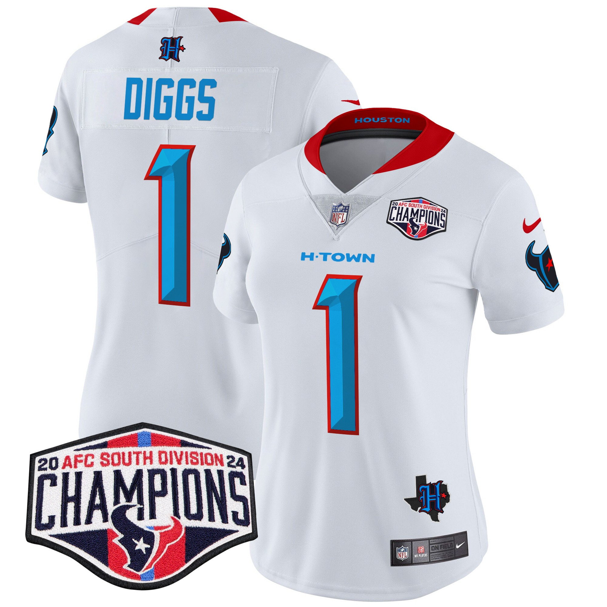 Women’s Houston Texans 2024 AFC South Division Champions Patch Vapor Limited Jersey – All Stitched