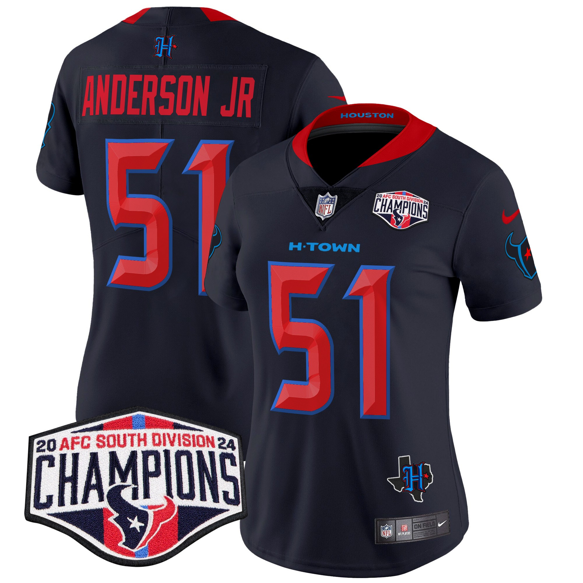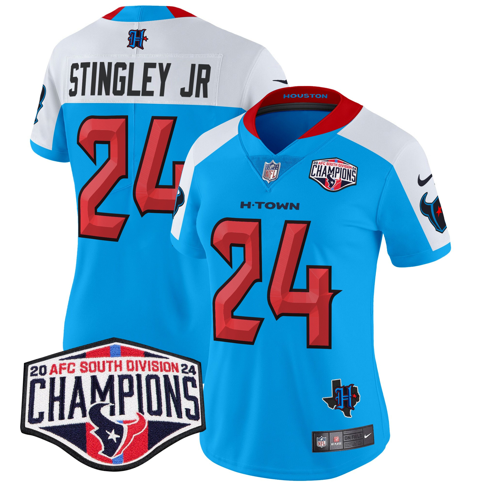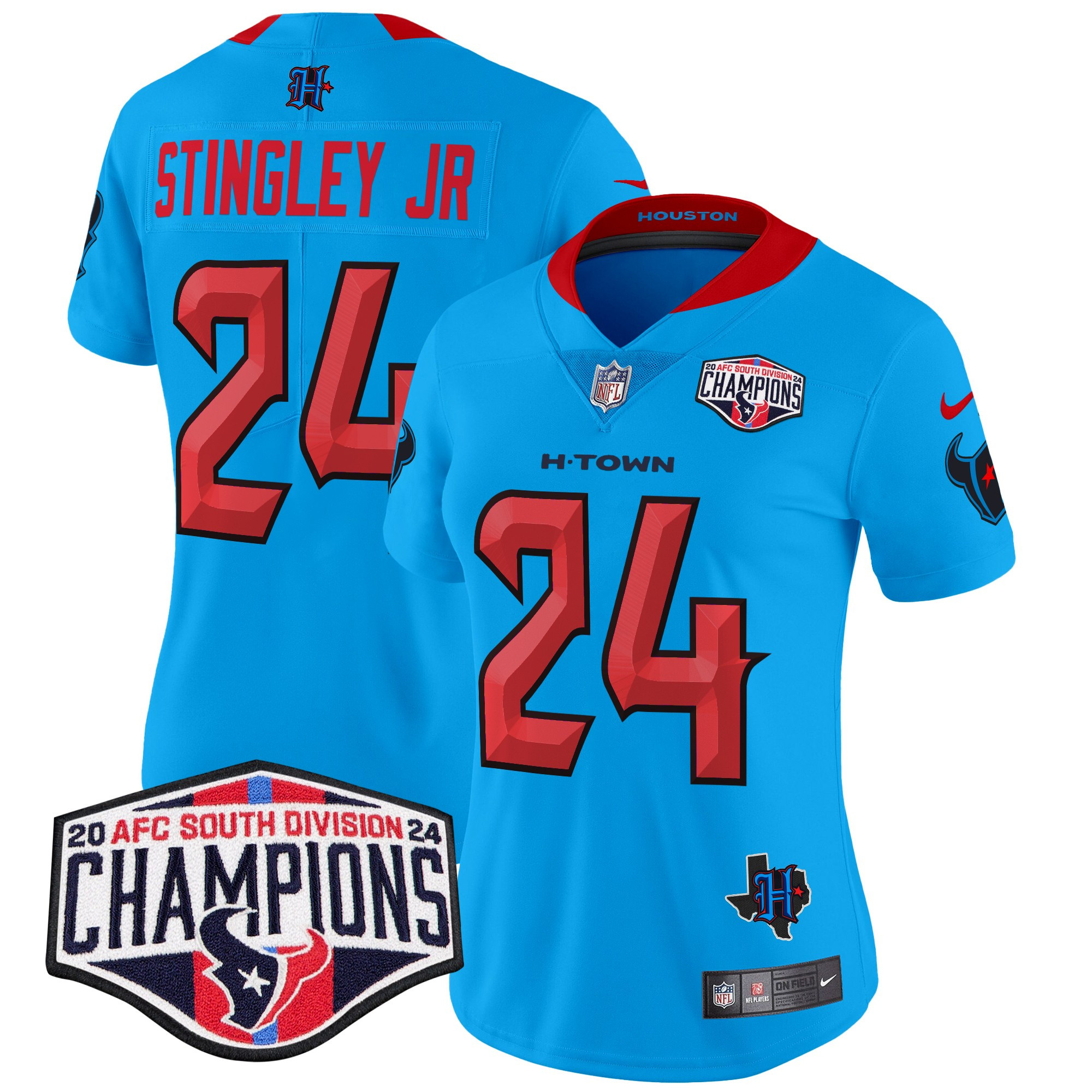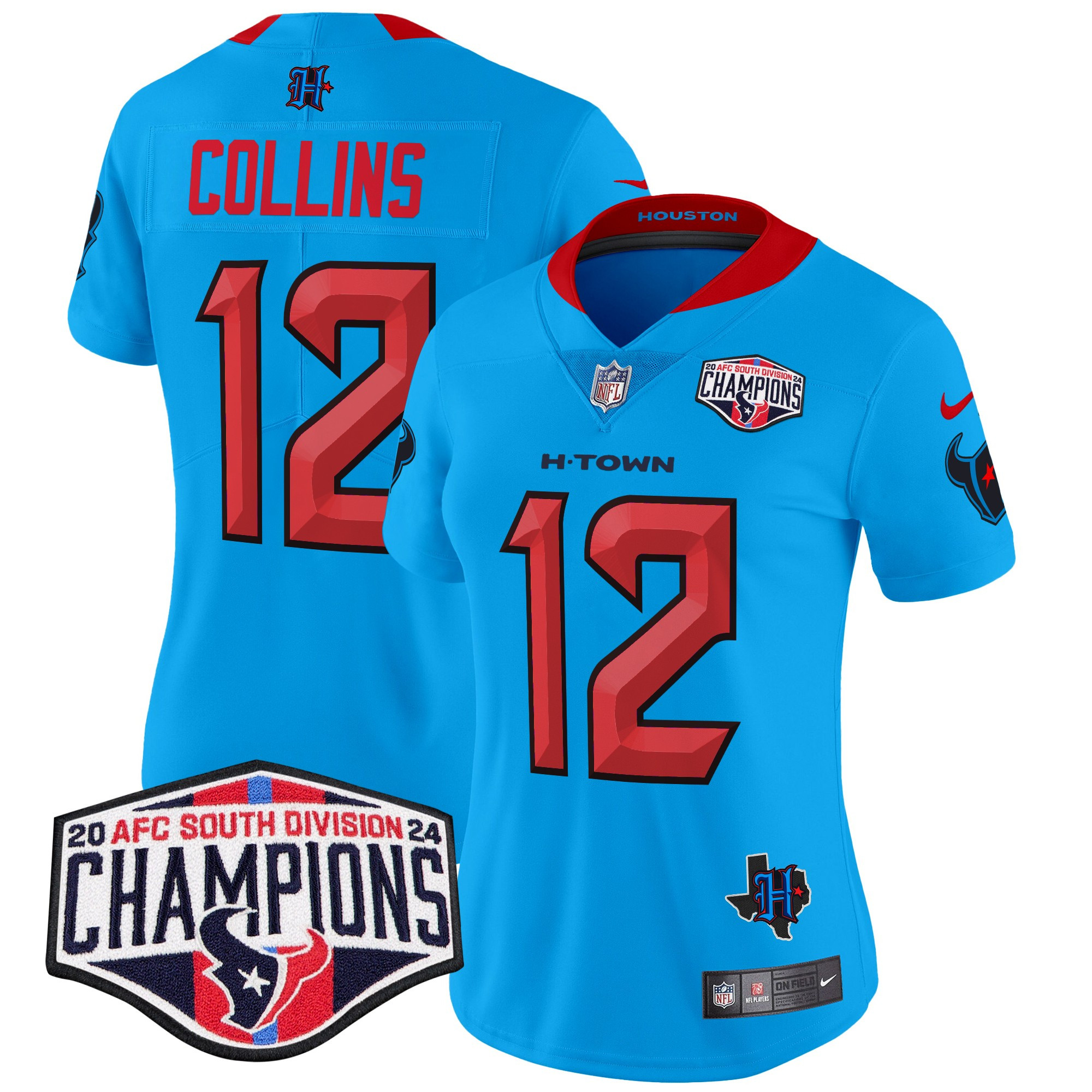 Women’s Houston Texans 2024 AFC South Division Champions Patch Vapor Limited Jersey – All Stitched