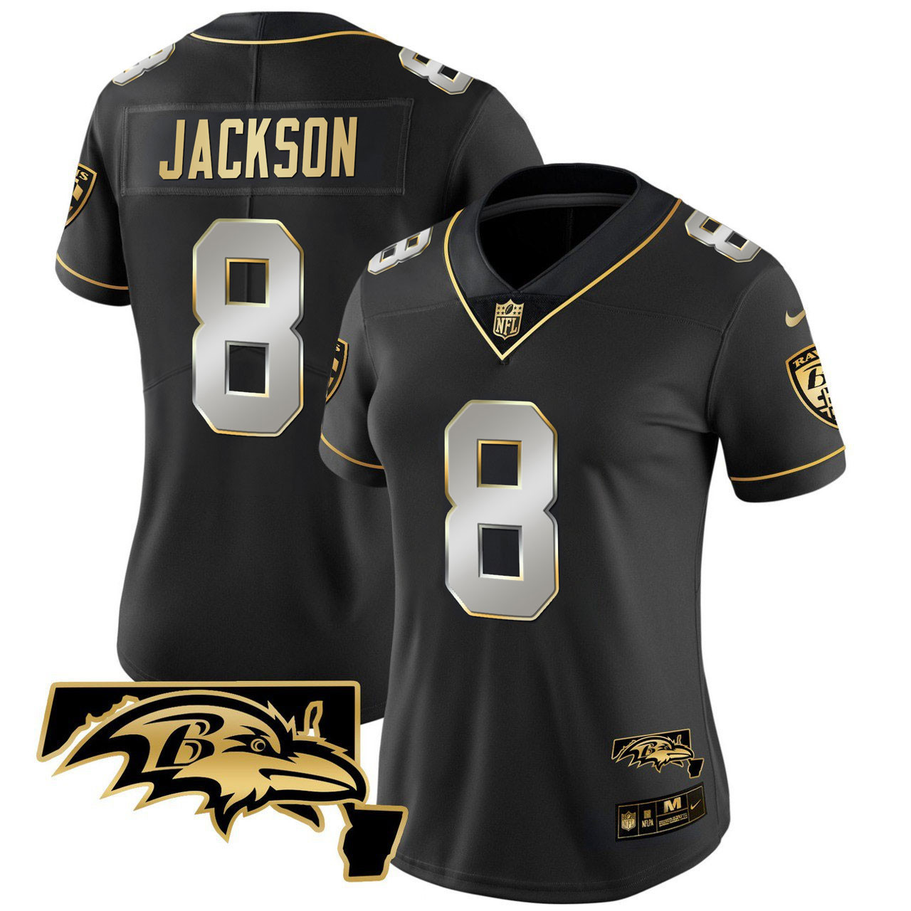 Women’s Lamar Jackson Ravens Maryland Patch Vapor Limited Jersey – All Stitched – Black Gold