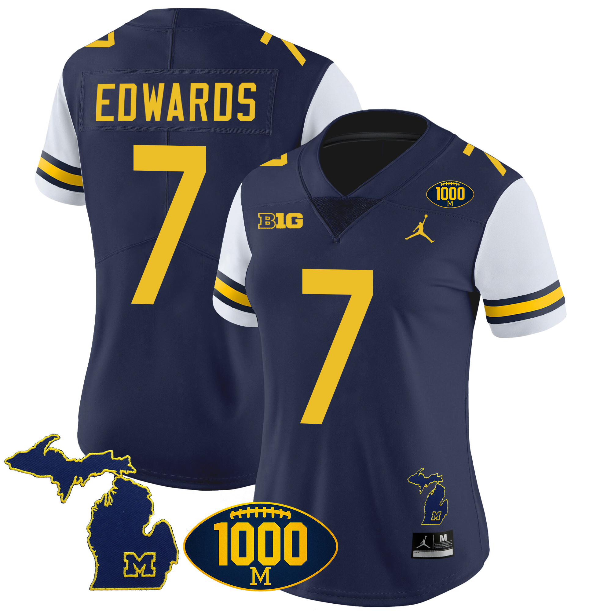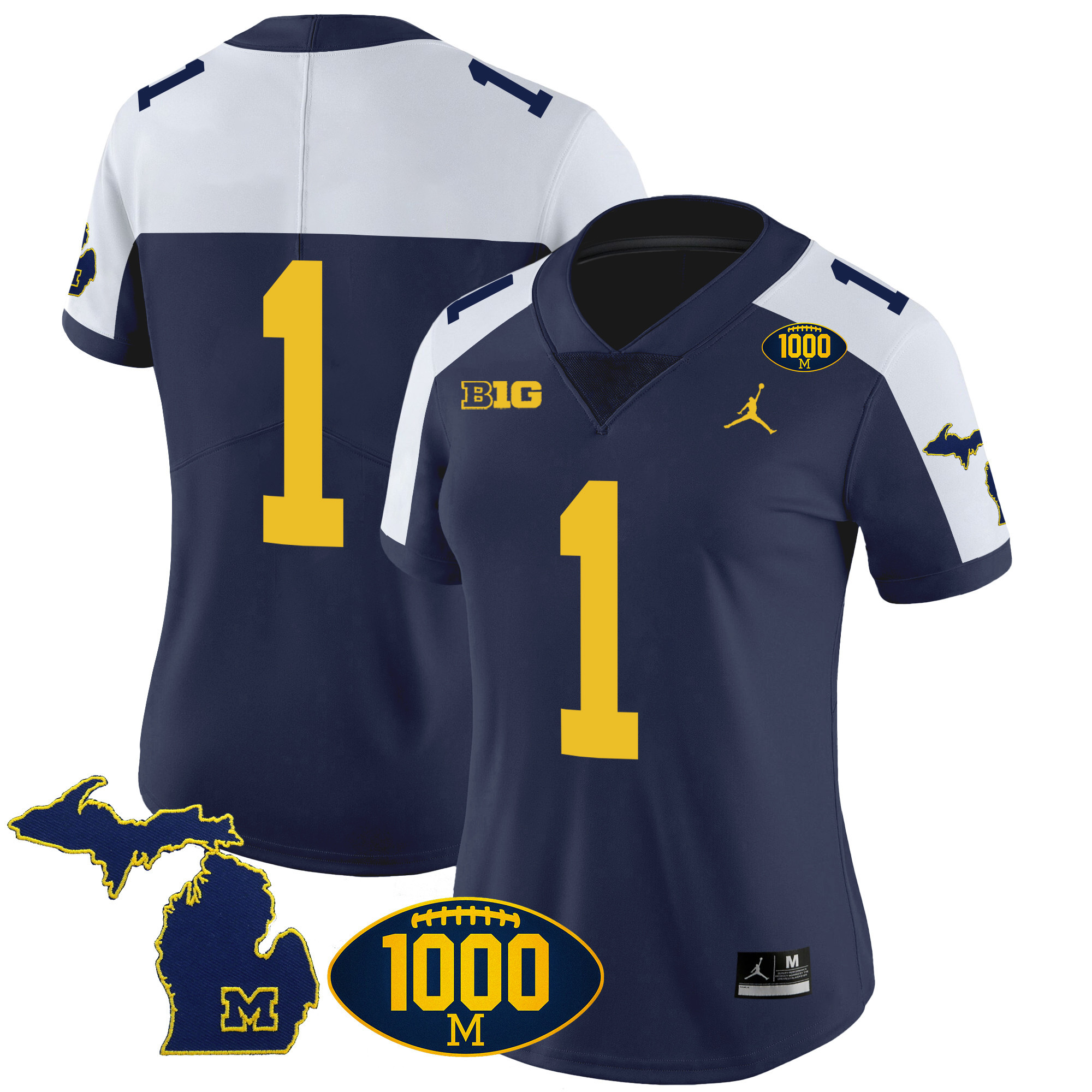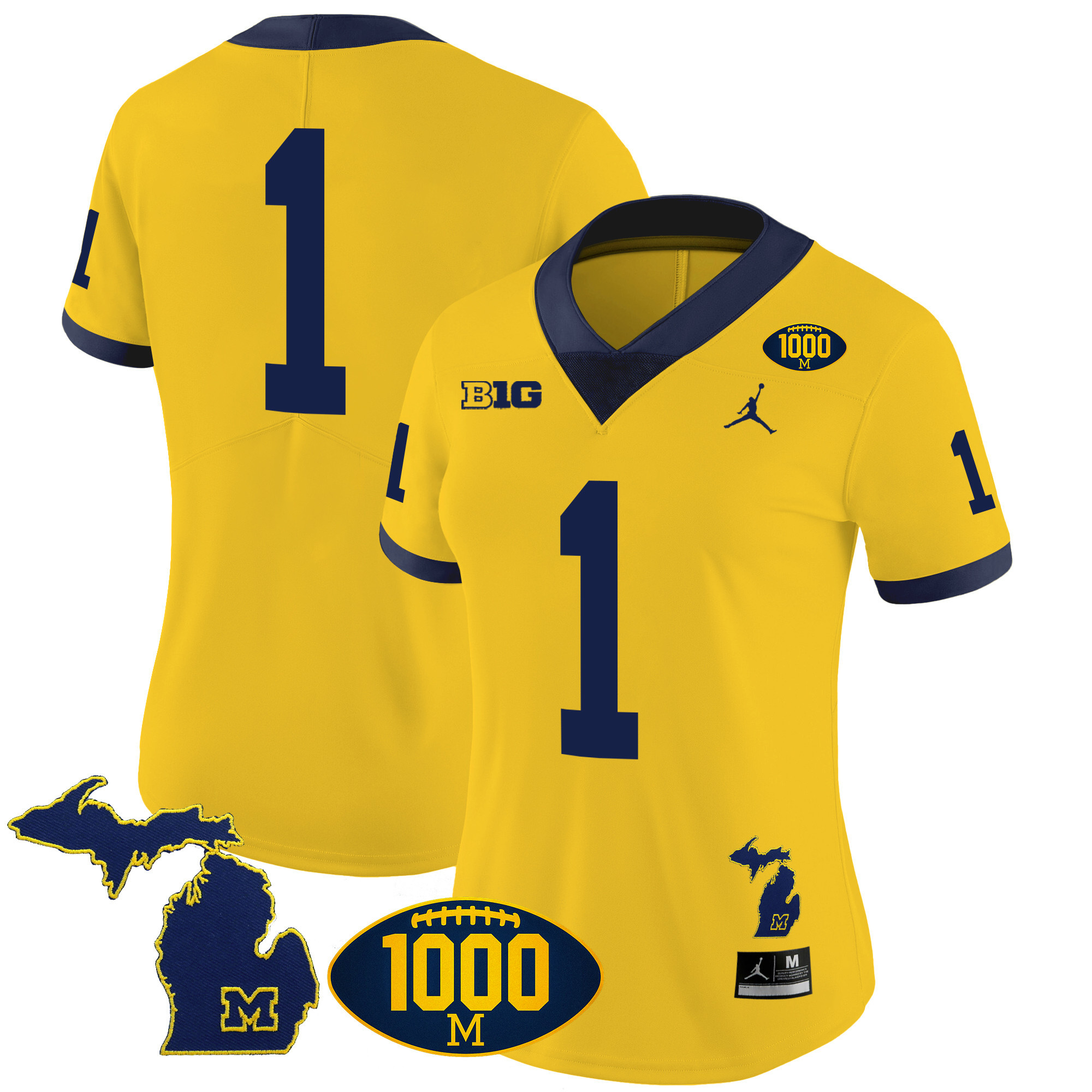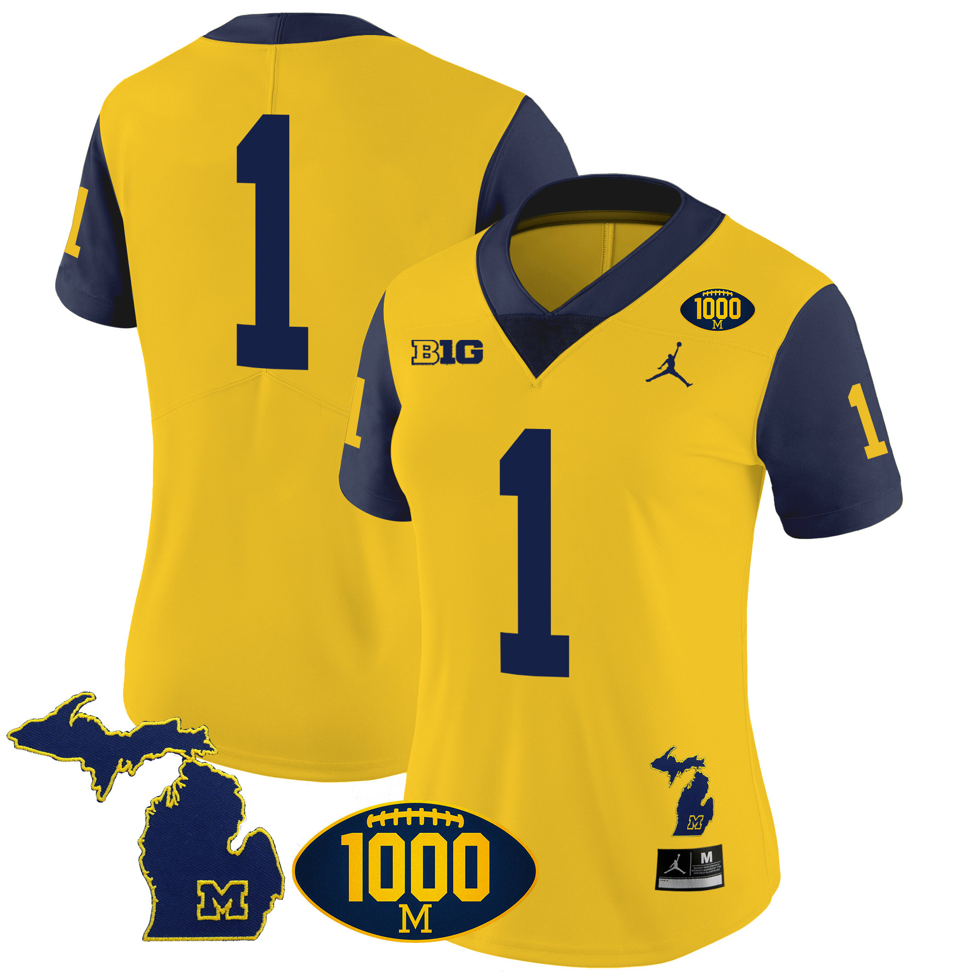 Women’s Michigan Wolverines 1000 Wins Patch Vapor Jersey V3 – All Stitched
