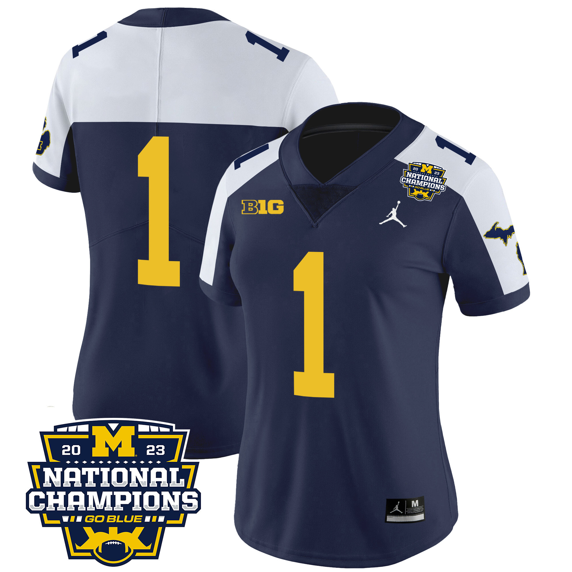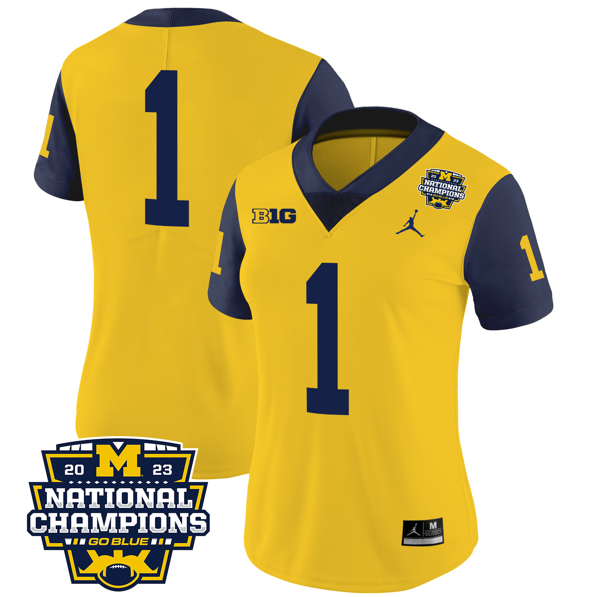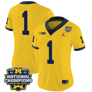 Women’s Michigan Wolverines 2023 National Champions Patch Vapor Jersey V4 – All Stitched