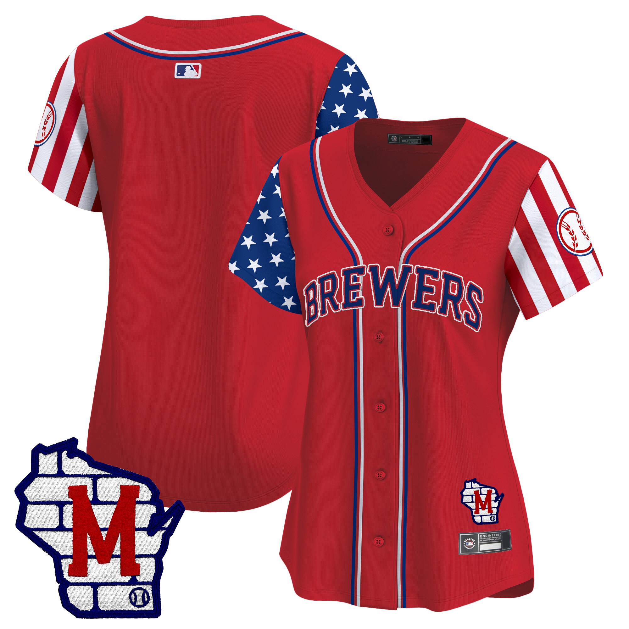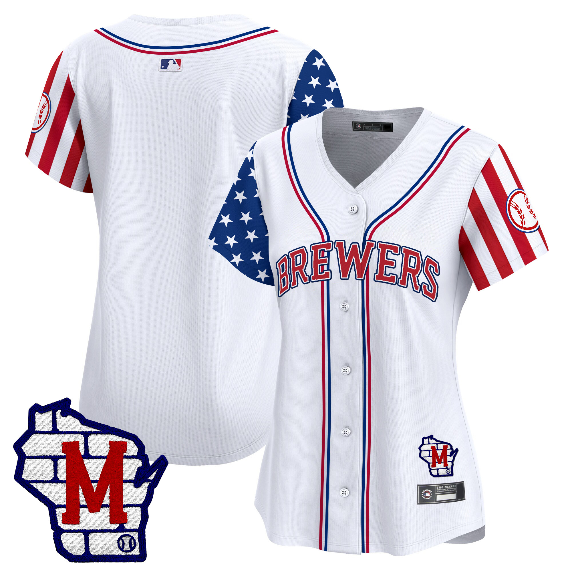 Women’s Milwaukee Brewers 2025 Independence Day Vapor Premier Limited Jersey – All Stitched